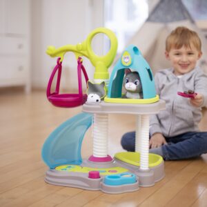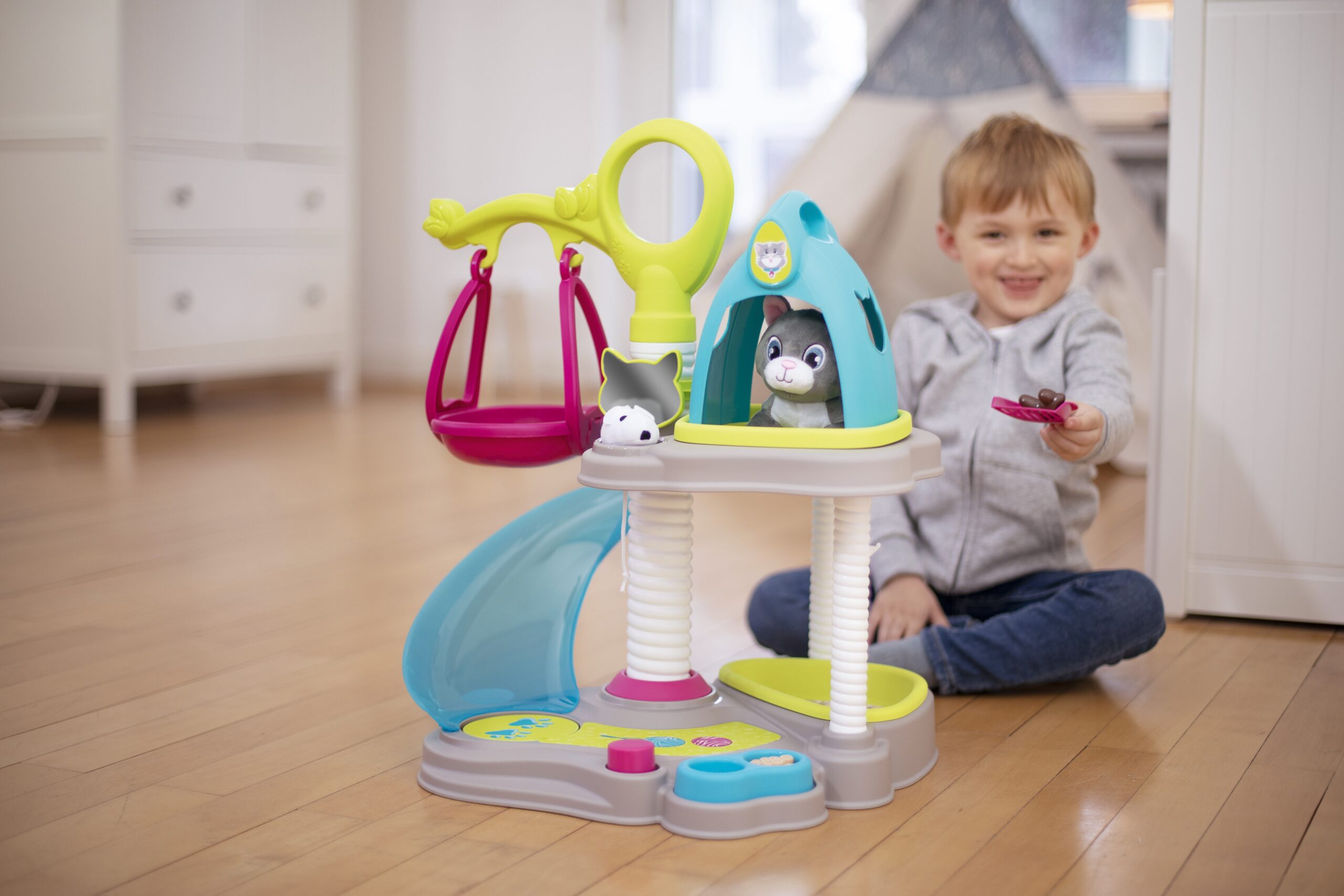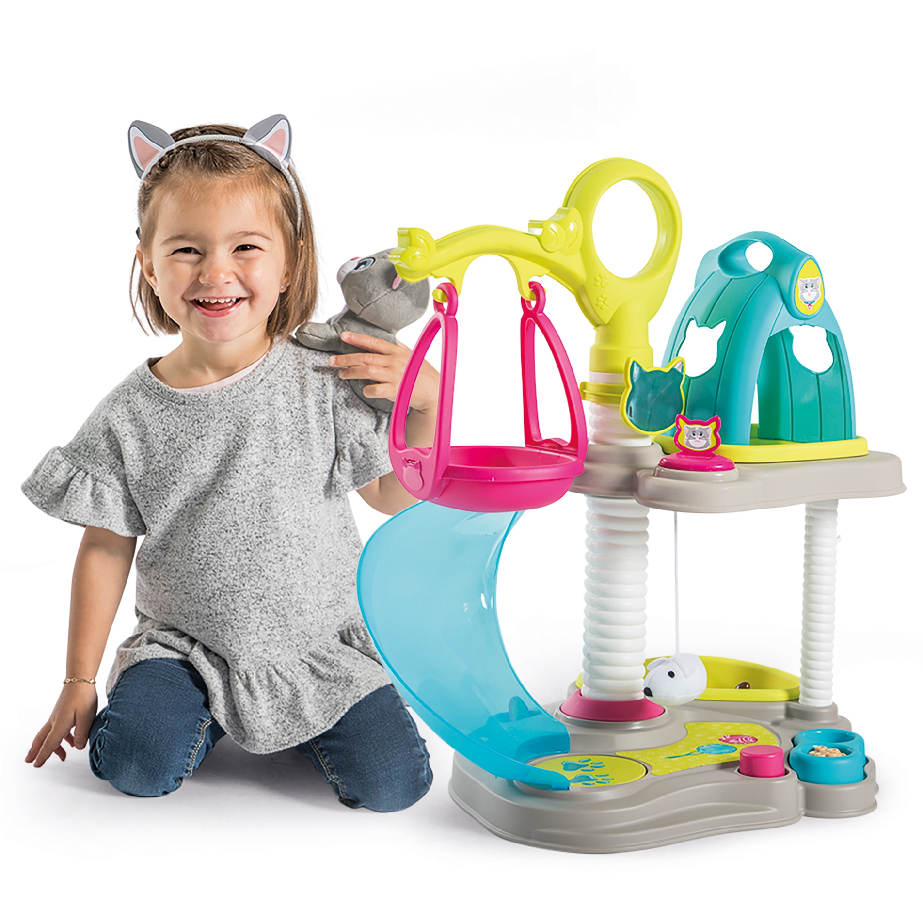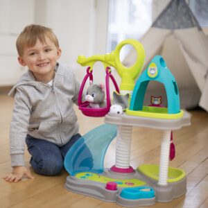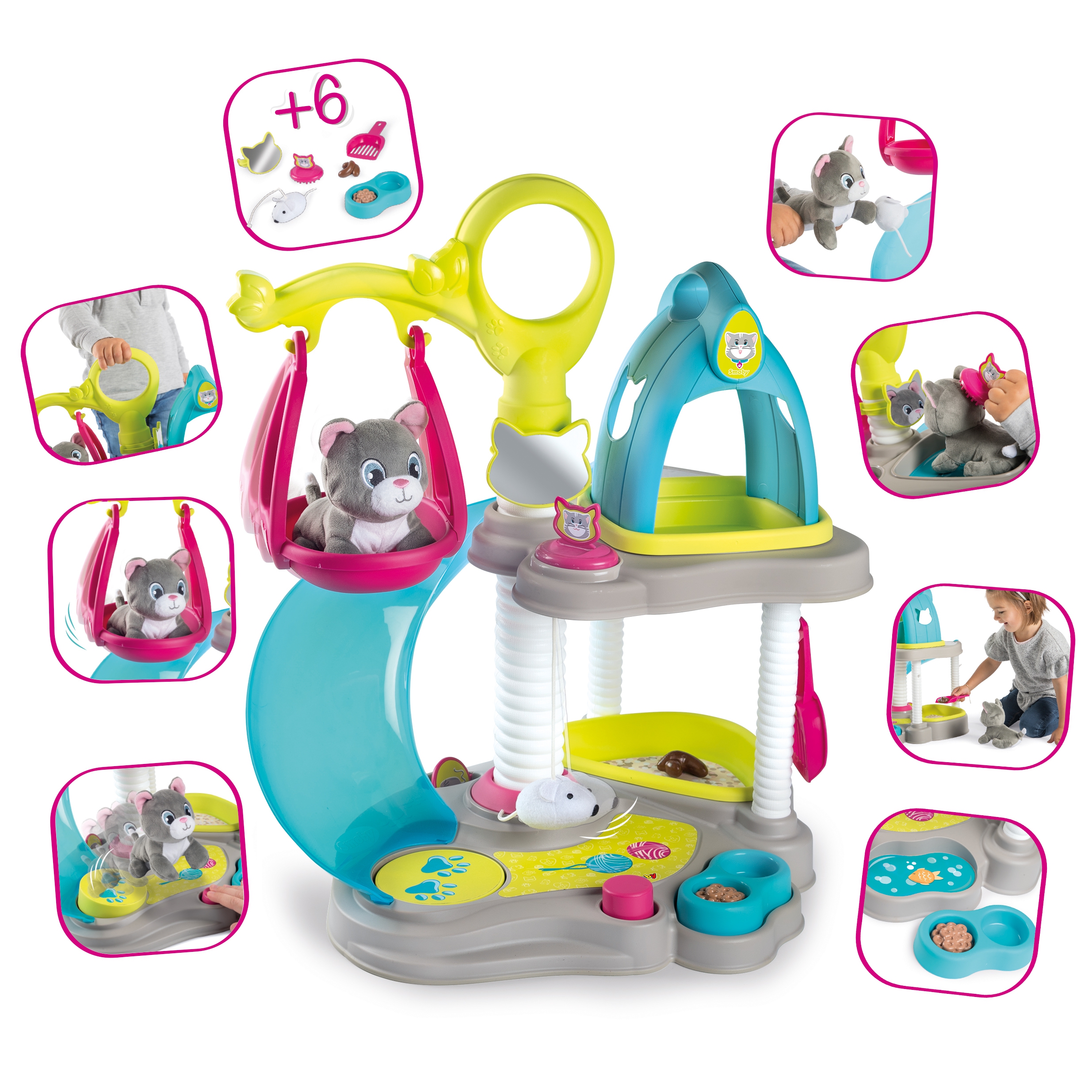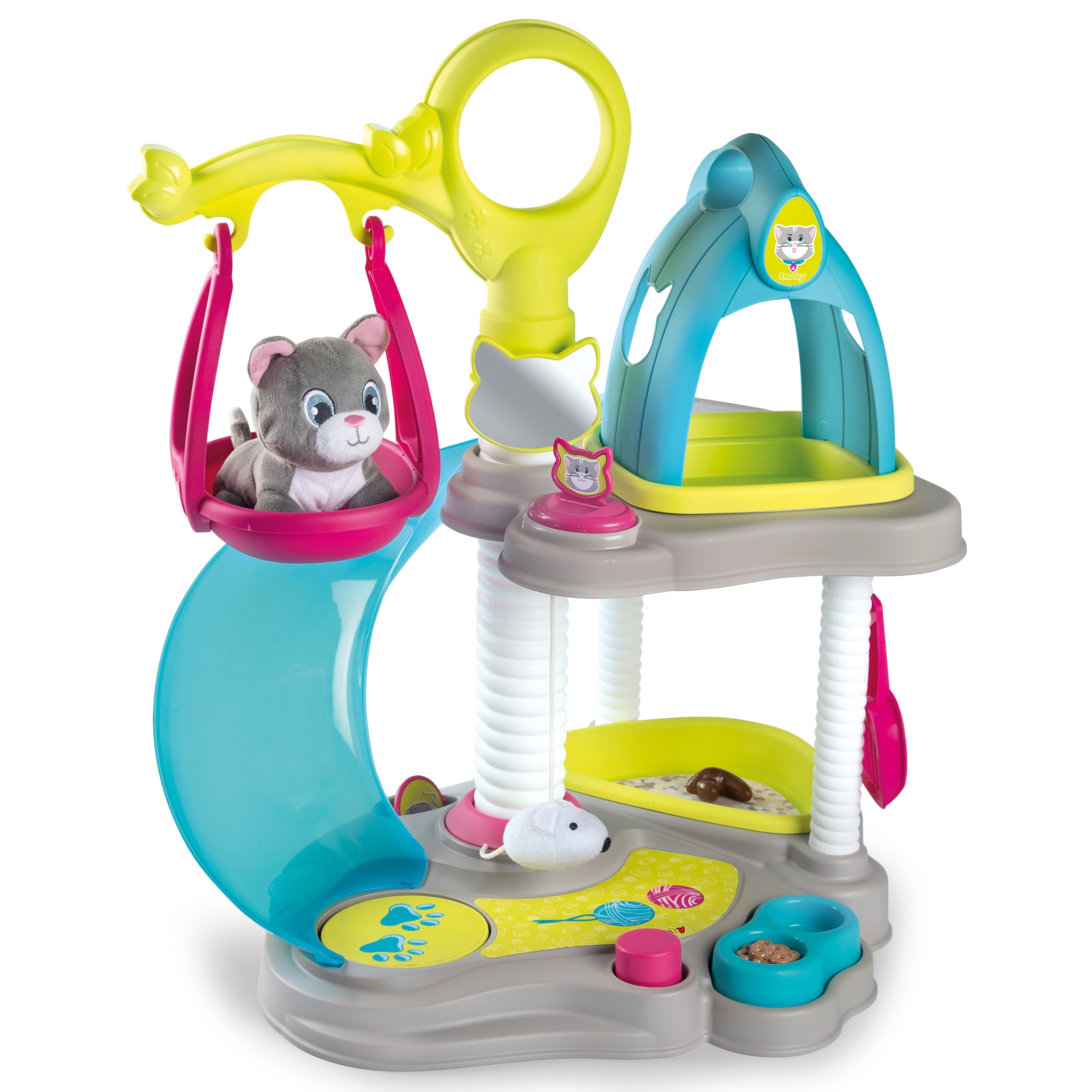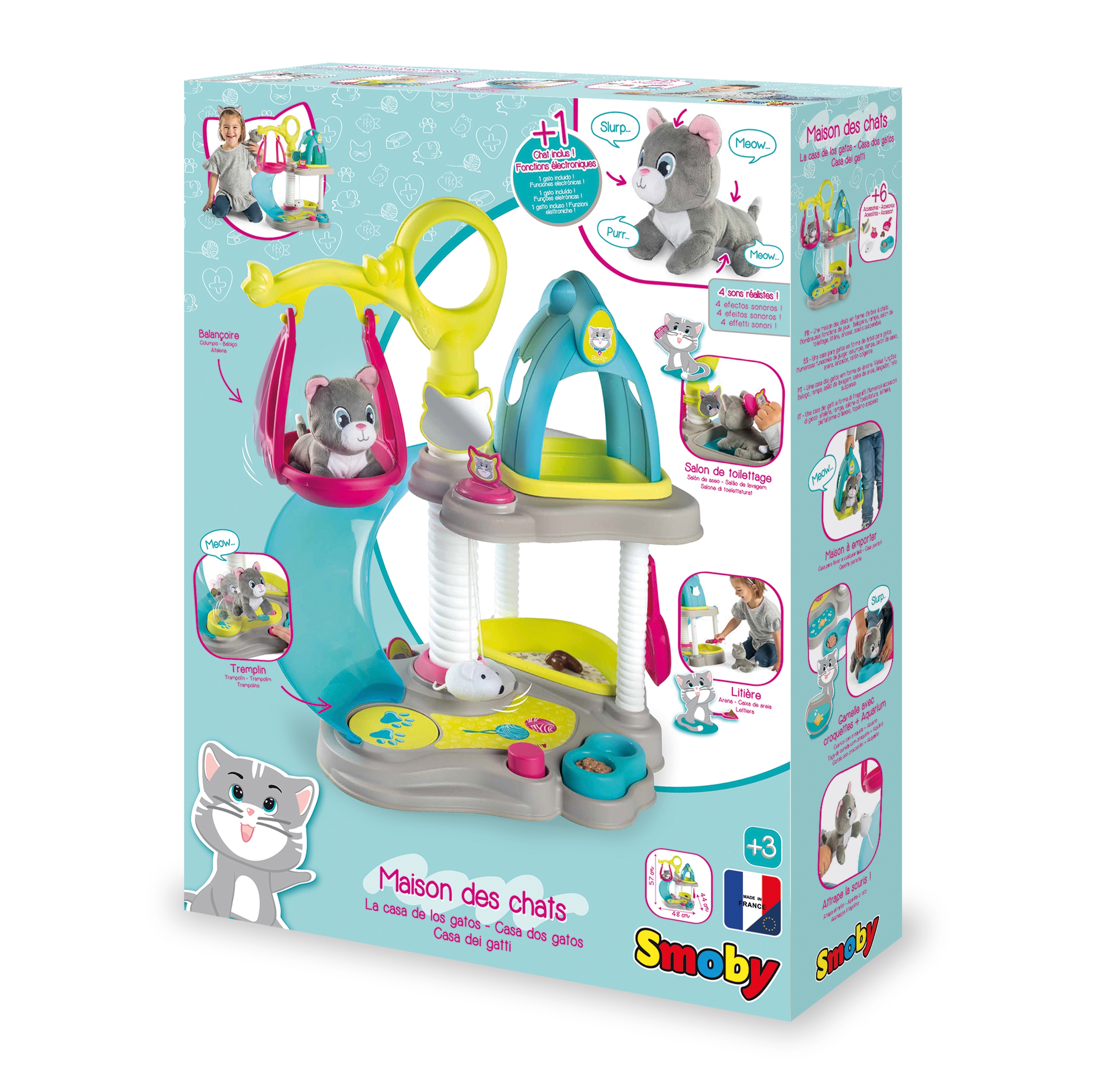 Cat house + CAT firmalt Smoby on ideaalne mänguasi loomasõpradele. Maja on kahetasandiline, komplektis on 6 tarvikut ja interaktiivne kass. Kassipoeg võib niida ja nuriseda. Mängukeskus mahutab kõik vajalik kassipoja mugavuse tagamiseks: ülemises osas on majakujuline puhkeala, mis on teisaldatav ja mida saab kasutada kandjana. Omadused: – Keskust täiendavad veel: kiik, liumägi, kandik liivaga, kauss toiduga, labidas, peegel, kamm. – Komplektiga mängides arendab laps sõrmemotoorikat ja kujutlusvõimet ning õpib ka hoolitsust. – Komplektis on 6 tarvikut: kassikandja, kammihari, tarvikud liivakasti puhastamiseks ja toidukauss. – Maja on kahel tasapinnal: ülemine korrus magamiseks ja alumine mängimiseks. – Mõeldud lastele alates 3. eluaastast. Smoby on 1924. aastast pärit traditsioonidega Prantsuse ettevõte, mis praegu kuulub Saksa mänguasjakontserni Simba-Dickie Group, mis loob, toodab ja turustab väga laia valikut mänguasju. Tänapäeval on valdavalt Euroopas toodetud Smoby tooted ülipopulaarsed ning neid iseloomustab kõrgeim kvaliteet, ohutus ja vastupidavus. Tänu sellele, et need on kõige pisematele 100% rõõmu ja mõnusa lõbu tagatiseks, on need nüüd saadaval pea igas maailma nurgas.