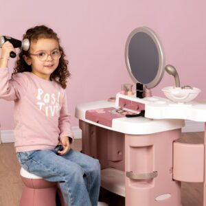Teie laps võib tunda end oma ilusalongis tõelise professionaalina! Minu ilukeskus ühendab endas kolme maailma – juuksuri, maniküüri ja meigi – ning pakub täielikku valikut aksessuaare loominguliseks mänguks. Tualettlauaga ruumis on taburet, peegel ja panipaigad, juuksurinurgas on dušiga kraanikauss ning müüginurgas makseterminal ja riiulid. Komplektis on 32 ehtsat kosmeetikat imiteerivat tarvikut ja varustust, pakkudes realistlikku mängukogemust. Pärast mängimist saab komplekti hõlpsasti kokku voltida, säästes ruumis ruumi. Omadused – Centrum My Beauty – Ilusalong lastele – 3 maailma: juuksur, maniküür ja meik – Taburet u. 27 cm kõrge – 32 tarvikut – föön, sirgendaja, UV lamp, kosmeetika ja palju muud – Kõik tarvikud imiteerivad tõelisi tooteid, on ohutud – Mehaanilised ja valgusheli funktsioonid valitud tarvikutes – Kokkupandav komplekt mugavaks hoiustamiseks (läbimõõt ca 55 cm) – Vajalikud patareid: 2 x AAA (kuivati), 3 x AAA (lamp) – ei kuulu komplekti – Made – Minul Prantsusmaal taburet – Heli ja valgusega föön + 2 otsikut – Mehaaniline sirgendaja, kamm, pintsel, käärid v 2 pudelit küünelakki, UV lamp heli- ja valgusfunktsiooniga – Peapael, sõrmus, lauvärvipalett, 2 huulepulka, ripsmetušš – 6 konteinerit kosmeetikaga, 3 münti, 4 kviitungit loovuse ja rollide arendamiseks, pangakaart motoorne koordinatsioon – Empaatia ja sotsiaalsed oskused läbi mängusalongi – Iseseisvus ja vastutus salongi “juhtimise” eest – Oskus mängu ajal ruumi planeerida ja korraldada