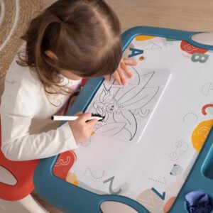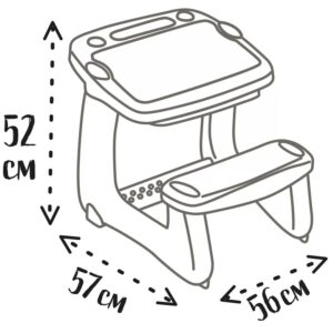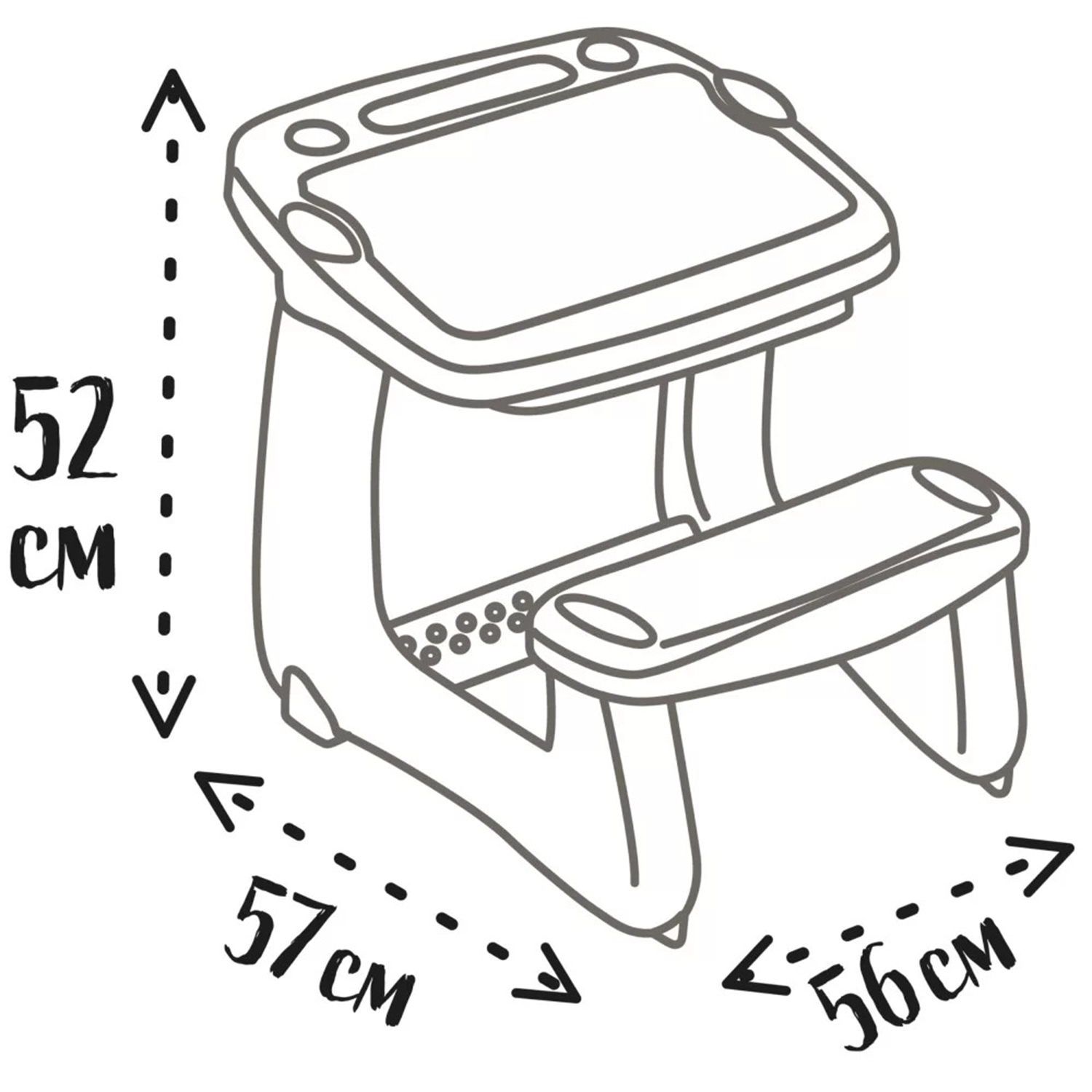 Laud koos joonestuslauaga firmalt Smoby on lastele mõeldud mööbliese, mis on laste mängualal asendamatu. Mugava istmega kirjutuslaud annab teie väikelapsele turvalise ruumi loovuse ja hariva meelelahutuse jaoks. Mänguasja disain ja mõõdud sobivad lastele alates kolmest eluaastast. Lapsed saavad mugavalt leti kohal istuda ja kõik nõud on käepärast. Väljatõmmatav sahtel ja praktilised avad mahutavad jooniseid, markereid, värvipliiatseid ja muid vidinaid. Tahvlil on kustutatav joonistuspind, mida saab puhastada kaasasoleva lapiga. Tänu sellele saavad lapsed luua uusi pilte! Komplekti omadused: – kaldplaadiga laud värvimiseks ja kirjutamiseks – pestav joonistuspind – 12 tarvikut sh värviraamatud, viltpliiats ja lapp tahvli puhastamiseks – hoiustamiseks on sahtel. Komplekti sisu: – 1 x laud tahvliga – 1 x värvileht – 1 x must, pestav marker – 1 x lapp tahvli puhastamiseks