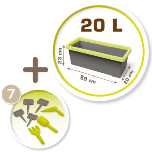 Smoby vastupidava taimepotiga saavad ka kõige pisemad aiatööd lõbusalt õppida, muidugi lõbusalt! Omadused: – Lisatarvikute hulka kuuluvad: labidas, reha, kast ja 4 taimemarkerit. – Pott mahutavusega 20 liitrit. – Ideaalne konteiner ürtide või lillede istutamiseks. – Veepeetus (põhja saab puurida, et võimaldada äravoolu). – Sellel on 4 plaati, tänu millele saame istutatud taimede nimed üles kirjutada. – Kvaliteetne töötlus tagab toote kasutusaja palju aastaid. Smoby on Prantsusmaa suurim ja populaarseim mänguasjabränd ning üks parimaid mänguasjatootjaid maailmas. Selle kaubamärgi maine räägib enda eest ning pakkumise laius ja sortimendi mitmekesisus kinnitavad selle ettevõtte staatust. Smoby on kuulus kõikvõimalike mänguasjade poolest, kuid erilist tähelepanu tuleks pöörata lastemajadele, aiamänguasjadele ja pealesõitudele.