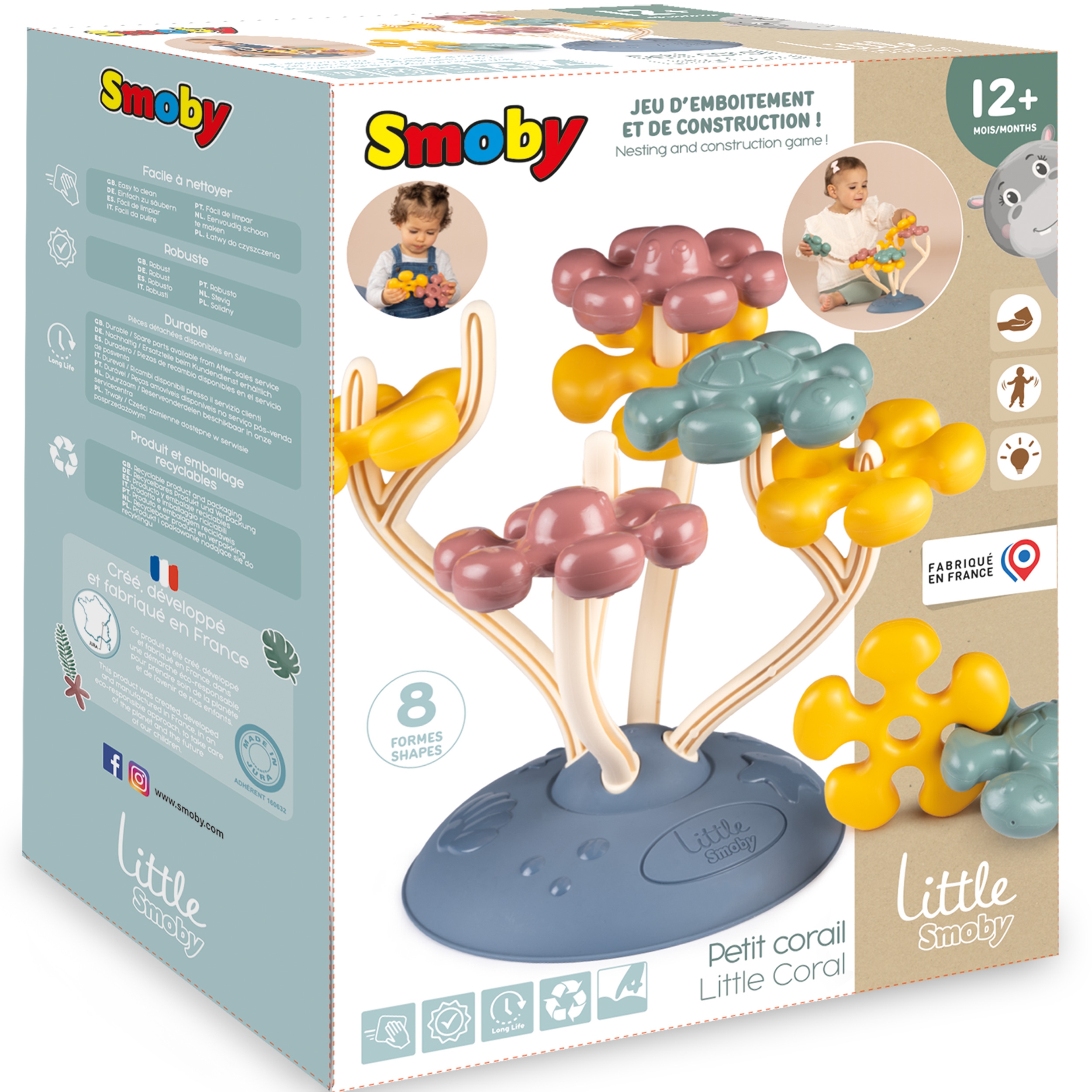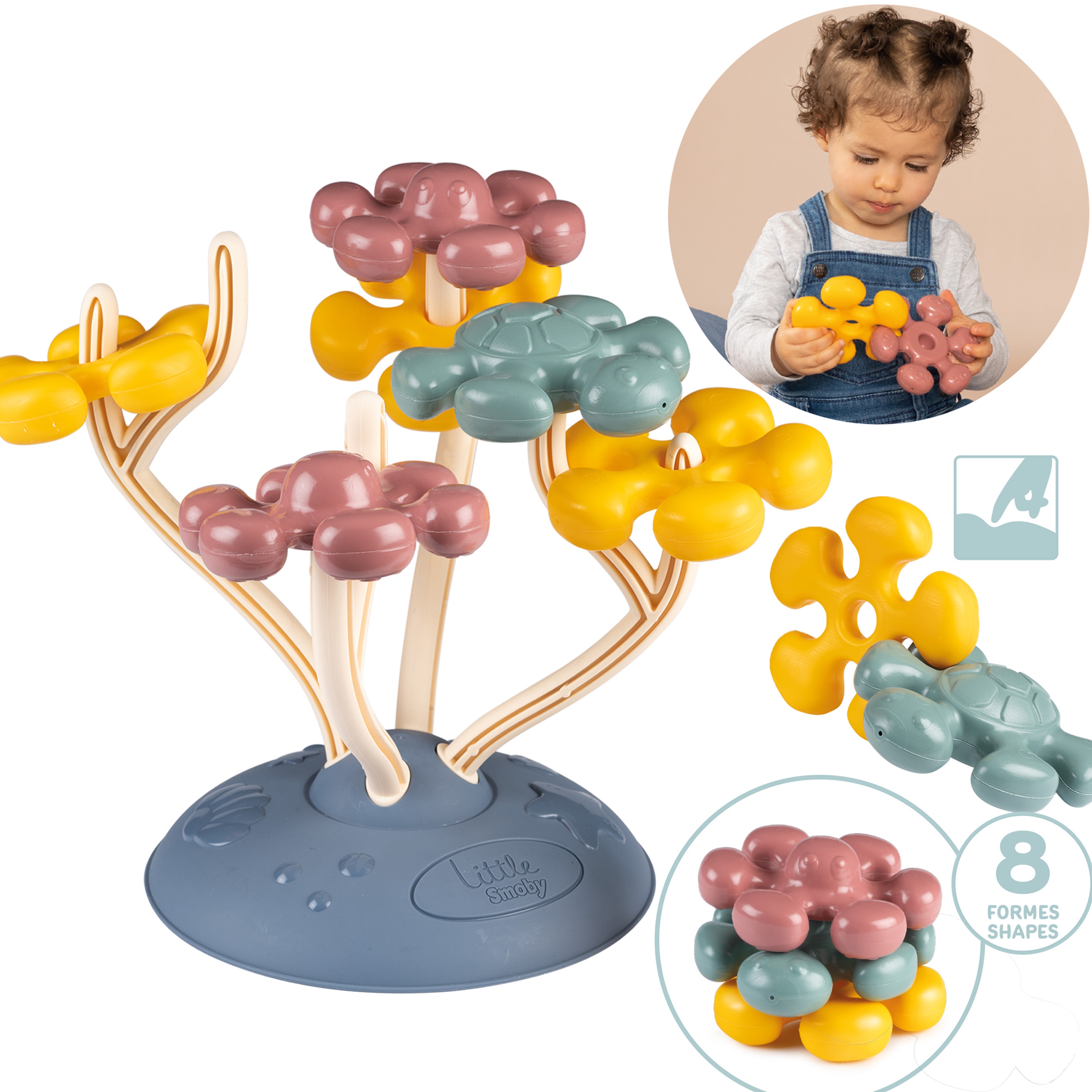 Sensory Tree Motor Toy kaubamärgilt SMOBY on mänguasi, mis loomulikult toetab lapse sensoorset ja motoorset arengut. See sobib imikutele alates kaheteistkümnendast elukuust. Mänguasjal on korallikujuline alus, millele on asetatud suured värvilised elemendid. Korallil saab vabalt paigutada ja asendada kaheksa kilpkonna, kaheksajalga ja lilli meenutavat kujundit. Elementide suurus on kohandatud maadeavastajate väikestele kätele. Mänguasjad on sertifitseeritud ja vastupidavad, mis tagab pika ja turvalise mängimise. Omadused: – mänguasi lastele alates 12. elukuust, – ümarad elemendid, intrigeerivate vormide ja harmooniliste värvidega, – kvaliteetne materjal, mis tagab toote pika eluea ja lihtsa puhastamise, – toode ja pakend on taaskasutatavad, – valmistatud Prantsusmaal.