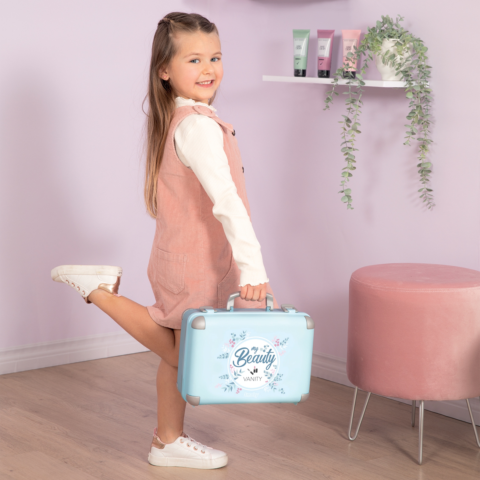 Lastele meeldib täiskasvanuid jälgida ja jäljendada. My Beaty sarja kohvris olev Ilusalong ühendab endas 3 maailma – juuksuri, maniküüri ja meigi. Komplektis on 13 ehtsat kosmeetikat imiteerivat tarvikut. Tänu selle kompaktsetele mõõtmetele ja käepidemele saab selle kohvristuudio kaasa võtta peaaegu kõikjale. Omadused: – My Beatu sarja kohver ühendab endas 3 maailma – juuksuritöö, maniküür ja meik, – komplektis on 13 lisavarustust: lauvärvipalett, 2 küünelakki, 2 huulepulka, ripsmetušš, kamm, juuksehari, peapael, sõrmus, parfüümipudel, kreem, juuksegeel, – kõik tarvikud, mis ei sisalda ehtsaid tooteid, aksessuaarid, – kohvristuudiot saab tänu kompaktsetele mõõtudele ja käepidemele kaasa võtta praktiliselt kõikjale.
