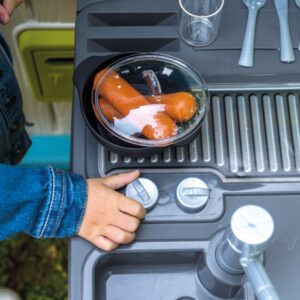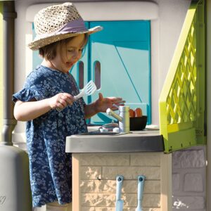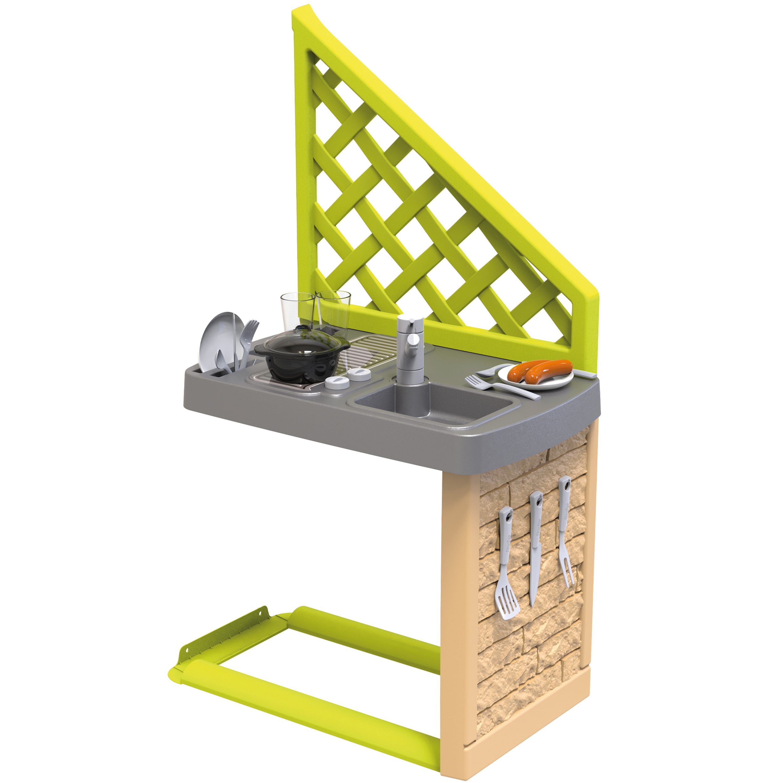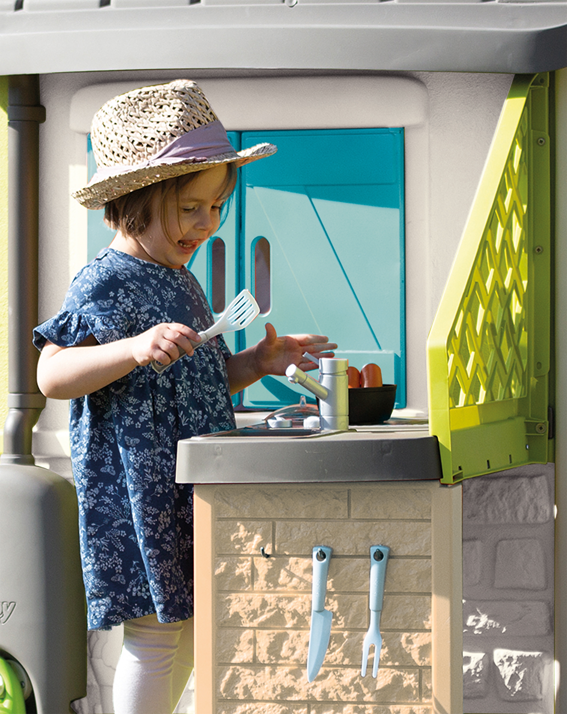 SMOBY suveköök on ideaalne täiendus Neo Jura majale, mis muutub tänu sellele realistlikumaks! Lapsed saavad oma maja oma eelistuste järgi kohandada, varustades selle suveköögiga. Nii näeb suvila välja nagu päris kodu. Lapsed saavad nautida grillil maitsvate roogade valmistamist ja kasutada 17 tarvikut: vorstid, klaasid, taldrikud, söögiriistad, kõik vajalik aias mõnusaks ajaveetmiseks! Suveköök, nagu ka Neo Jura maja, on UV-kiirte suhtes vastupidav, seega säilitab see oma vastupidavuse ja erksad värvid kaua. Uksed on mõeldud lastele alates 2. eluaastast. Toode on valmistatud Prantsusmaal. Omadused: – mänguasi lastele alates 2. eluaastast, – ühildub Neo Jura majaga, – maja isikupärastamise võimalus, – vastupidavus UV-kiirgusele, – sisaldab “grill” ja 17 tarvikut, – valmistatud Prantsusmaal. Komplekti kuulub: – suveköök töötasapinna ja kraanikausiga, – grill koos panniga, – 4 vorsti, – 4 klaasi, – 4 taldrikut, – 4 kahvlit, – 4 nuga.