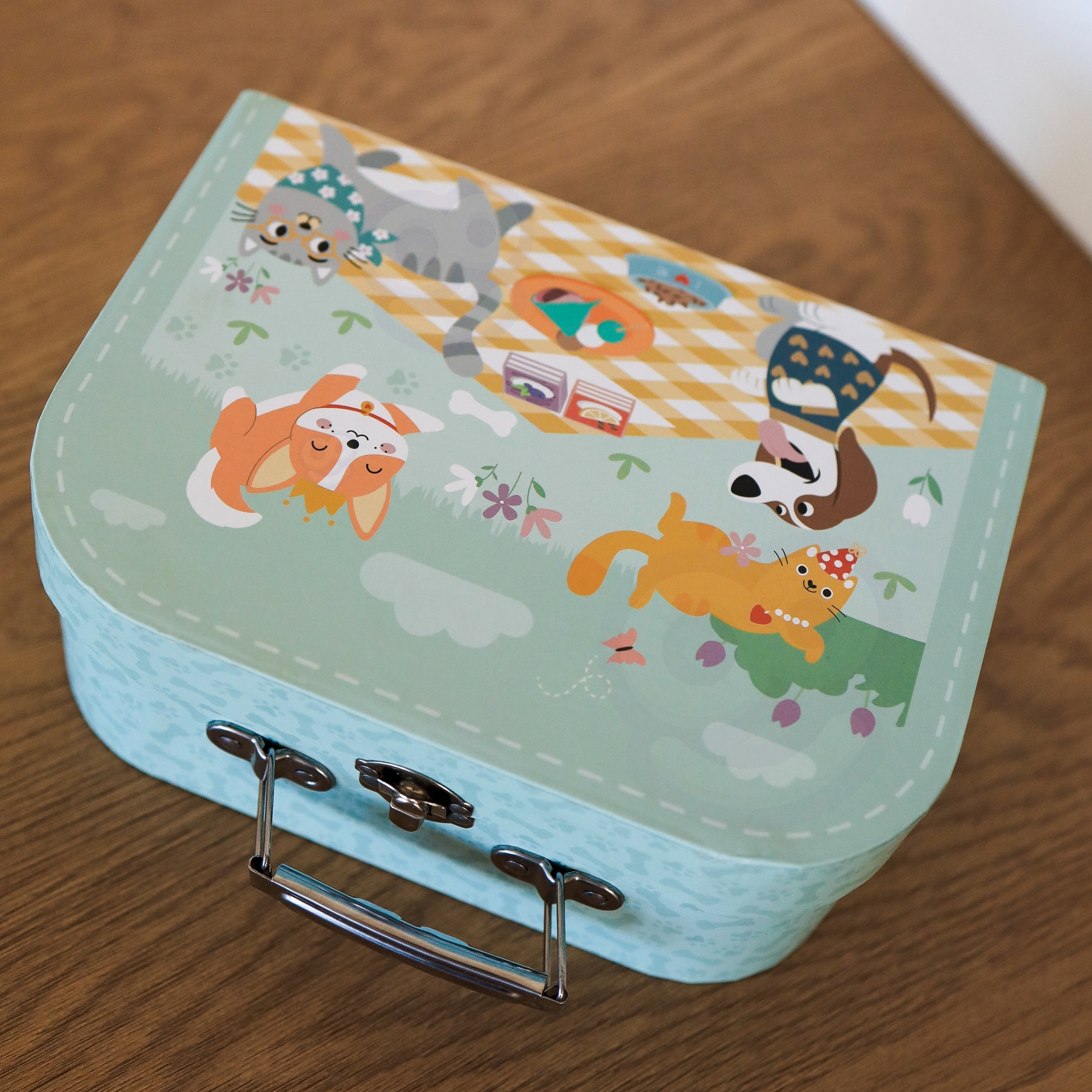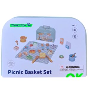 Puidust piknikukomplekt kohvris – lõbu, mis ergutab kujutlusvõimet! Puidust piknikukomplekt on tarvikute komplekt toitude valmistamiseks ja serveerimiseks. See kaunis puidust komplekt ei ole ainult võluv mänguasi – see on kutse loovale, arendavale mängule kodus ja õues. Ideaalne kingituseks! Kõik elemendid on pakitud praktilisse kohvrisse, nii et mänguasja saab hõlpsasti hoiustada ja reisile kaasa võtta. See sobib suurepäraselt iseseisvaks mängimiseks või ühisteks tegevusteks õdede-vendade või sõpradega. Omadused: – Mänguasi vanuses 3 ja vanematele – Komplekt on pakitud ilusasse sinisesse sanga ja loomamotiiviga kohvrisse – Lihtne kaasas kanda ja hoiustada – Realistlikud puitelemendid – röstsai, puuviljad, küpsised, sarvesaiad, joogid – kõik nagu päris! – Kvaliteetne puit ohutute, mittetoksiliste värvidega – Siledalt viimistletud servad – ohutu ka kõige pisematele – Ideaalne mängimiseks kodus, aias ja reisil. Komplekti kuulub: – Sinine säilituskohver – Ruuduline piknikulaudlina – 2 tassi alustassidega – 2 taldrikut – 2 teelusikatäit – 2 kahvlit – 2 sviitrit -/- 2 croissant (lõikamiseks) – Puidust puuvili: maasikas, sidrun, kiivi, viinamarjad (lõikamiseks) – 2 küpsist – 2 pakki jooki (piim ja mahl) Mänguasi arendab: – Loovust ja kujutlusvõimet – Lapsed loovad oma lugusid ja stsenaariume – Sotsiaalsed oskused – Koosmäng õpetab jagama ja koostööd – Käe-silma koordineerimine – elementide paigutus – elemendid, rollimäng, serveerimine – serveerimine toetab kõne arengut
