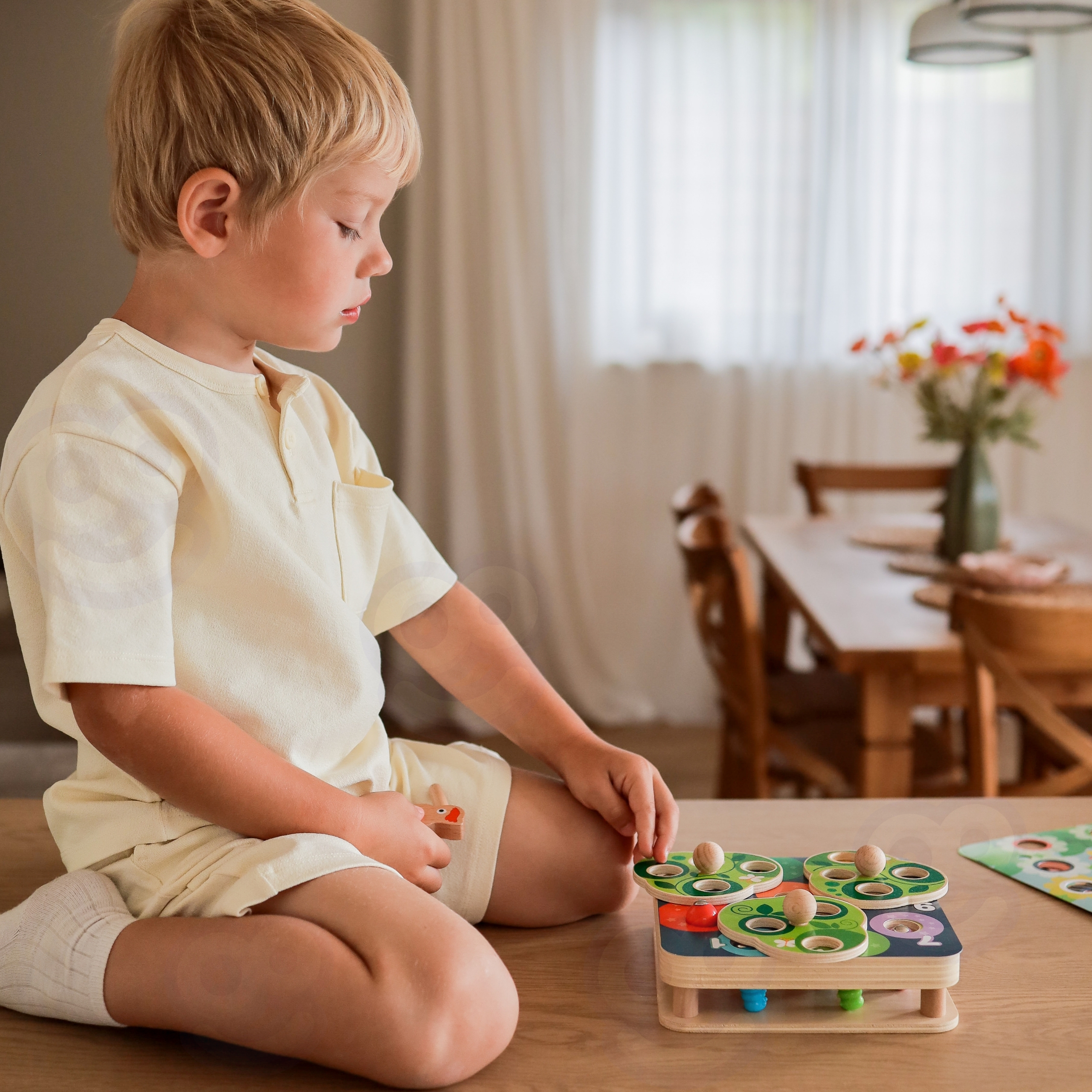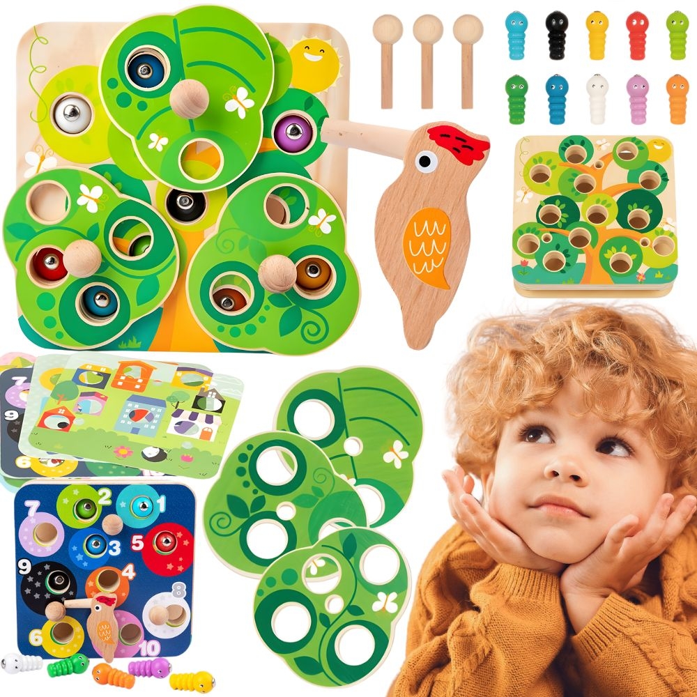 TOOKY TOY värvikas puidust magnetmäng koos armsa rähniga röövikute püüdmiseks ühendab arkaadrõõmu haritusega. Kaasasolevad puitlauad võimaldavad õppida värve, numbreid, kujundeid ja loomi. Pöörlevad lehed katavad röövikuid, lisades mängimisele väljakutse. Tugev, sujuvalt viimistletud struktuur ja magnetid muudavad iga rööviku tõmbamise rahuldavaks ja julgustavad mängimist jätkama. Omadused: – Lastele alates 3. eluaastast – Valmistatud kvaliteetsetest materjalidest – Puidust alus ja siledate servadega tarvikud, värvitud ohutute värvidega – Linnu magnettila abil on lihtsam röövikuid haarata ja aukudesse liigutada. – Vahetatavad värvilised puidust lauad – Väikeste laste kätega kohandatud elemendid Komplekti kuulub: – Puidust alus – Magneträhn – 3 lehte – 3 Lehtede kinnitust – 8 Värvilist lauda – 10 Röövikut Mänguasi arendab: – Peenmotoorikat – Osavust – Käe-silma koordinatsiooni – Keskendumist, – Värvide ja kujundite äratundmise võimet