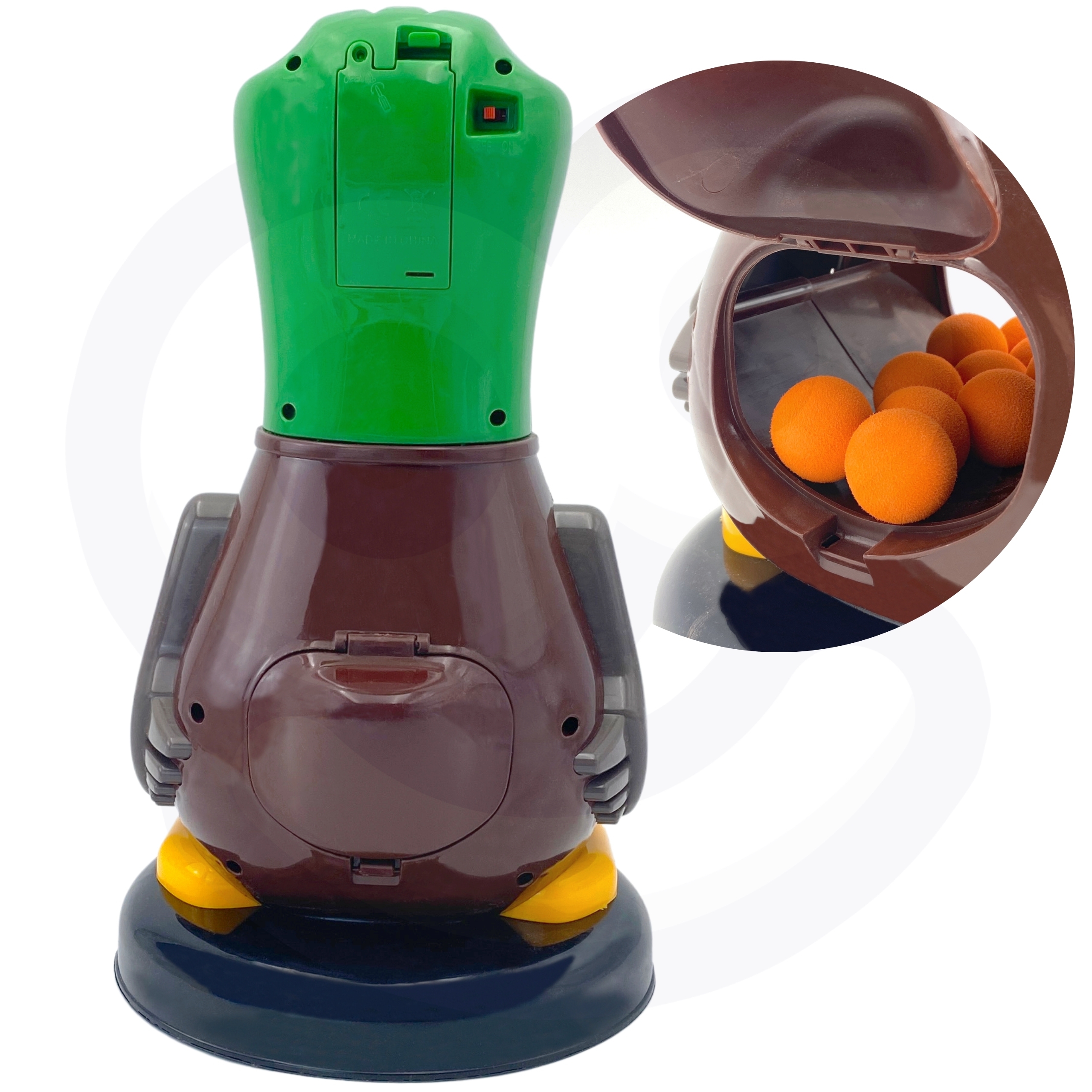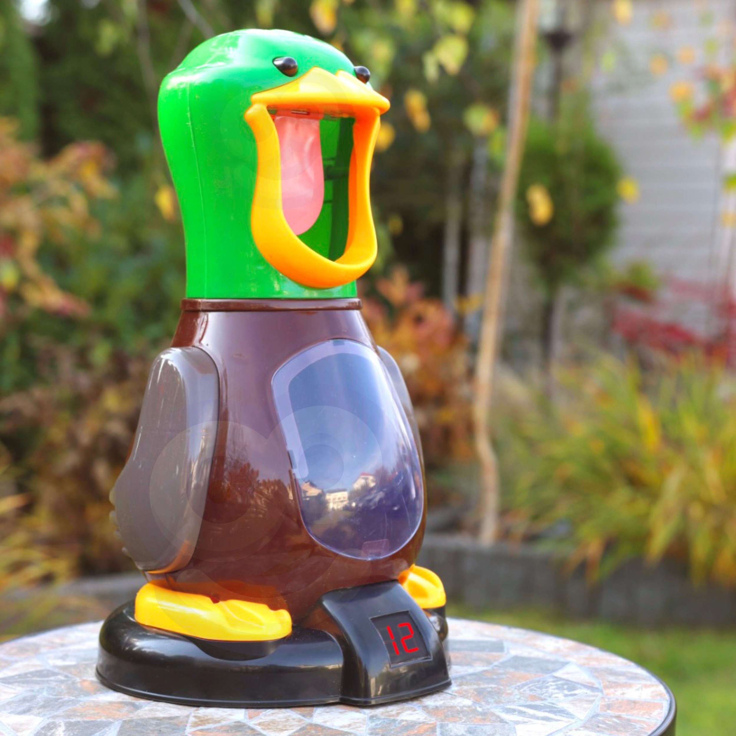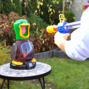 Viige oma laps mänguasjaga “Hungry Duck” arkaadmängude maagilisse maailma! See on WOOPIE kaubamärgi dünaamiline arkaadmäng, mis pakub palju rõõmu nii lastele kui ka täiskasvanutele. See komplekt on suurepärane võimalus keskendumisvõime, täpsuse ja motoorika koordinatsiooni arendamiseks. Mängu eesmärk on tulistada palle drake’i nokas olevasse auku. Mängija peab spetsiaalset relva kasutades täpselt sihtima ja lööma palliga parti. Iga löögi eest loeb drake punkte, mis kuvatakse selle põhjas ekraanil. Mängu saab mängida üksi või võistlusrežiimis, kus mängijad võrdlevad oma tulemusi. Omadused: – Mänguasi vanusele alates 3. eluaastast – Lõbu, mis arendab osavust ja täpsust, pakkudes samas palju nalja – Sihtmärgi tabamine nõuab lapselt keskendumist – Võimalus palle mänguasjasse lihtsalt hoiustada – Pardil on suur LCD ekraan, millel on tulemus näha – Mängige sõpradega ja vaadake, kes kogub enim punkte! Mängureeglid: – keera mänguasja pea peal olev lüliti asendisse “sisse” – laadige relv kuulidega – püstol töötab õhu jõul, nii et vajutage lihtsalt varre enda poole ja lükake see eemale ja pall laseb – pärast lasku kuulete iseloomulikku heli – sihtige pardi keelt, pärast palli sissekukkumist loeb part punktid kokku ja kuvab punase sisselülitamisega tulemuse: nuppu. Komplekti kuulub: – Punktiekraaniga part – 12 pehmet laskepalli – 1 kuulipüstol
