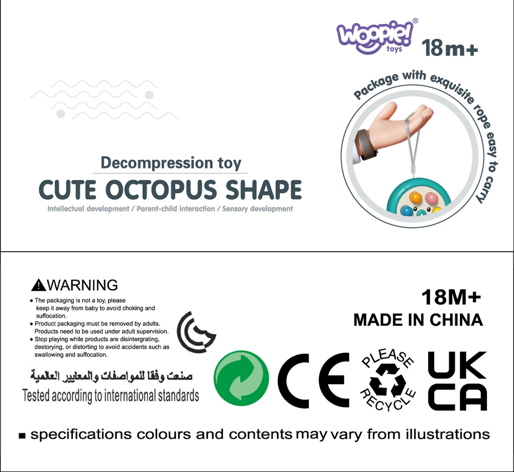 Lööge WOOPIE kaubamärgi arkaadmängu Mole! See on fantastiline mäng, mis arendab reflekse, taju, käelisi oskusi ja nägemismeelt. Mängu eesmärk on võimalikult kiiresti tabada erinevatesse kohtadesse ilmuvat mutti. Las lõbu alata ja päästa oma porgandisaak muttide eest! Mänguasja külge on võimalik kinnitada nöör, mis aitab lapsel mänguasja hõlpsalt kaasas kanda. Omadused: – Mänguasi alates 18. elukuust – Võimalus kinnitada nöör mänguasja kandmise hõlbustamiseks – Mäng hõlmab näpuga löömist tekkivatele muttidele – Arendab käelisi ja vaimseid oskusi – Mängu saab mängida igal pool – kodus ja õues – Mänguasi on saadaval 2 värvitoonis (roheline ja roosa) Komplekti kuulub: – Pehme nupuvajutusega 3-kujuline laud.