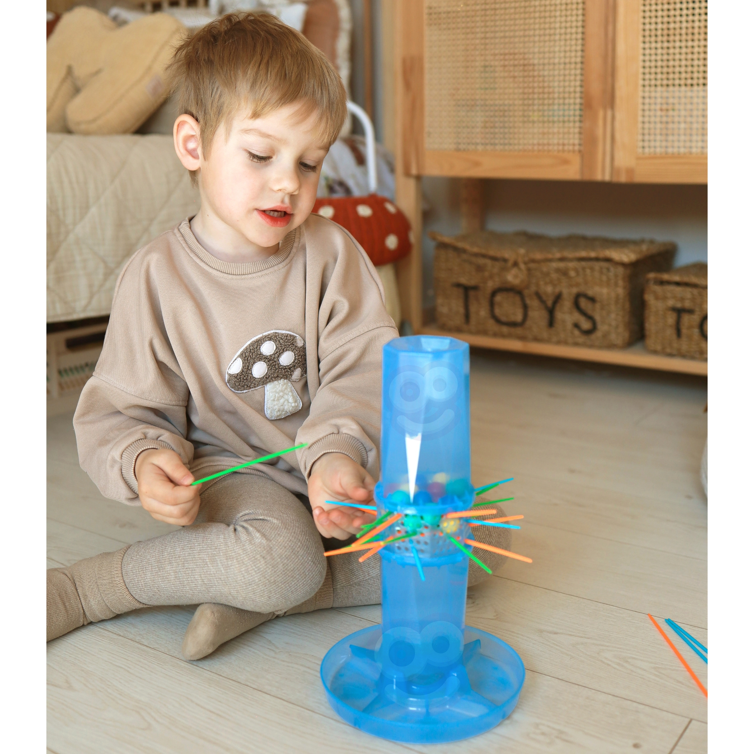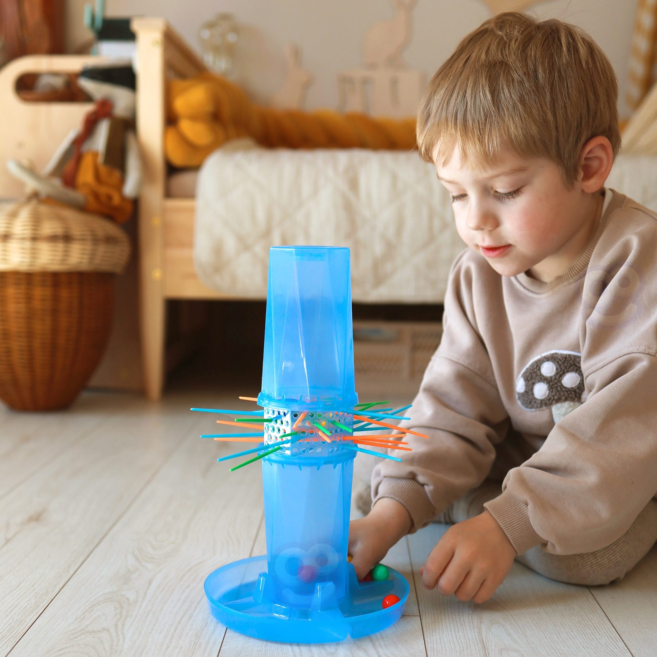 Liikuge põneva võistluse ja lõputu lõbu maailma Woopie kaubamärgi arkaadmängu Falling Balls Bierki abil! Sõltuvust tekitav ja kergesti õpitav mehaanika muudab komplekti teie lapse ja kogu pere lemmikmänguks. Mäng hõlmab pulkade ettevaatlikku eemaldamist konstruktsioonist, et sees olevad pallid ei kukuks alumisse anumasse. Kes on täpsem ja kes kutsub esile pallide laviini? See on väljakutse, mis pakub tunde lõbusalt! Tänu värvilisele läbipaistvale tornile ja intensiivsetes värvides elementidele muutub mäng visuaalselt atraktiivseks ja kaasahaaravaks. Toode on valmistatud ohutust, mittetoksilisest materjalist, mis tagab täieliku ohutuse isegi intensiivse mängu ajal. Mänguasi pakub mitte ainult meelelahutust, vaid ka väärtuslikku hariduslikku kasu – see õpetab strateegilist mõtlemist, planeerimist ning arendab kannatlikkust ja keskendumisvõimet. Mäng on suurepärane nii kodus kui õues ning tänu oma kompaktsele suurusele ja lihtsale disainile saab seda hõlpsasti kokku voltida, hoiustada ja reisile kaasa võtta. Mõeldud lastele alates 4. eluaastast, sobib suurepäraselt nii iseseisvaks mängimiseks kui ka eakaaslaste või kogu perega. Omadused: – Mänguasi lastele alates 3. eluaastast – Arkaad- ja loogikamäng kogu perele – Turvalised, mittetoksilised materjalid – Ideaalne lastele – Moodne disain – Läbipaistev torn, värvilised pallid ja pulgad – Lihtne kokkupanek ja intuitiivne juhtimine – Mäng 2 või enamale mängijale – Ideaalne seltskonnalõbu – Ideaalne pidude, pikniku ja pereõhtute jaoks – Treenib keskendumis- ja planeerimisvõimet ära igavle pärast ühte mängu Mänguasi arendab: – käe-silma koordinatsiooni – reflekse ja keskendumisvõimet – loogilise mõtlemise võimet – kannatlikkust ja enesekontrolli – ennustamisvõimet – koostööd ja võistlemist grupis Toote mõõdud: 19 x 19 x 30 (cm) Pakendi mõõdud: 27 x 27 x 10 (cm)