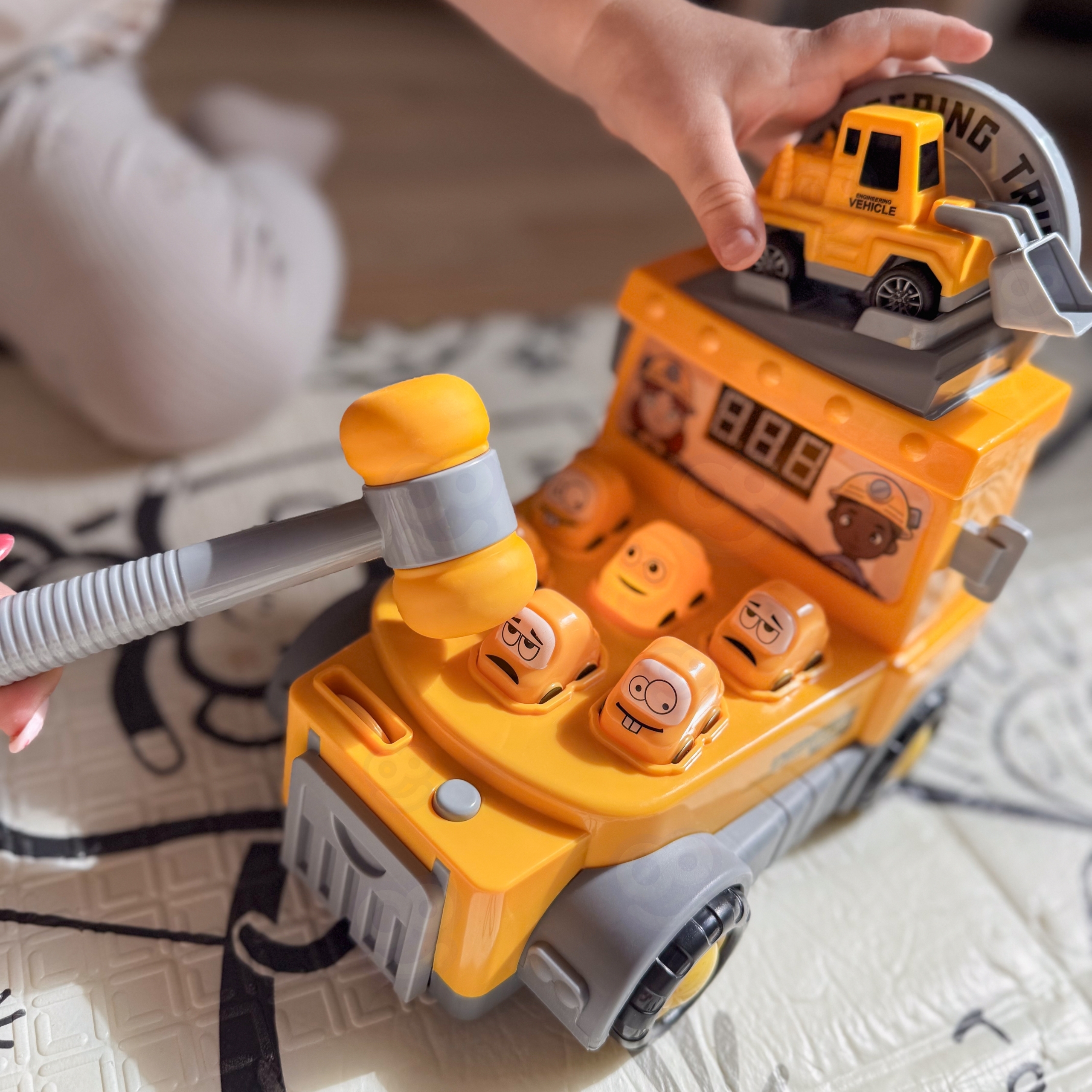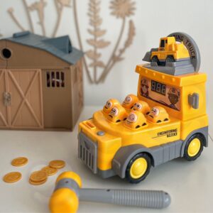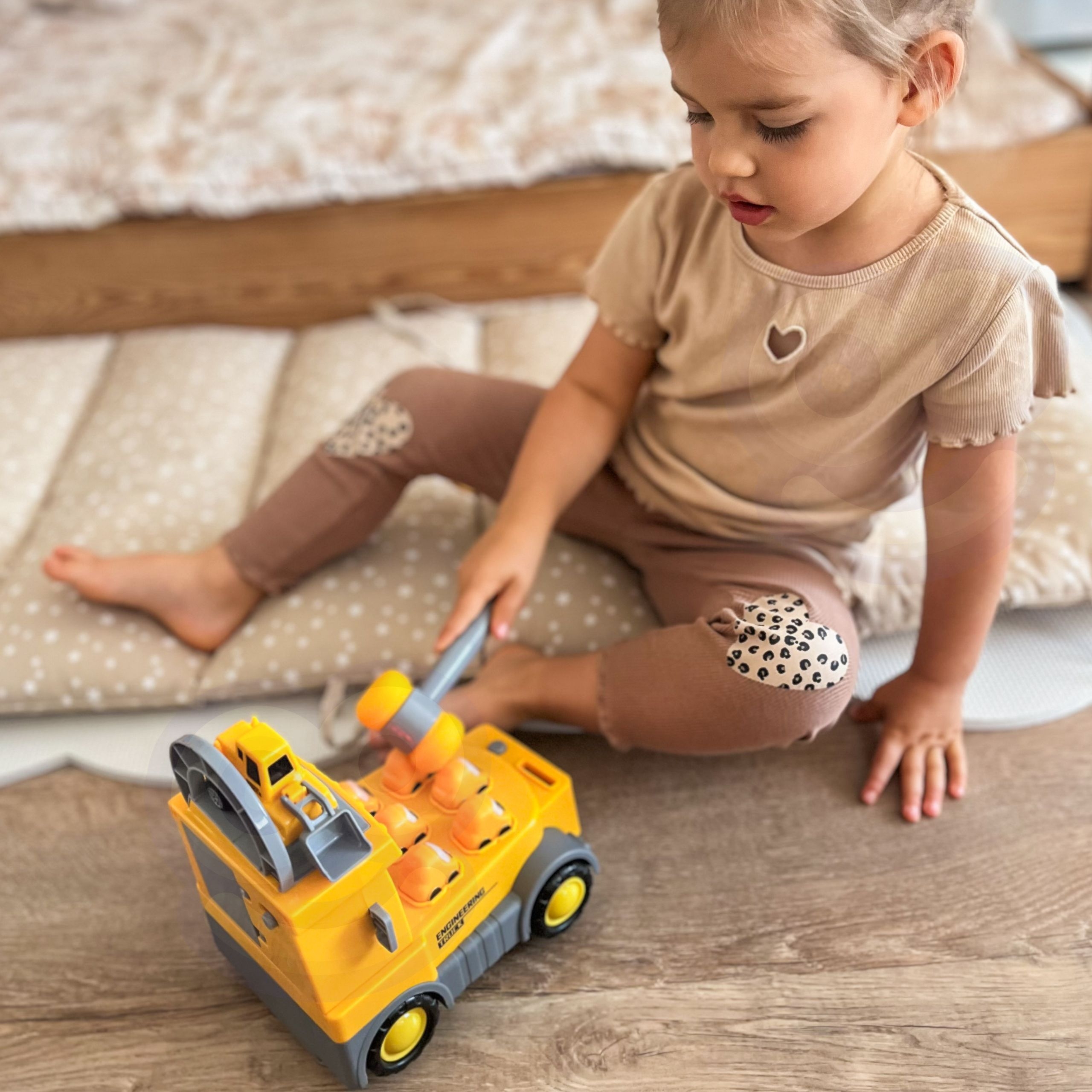 Woopie kaks-ühes ehitusauto on ainulaadne mänguasi, mis pakub lastele tundide kaupa loomingulist, aktiivset ja põnevat meelelahutust. See on kombinatsioon dünaamilisest arkaadmängust “Whack a Mole” ja klassikalisest pealesõitvast autost. Lihtsalt sisestage münt, haarake pehme haamer ja koguge punkte, lüües väikeste kollaste autode kujul “mutte”! Värvikas disain, vastupidav konstruktsioon ja multifunktsionaalsus panevad mänguasja köitma iga väikese tuletõrjuja tähelepanu. Omadused: – Lastele alates 3. eluaastast – Valmistatud kvaliteetsetest materjalidest – 2 in 1 mänguasi – Mäng “Whack a Mole” ja liikuv ehitusauto – 6 kiirust ja 2 raskusastet panevad teie lapse oskused proovile – Ekraan koos punktidega – Ohutu, pehme haamri ja ümarate elementide kasutamine on täiesti ohutu – Siledad rattad võimaldavad autol põrandal sõita stabiilsus mängu ajal – Toide: 3 x 1,5V AA (ei kuulu komplekti) Komplekti kuulub: – Ehitusveok – Haamer – 6 Münti – Mini ehitusauto (juhuslikult valitud) – Kruvikeeraja Mänguasi arendab: – Motoorikat – Käe-silma koordinatsiooni – Reflekse – Reaktsioonikiirus – Taju – Keskendumine – Loovus – Kujutlusvõime