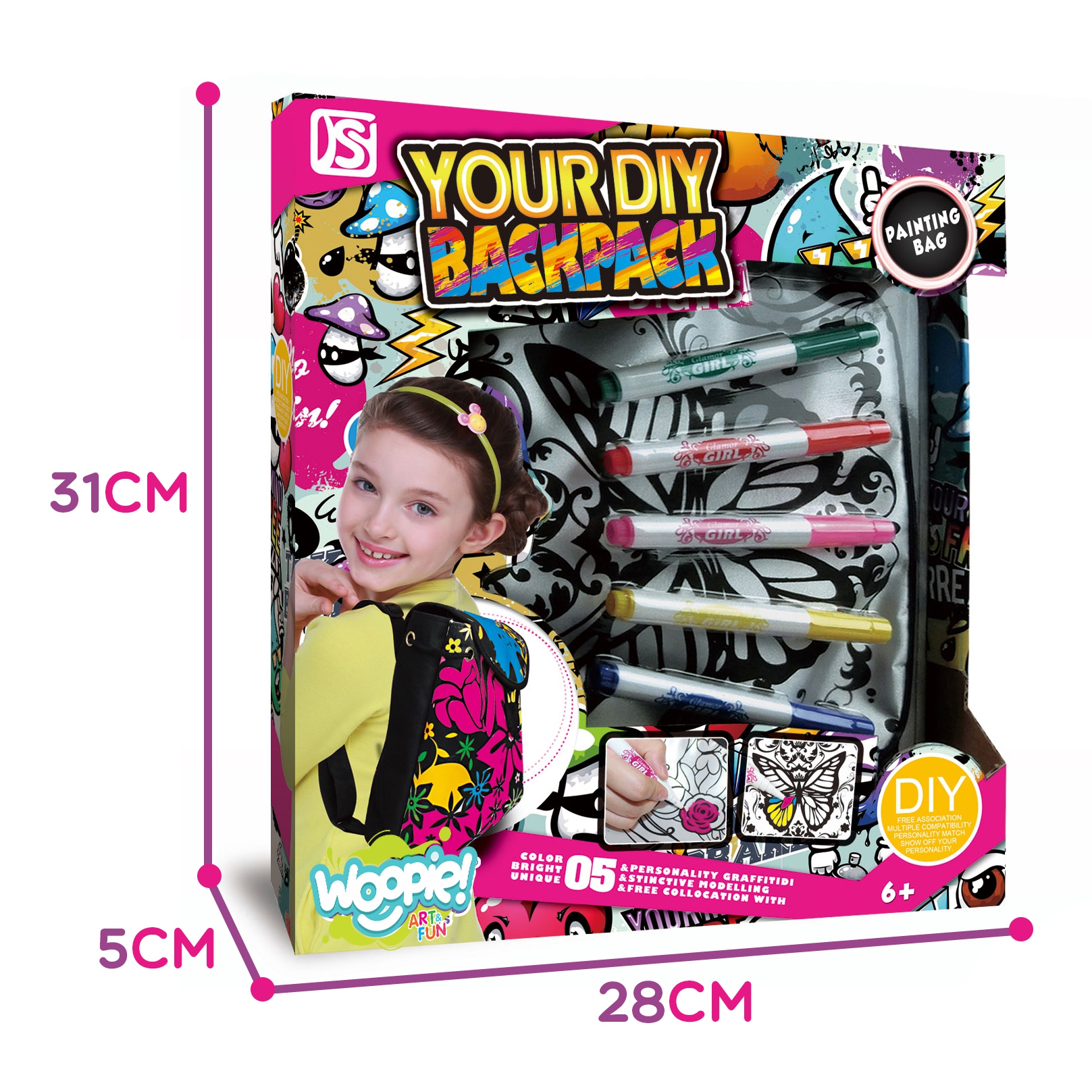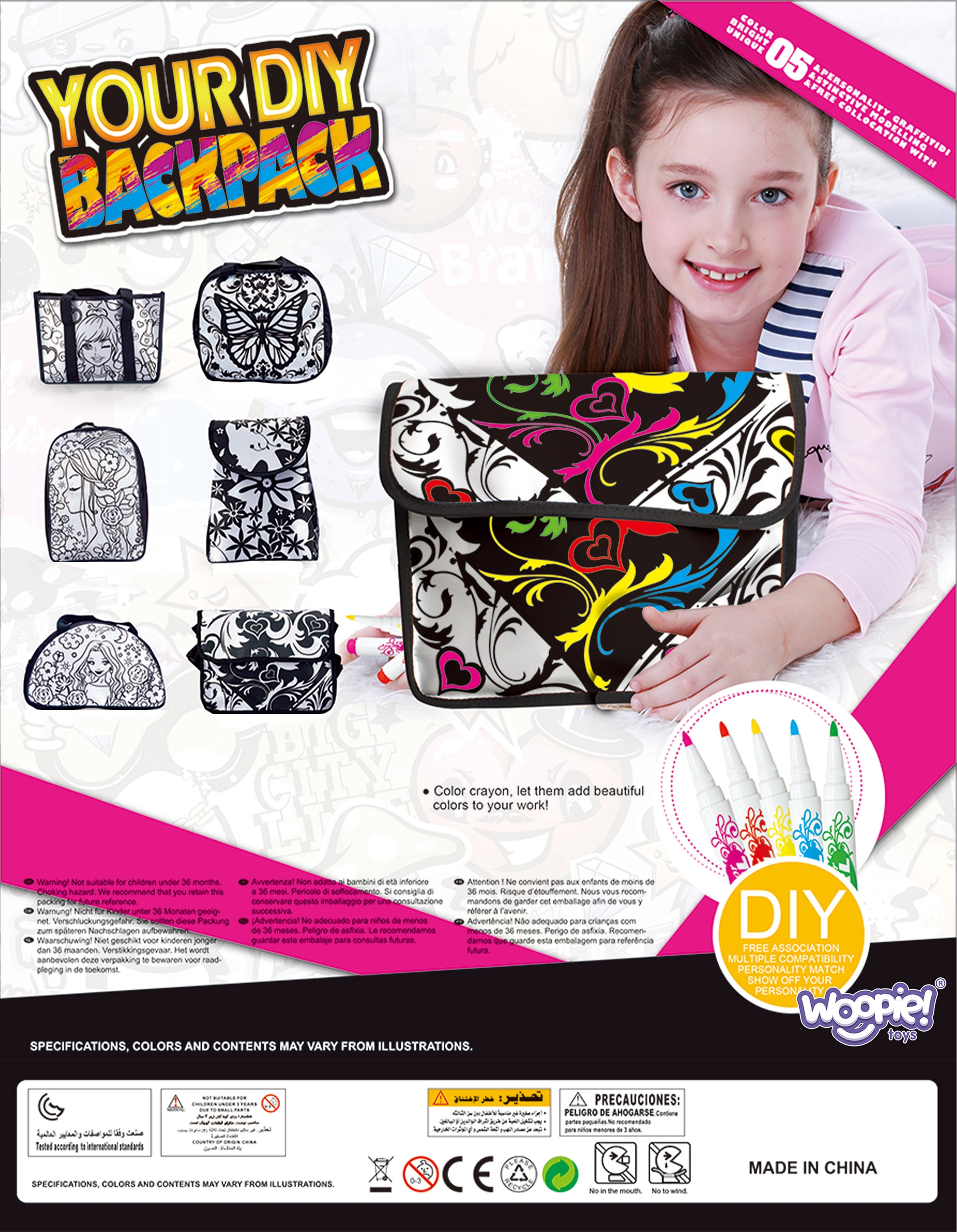 Brändi WOOPIE kunstikomplekt tüdrukutele arendab teie lapse kujutlusvõimet. Lõbus on koti värvimine. 5 erinevat värvi markerit võimaldavad vabalt kotile värve märkida – ainsaks piiranguks on sinu enda fantaasia. Pärast värvimist võib mänguasi toimida klassikalise kotina asjade hoidmiseks või kandmiseks. Koti loomise/värvimisega mängimine mõjutab positiivselt lapse arengut, kujundab tema kunstilisi võimeid koos kujutlusvõime ja loovuse arendamisega, treenides keskendumist; arendab käelisi/motoorilisi oskusi, nn peenmotoorikat (käe liikumist). Omadused: – mänguasi vanuses 6 aastat ja vanemad, – lõbu hõlmab koti värvimist, kuidas soovite, – mänguasja saab kasutada asjade hoidmiseks või kaasaskandmiseks, – värviline pakend, mis sobib suurepäraselt kingituseks. Komplekti kuulub: – kott, – 5 erinevat värvi markerit. Woopie on üks juhtivaid plastist mänguasjade tootjaid Euroopas. Woopie tooteid müüakse edukalt koduturul ja kogu Euroopas. Woopie kaubamärgi mänguasjadel on üks eesmärk – teha lastele rõõmu! Rikkalikust sortimendist leiab Woopie muuhulgas karnevalikostüüme ja kostüüme lastele, aga ka rippkiikesid, vahtplastist mänguasju, erinevat tüüpi aiamänguasju ja palju muud! Laske end lõbusalt kaasa haarata – laske end Woopil kaasa haarata!