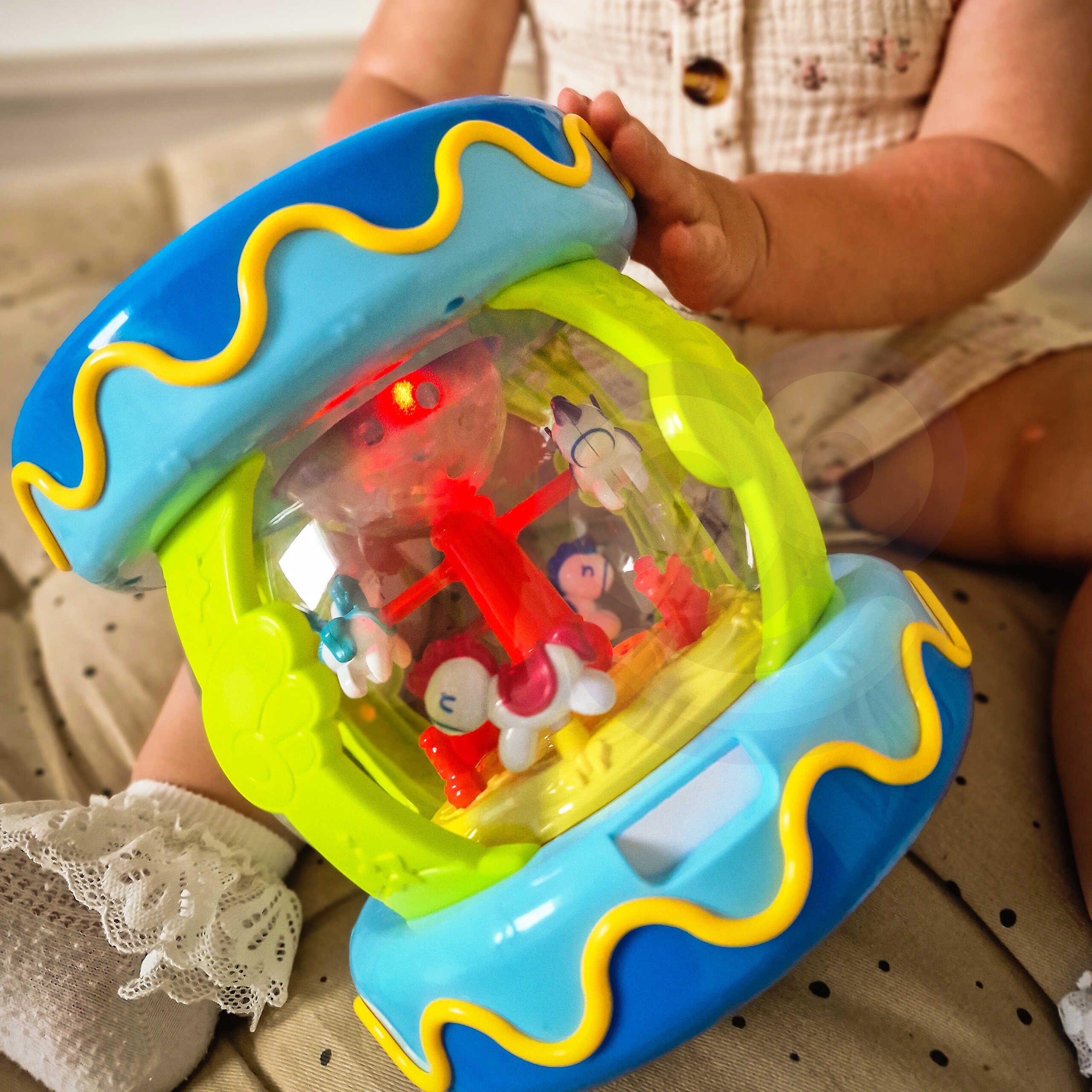 Brändi WOOPIE Musical Drum Music Box on mänguasi, mida iga laps vajab. Mänguasi on mõeldud peamiselt meelte arendamiseks ja rahustava abivahendina uinumisel. mänguasi töötab ka muusikakastina, mille sees on keerlevad hobused. Sellel on 11 helinuppu, sealhulgas suur trumm. Meloodiate esitamisel vilguvad tuled. Öösiti toimib mänguasi projektorina – tuled helendavad ja jäljendavad tähti. Mänguasi arendab kõrgelt lapse meeli ja hoiab lapsel pikka aega keskendunud. Omadused: – mänguasi alates 18. elukuust – 3 ühes – trumm, muusikakast, projektor – 11 funktsiooni/helinuppu – silinder/rullik roomama õppimiseks – helifunktsioonid – valgusfunktsioonid – vajalik patarei: 3x 1,5V “AAA” (ei kuulu komplekti) 11 nuppude helifunktsiooni – laste trummimuusika – loomaheli lülitus
