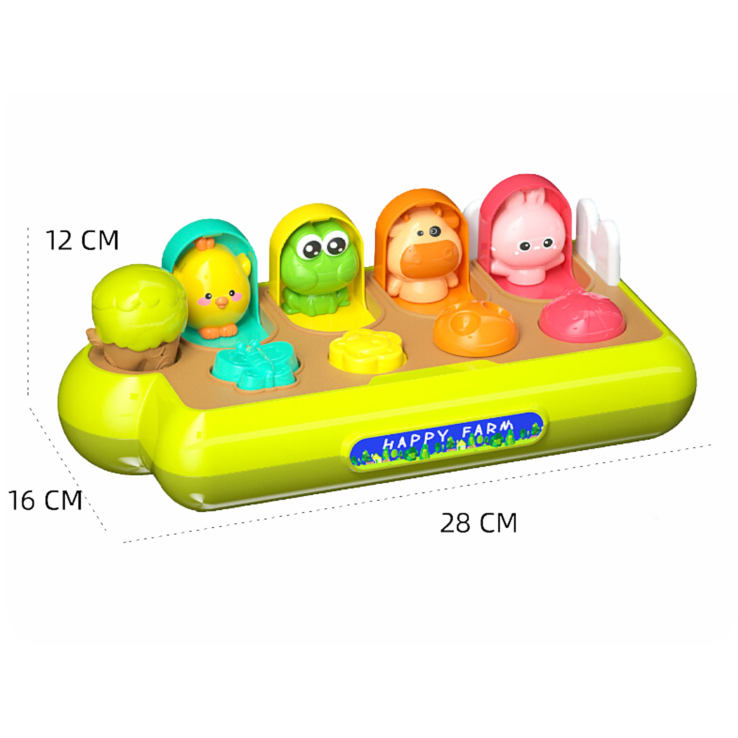 Brändi WOOPIE hüpikloomad on kahtlemata õppimise ja lõbususe kombinatsioon väikestele avastajatele. Kui lüliti, nupp või nupud on aktiveeritud, hüppab lemmikloom välja! Interaktiivne hüpikmänguasi on hästi valmistatud, absoluutselt vastupidav ja seda pole kerge kahjustada ning see sisaldab puukujulist vilet, mida saab tahvlile kinnitada. See on suurepärane kingitus erinevateks puhkudeks, mis mitte ainult ei paku rõõmu, vaid aitab arendada motoorseid oskusi ning mõista põhjuse ja tagajärje seoseid. JUHUSLIKULT SAADETUD LOOMADE VÄRVIVERSIOONID Vastava nupu abil hüppavad välja 5 loomafiguuri. Laps avastab põhjuse ja tagajärje jada, miks antud kujund välja hüppas. liblika külili vajutamine paneb konna välja hüppama, lille pööramine paneb lille välja hüppama, seeni edasi liigutades hüppab kana välja, lepatriinu vajutamine paneb jänku välja hüppama Omadused: Mänguasi alates 18. elukuust Interaktiivne hüpikmehhanismiga (sõidukid hüppavad välja pärast lülitamist/vajutamist) Sisaldab erinevaid juhtelemente: lüliti. Hästi valmistatud, kindel ja vastupidav Mänguasi arendab: motoorseid oskusi põhjuse ja tagajärje seoste mõistmist Sensoorset arengut Kognitiivset arengut