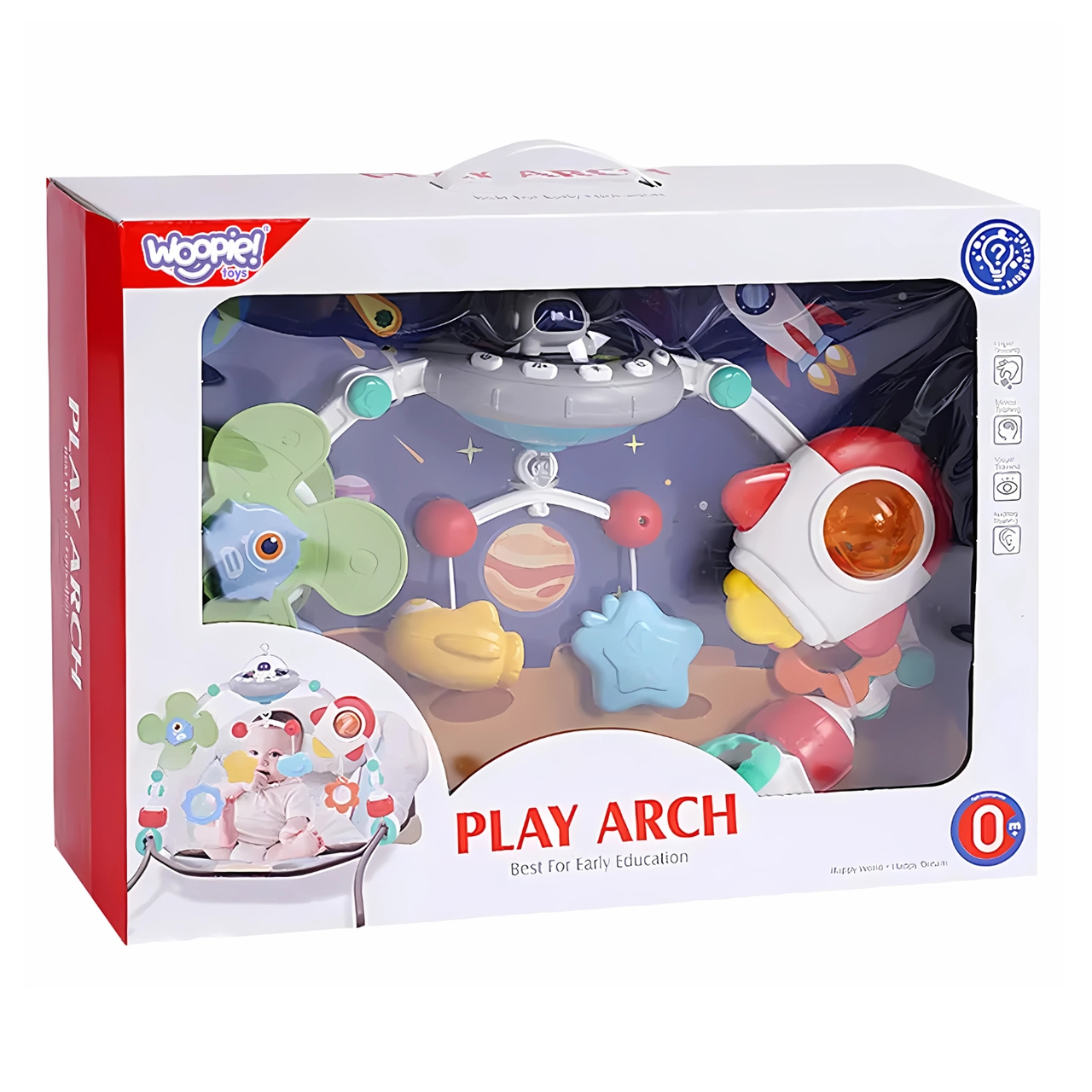 WOOPIE BABY sarja WOOPIE Toy Bow Bar on universaalne mänguasi, mis lisab võlu ja meelelahutust igale vankrile, turvahällile või voodile. See on äärmiselt paindlik, nii et seda saab hõlpsasti kinnitada peaaegu kõikjal. Peapaelal on erinevad mänguasjad. Mänguasi tõmbab tähelepanu ning hoiab lapse kärus või turvatoolis olles aktiivse ja uudishimulikuna. Interaktiivne peavõru mängib kauneid hällilaule ja valgustab vahelduvate värviliste tuledega. Mõeldud arendama kogu keha liigutusi ja mõjutama meeli. Toote omadused: – lastele alates esimesest elukuust – kinnitatav käru, turvahälli või võrevoodi külge, – mängib erinevaid reguleeritava helitugevusega hällilaule, – särab värviliste vahelduvate tuledega, – omab erinevaid mänguasju, mis reageerivad lapse puudutusele, – mänguasju saab kasutada ka hammasratastena. – valmistatud lapsesõbralikest materjalidest. – kiire ja lihtne paigaldus. – 3 mänguasja on kinnitatud peapaelale, ülejäänud, sealhulgas karussell, on riputatud – vajab 3xAAA patareid (ei kuulu komplekti) Mänguasi arendab: – sensoorset arengut – motoorset arengut – silma-käe koordinatsiooni – põhjuse ja tagajärje põhimõtete mõistmist