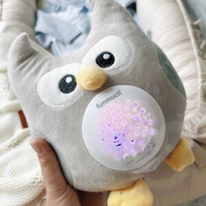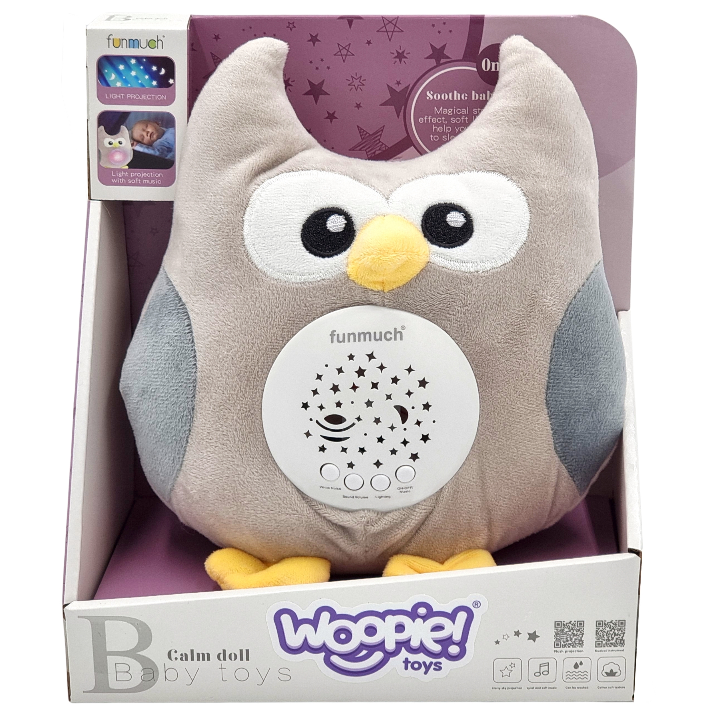 Brändi Woopie Plush Owl Sleeper on teie beebi unekaslane. Maskott sobib suurepäraselt beebidele ja suurematele lastele, kellele ei meeldi ise uinuda. Öökull on ideaalne sõber heade unenägude jaoks ja päästja kapis olevate koletiste eest. Kaisulisel on 4 funktsiooni. Selle sisse lülitades kuuleme meeldivaid meloodiaid ja kõht hakkab erinevatest värvidest virvendama. Pärast nupu “Valge nina” vajutamist kuulete erinevaid helisid ja südamelööke. Mänguasja saab seadistada 3 helitugevuse tasemele, et kohandada heli beebi eelistustega ja tagada, et ta ei ärkaks une ajal. Mänguasi sobib beebidele, seega on täidetud pehme vatiga. Lisaks saab plüüsist mänguasja ohutult ja lihtsalt puhastada, eemaldades mehhanismi ja lihtsalt uuesti kokku pannes. Tänu sellele saab vanem laps kasutada mänguasja maskotina ilma mehhanismita. Iga laps armub sellesse öökulli! Omadused: – beebidele mõeldud mänguasi, – sobib suurepäraselt plüüsiks uinumiseks, – on valmistatud õrnast materjalist ja täidetud vatiga, – valgus- ja heliefektid – meloodiad/hällilaulud, mis aitavad uinuda + värvimuutev projektor, – magaja mängib pidevalt hällilaulu umbes 40 minutit. – 3 helitugevuse taset, – sees olev mehhanism on lahti võetav plüüsi pesemiseks, – vajalikud patareid: 3 x AAA (ei kuulu komplekti). Mänguasi arendab: – meeli, – uudishimu ja avastamist, – keskendumist.