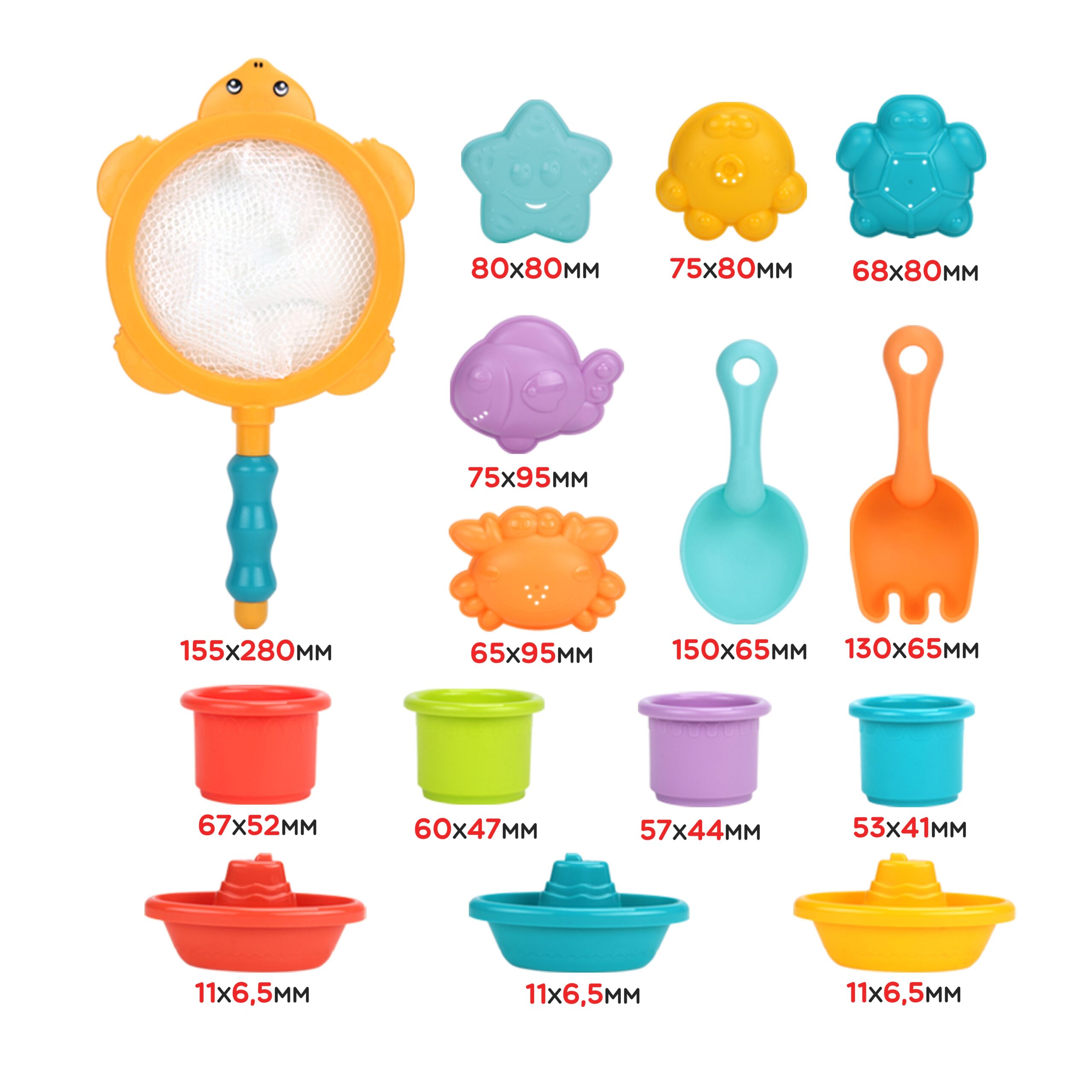 Brändi WOOPIE veemänguasjade komplekt on suurepärane täiendus teie lapse vannile. Komplekti saab kasutada nii supledes kui ka liivas mängides. Komplekti kuulub: kalavõrk; 3 paati; 4 kokkupandavat tassi; 5 ülevooluvormi/topsi olenevalt sellest, kas mäng on vees või liivas ja 2 aeru. Laps saab vannis mängides läbi viia mitmeid erinevaid katseid! Komplekt ei muuda mitte ainult suplemise või liivakastis mängimise ajal teie aega meeldivamaks, vaid arendab ka teie lapse käelisi oskusi ja teadlikkust ümbritsevast maailmast ning eelkõige võimaldab see teie lapsel pesemise ajal keskenduda ja midagi ette võtta. Omadused: – mänguasi alates 12. elukuust, – vanni- ja liivakastikomplekt, – arendab käelisi oskusi ja teadlikkust ümbritsevast maailmast, – kõrgeima kvaliteediga töötlus – viimistletud detailid. Komplekti kuulub: – kalavõrk, – 3 paati, – 4 tassi, – 5 vormi/ülevoolutopsi, – 2 spaatlit. Woopie on üks juhtivaid plastist mänguasjade tootjaid Euroopas. Woopie tooteid müüakse edukalt koduturul ja kogu Euroopas. Woopie kaubamärgi mänguasjadel on üks eesmärk – teha lastele rõõmu! Rikkalikust sortimendist leiab Woopie muuhulgas karnevalikostüüme ja kostüüme lastele, aga ka rippkiikesid, vahtplastist mänguasju, erinevat tüüpi aiamänguasju ja palju muud! Laske end lõbusalt kaasa haarata – laske end Woopil kaasa haarata!
