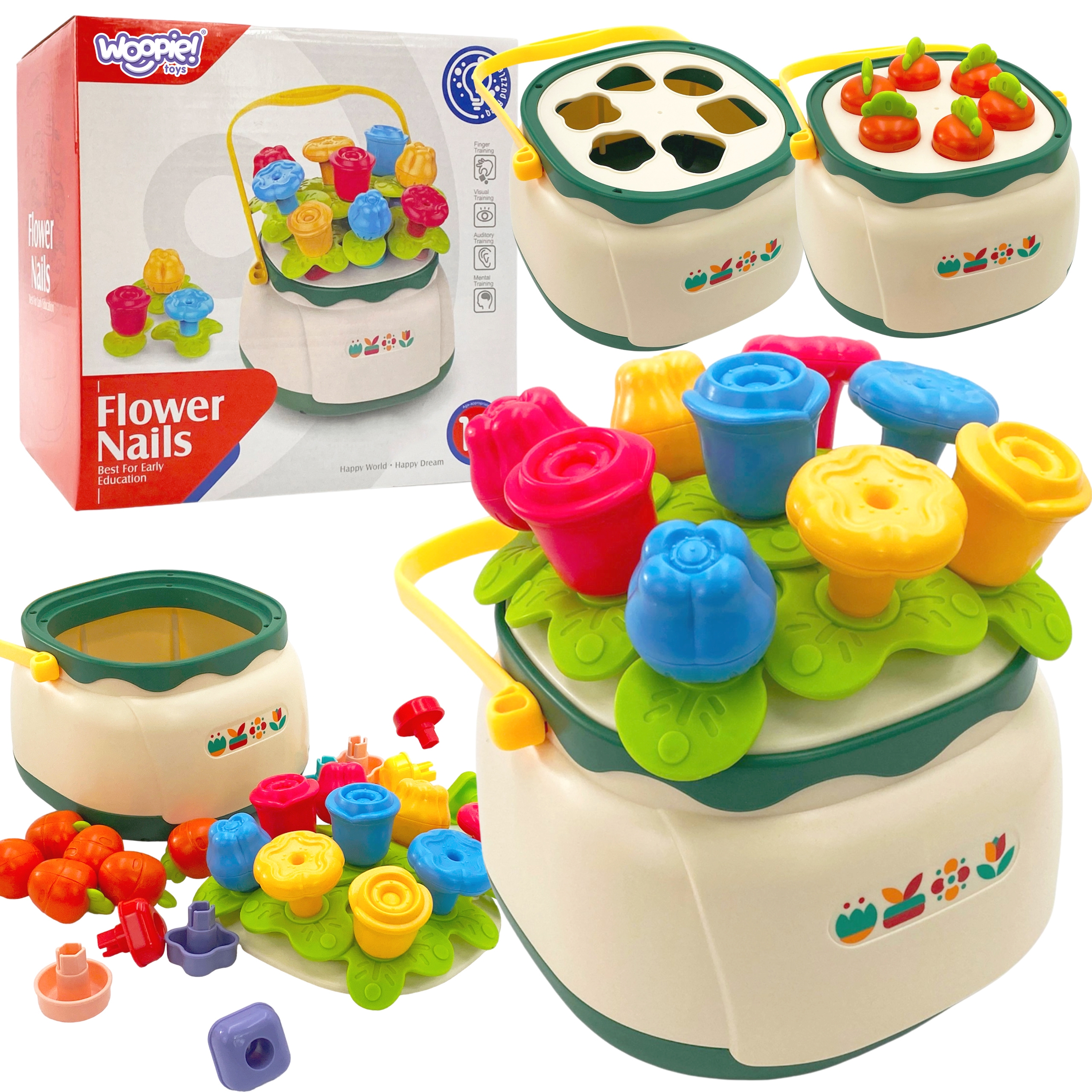 Brändi Woopie lillekorv pakub erinevaid lõbusaid ja õppimisvõimalusi, ühendades endas sortimise, loovuse, matemaatika ja käeliste oskuste elemendid. Mänguasi, mis on suunatud lapse igakülgsele arengule. Komplekti kuulub: – Käepidemega plastikkorv, millele asetatakse sorteerimispadjad, ühtlasi on see praktiline ja esteetiline anum kõikide komplekti elementide hoiustamiseks. – Lilleseade ülekate, milles laps saab erinevaid lilleosi kombineerides luua kauneid kimpe. See harjutus arendab käelisi oskusi ja loovust ise lilleseadeid kokku pannes ja luues – Kujude sorteerimise ülekate on erinevate kujundite ja värvide äratundmise ja sobitamise mäng, mis aitab arendada kognitiivseid oskusi. – Ülekate porgandiaia loomiseks. Porgandeid sättides loob laps oma aiakese. See harjutus arendab sorteerimis- ja loendamisoskust ning julgustab ka aiast rääkima. – Elementide keermestamiseks mõeldud nöör võimaldab lapsel keermestada komplekti erinevaid osi. See harjutus arendab käelisi oskusi, käe-silma koordinatsiooni ja keskendumisvõimet. Tunnused: – mänguasi lastele alates 18. elukuust – plastkorv sorteerimiseks ja ladustamiseks – 3 sorteerimiskinnitust – 9 õienuppu ja 9 lehte kimpude kokkupanemiseks – 6 porgandit oma aia korrastamiseks – nöör elementide keermestamiseks Mänguasi arendab: – loovust – käelisi oskusi – sorteerimis- ja silmaringi koordinatsiooni