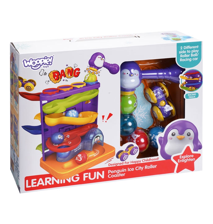 3-in-1 Ball Track mullirada haamri liuguriga mänguautodele kaubamärgilt WOOPIE on multifunktsionaalne mänguasi, mis arendab ja pakub lapsele huvi. Sellel on 3 põhifunktsiooni. Varajane arendusmänguasi: torkake 4 palli läbi aukude, et näha, kuhu need lähevad! Vaadake, kuidas nad vihmaveerennist alla veerevad. Haamer on kerge ja väike, mistõttu on seda lihtne käes hoida. Väikesed lapsed saavad hõlpsasti kaasa lüüa, asetades läikivad pallid piludesse, lüües neid haamriga ja vaadates, kuidas nad mööda kaldteid üles lendavad. Komplekti kuulub ka mänguauto. Teisest küljest on mänguasjal liugused ja see on koht, kuhu me auto asetame ja vaatame, kuidas see alla libiseb. Komplektis on erinevad pallid, millega saab õpetada nt. lugemine ja tähestik. Parandab käe-silma koordinatsiooni ja peenmotoorikat mängu ja kujutlusvõime kaudu. Omadused: – alates 3 eluaastast, – 3 in 1 – pallirada, haamer, liumägi autodele, – on 2 seinaga, – on pehme ja kerge vasaraga, – on pallid õppimiseks, – õppimine läbi mängu. Komplekti kuulub: – 1× kahepoolne rada, – 4× veerev kuul, – 1× väike auto, – 1× haamer.