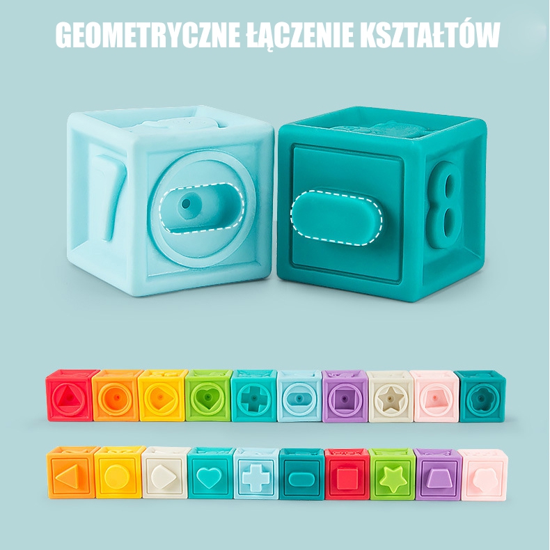 WOOPIE Sensory Blocks Puzzle pakub huvi igale väikelapsele. Tänu oma huvitavatele vormidele, värvidele ja võimele pigistades hääli teha, stimuleerivad need suurepäraselt lapse nägemis-kuulmiskoordinatsiooni, motoorsete oskuste ja kompimismeele arengut. Klokkidel on kumerad kujundid numbrite ja matemaatiliste märkidega, tekstuurid/mustrid, loomakujutised, geomeetrilised kujundid ja puuviljad. Lisaks saab plokke omavahel ühendada. Klotsid on katsudes pehmed ja meeldivad ning pigistades teevad hääli. Tänu oma struktuurile sobivad need suurepäraselt ka hambuliseks. Tänu lihtsate matemaatiliste toimingute tegemise oskusele on klotsidel ka hariv väärtus, näiteks loendamise õppimine. Lisaks saab laps tänu loomapiltidele tutvuda loodusmaailmaga. Kaunites vaoshoitud värvides toode, mis on mõeldud lastele alates 6. elukuust. Omadused: – toode, mis on mõeldud lastele alates 6. elukuust, – 20 elemendist koosnevad sensoorsed klotsid, – kvaliteetsest materjalist, – kumerad kujundid numbrite ja matemaatiliste märkidega, tekstuurid/mustrid, loomakujutised, geomeetrilised kujundid ja viljad, – omavahel ühendatavad klotsid, – arendab erinevaid plokke, – arendab lapse puutetundlikkust, koordinatsiooni, nägemis- ja tekstuuri lapse meeled, – pehmed ja katsudes meeldivad – kriuksuvad elemendid – pigistades teeb hääli, – õpib lugema – omama numbreid ja matemaatilisi märke, – komplekti kuulub mugav kott klotside hoidmiseks, – pakitud aknaga pappkarpi – sobib suurepäraselt kingituseks! – mõõtmed: 1 plokk: u. 6 x 5,5 x 5 cm. Mänguasi arendab: – nägemis-kuulmiskoordinatsiooni, – motoorseid oskusi, – kompimismeelt, – keskendumist, – loogilise mõtlemise õppimist, – õpetab koostööd ja jagamisoskust.