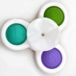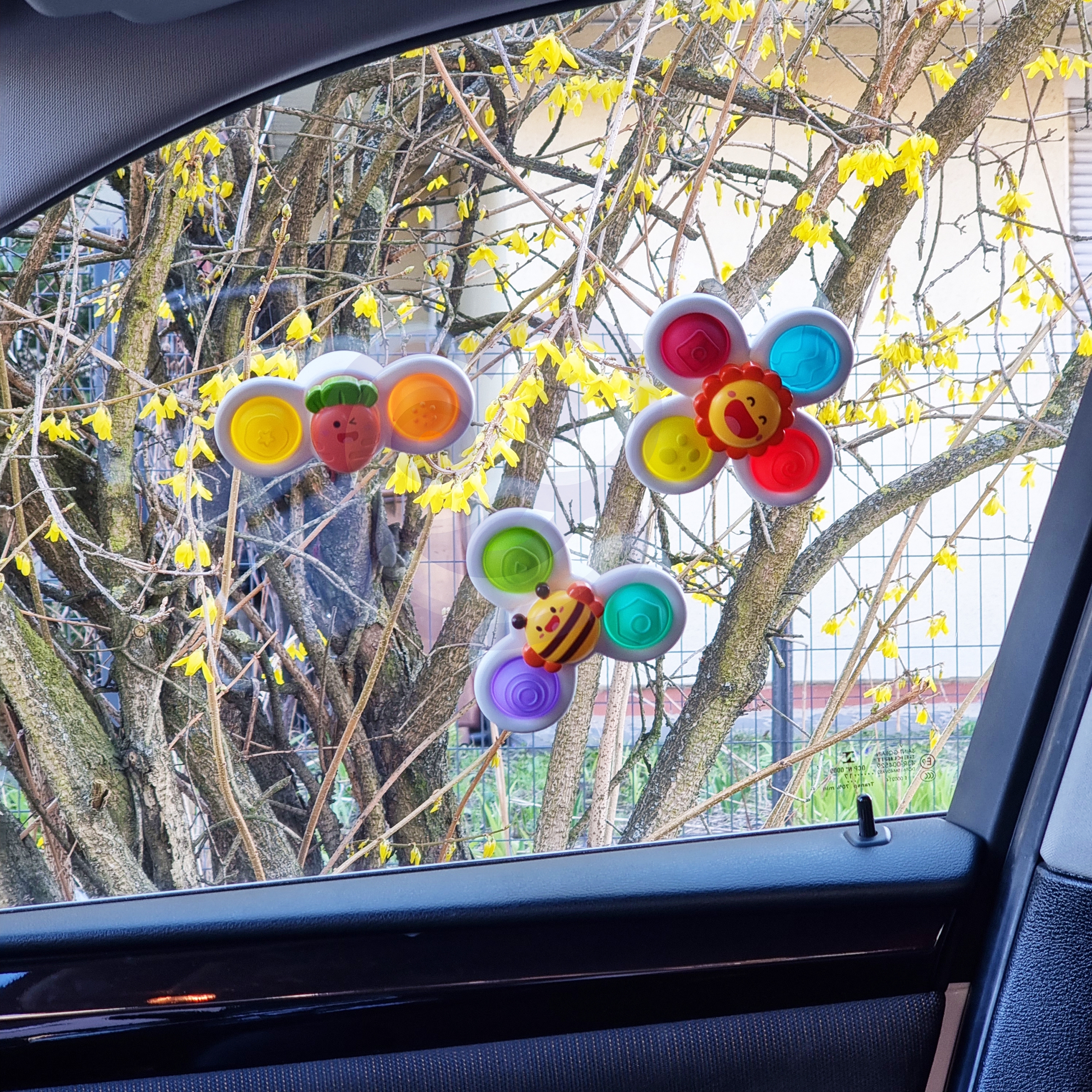 Woopie Baby sensoorne vurr kolm-ühes on ainulaadne mänguasi, mida saab kasutada kodus, vannis ja reisil olles. Komplektis on kolm motiivi (porgand, mesilane, päike) kummist iminappadega, mida saab kinnitada vanni, klaasi või tööpinna külge. Tänu veekindlale disainile saab mänguasja vannis ohutult kasutada. Paindlikud laagrid tagavad pika pöörlemisaja ning kummist presselemendid ergutavad lapse puute- ja meeli. Omadused: – Mänguasi, mis on mõeldud lastele alates 18. elukuust – Komplektis kolm vurr (porgand, mesilane, päike) – Kummist iminapad – kinnitamiseks pindadele nagu vann, klaas, tööpind – Veekindel konstruktsioon – saab muretult vannis kasutada – Painduvad laagrid tagavad pika pöörlemisaja – porgand, mesilane, päike – Kummist iminapad igale spinnerile – Kummist elemendid vajutamiseks (vurritel) Mänguasi arendab: – peenmotoorikat – treenib sõrmi ja käeoskusi – silma-käe koordinatsiooni – Sensoorset integratsiooni – puudutust, elementidega manipuleerimist – Puute- ja survetunnet – Huvi objektide uurimise ja manipuleerimise vastu
