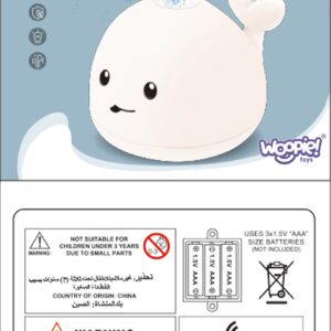 LED Water Spouting Whale kaubamärgilt WOOPIE, mis muudab teie igapäevase vanni unustamatuks loominguliseks seikluseks. Veepinnal hõljuv maagiline vaal helendab värviliste LED-tuledega ja pritsib vett, luues minipurskkaevu, mis pakub veerõõmude ajal palju nalja. See toetab käeliste oskuste arengut, ergutab loovust ja ergutab nägemismeelt. Tänu huvitavale kujule, värvilistele tuledele ja purskkaevule innustab mänguasi vannis mängima ja tõmbab lapse tähelepanu igapäevastelt hooldustoimingutelt kõrvale. Omadused: – Lastele alates 12. elukuust – Funktsioon: vett pritsiv minipurskkaev – LED valgusefekt, 3 värvi: punane, sinine, roheline – Julgustab last vannis käima – Toiteallikas: 3x 1,5v AAA patareid (ei kuulu komplekti) Mänguasi arendab: – Loovust – Käelisi oskusi – Motoorikaid oskusi – Juhusliku taju ja värvivariantide stimuleerimine (hinna valik on 2). 1 tk eest.