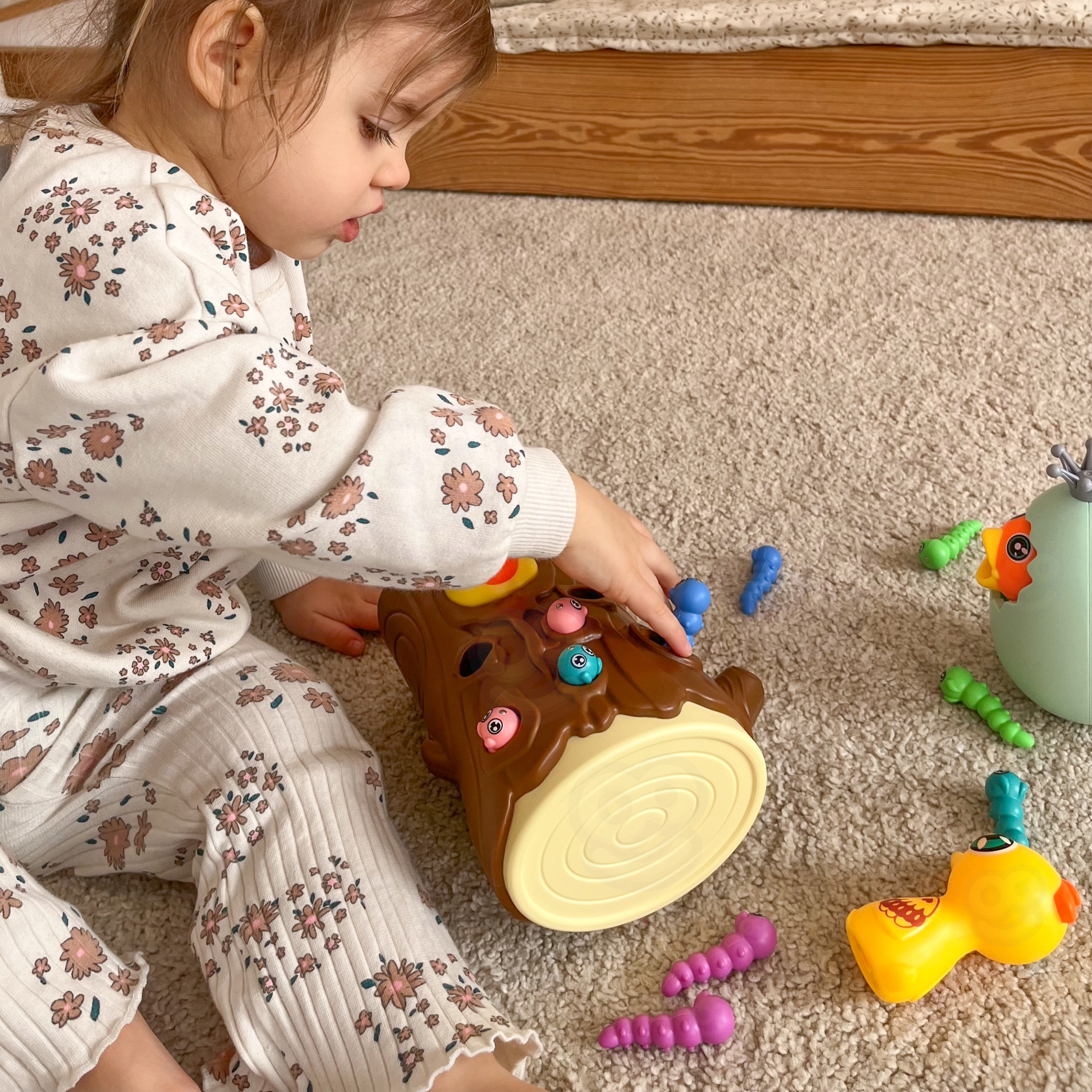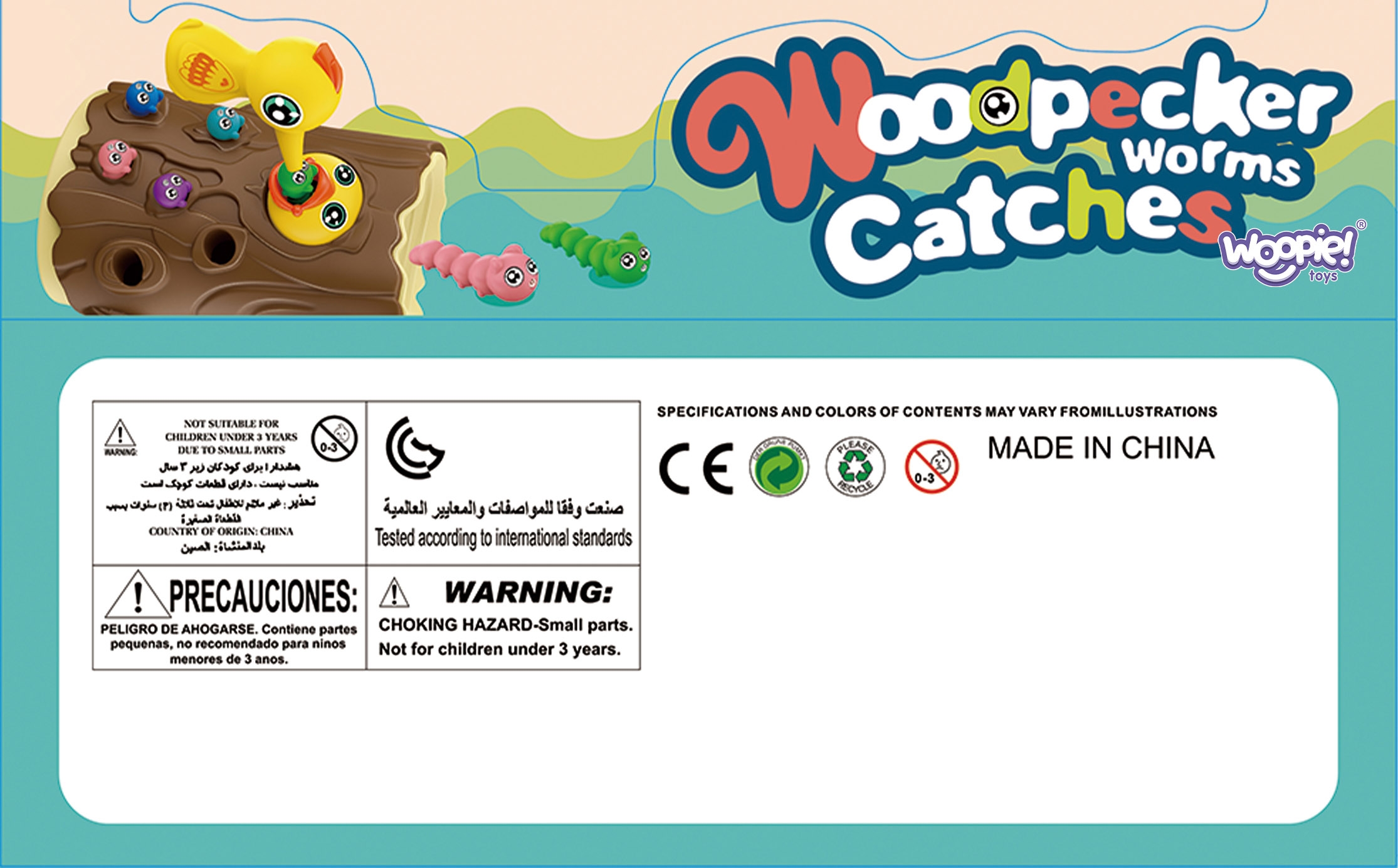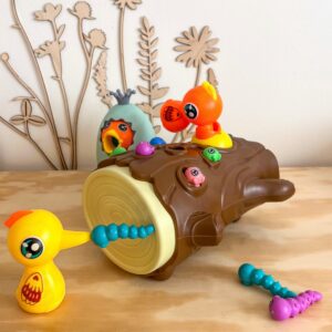 WOOPIE kaubamärgi arkaadmäng “Catch the Worm” on täis emotsionaalset lõbu, mis lähendab lapsi ja vanemaid koos aega veetes. Lihtsad reeglid ja intuitiivne juhtimine muudavad mängus osalemise lihtsaks iga pereliikme jaoks. See ainulaadne mänguasi ühendab õppimise meelelahutusega, motoorsete oskuste arendamise, käe-silma koordinatsiooni ja keskendumisvõime kõige väiksematel. Ainulaadne disain ja multifunktsionaalsus muudavad “Catch the Worm” mängu mitte ainult lõbusaks, vaid ka viisiks kannatlikkuse ja täpsuse harjutamiseks. Omadused: – mänguasi vanuses 3 ja vanemad – 3 ühes – magnetiline arkaadmäng, hoiupõrsas, vank – komplektiga saavad korraga mängida kaks last – õpetab läbi mängu – aitab muu hulgas arendada motoorseid oskusi ja visuaalseid oskusi Mängureeglid: Mäng hõlmab näljase tibu toitmist puutüvesse peidetud ussidega. Beebi kasutab rähni magnetnokkade abil usse “püüda” ja kanda need tibuni. Mäng nõuab täpsust ja keskendumist, tänu millele saavad lapsed harjutada käelisi oskusi ja samal ajal väga lõbusalt aega veeta. Pärast mängu lõppu saab ussid pagasiruumist välja valada ja kõik järgmiseks ringiks valmis. Komplekti kuulub: – 2 magneträhni – Tibu muna, mida saab kasutada ka hoiupõrsas või wangina – Tibu puutüves – 10 värvilist ussikest