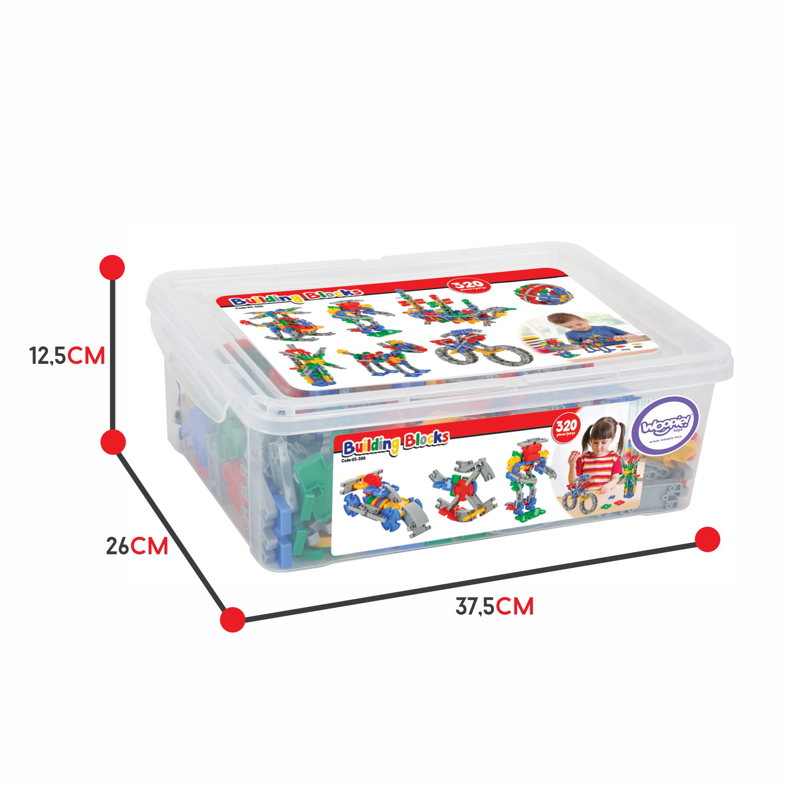 Woopie kaubamärgi ehitusklotside komplektiga võib igast lapsest saada väike insener, arhitekt või kunstnik. See sisaldab kuni 320 värvilist elementi, mis võimaldavad ehitada mitmesuguseid struktuure: alates sõidukitest, loomadest ja robotitest kuni abstraktsete kunstiteosteni välja. Kõik oleneb lapse loovusest! Klotsid on erineva kuju, värvi ja ühendusviisidega, mis annab peaaegu piiramatud loomingulised võimalused. Tänu paindlikele ühendustele saavad lapsed konstrueerida nii stabiilseid staatilisi objekte kui ka liikuvate osadega struktuure. Selle komplektiga mängimine pole mitte ainult lõbus, vaid arendab eelkõige selliseid võtmeoskusi nagu loogiline mõtlemine, planeerimine, keskendumine ja käeline osavus. Komplekt on ka suurepärane vahend koos mängimiseks – nii kodus, lasteaias, koolis kui ka tegevusteraapia ajal. Lapsed õpivad koostööd, suhtlemist ja ideede jagamist. Klotsid on valmistatud turvalisest, vastupidavast materjalist, mis kestab mitu tundi intensiivset mängu. Kõik on paigutatud praktilisse kaanega karpi, mis hõlbustab hoiustamist ja transportimist – ideaalne kingitus! Omadused: – Mänguasi lastele alates 3. eluaastast – Koguni 320 erineva kuju ja värviga elementi – Võimalus luua 2D ja 3D struktuure – Ohutuid materjale – Multifunktsionaalne mäng: iseseisev, rühmas, õpetlik, terapeutiline – Tänu kinnisele karbile on lihtne puhastada ja hoida Mänguasi arendab: – Loovust – Loogilist ja tehnilist mõtlemist – Põhjus-ja EMMAT. – Koostöö ja suhtlemine – Keskendumine, kannatlikkus ja sihikindlus
