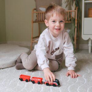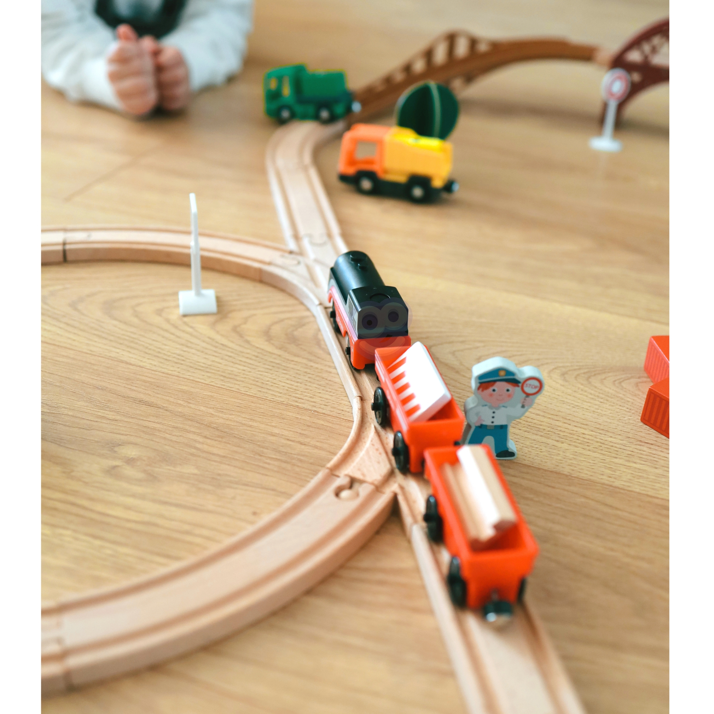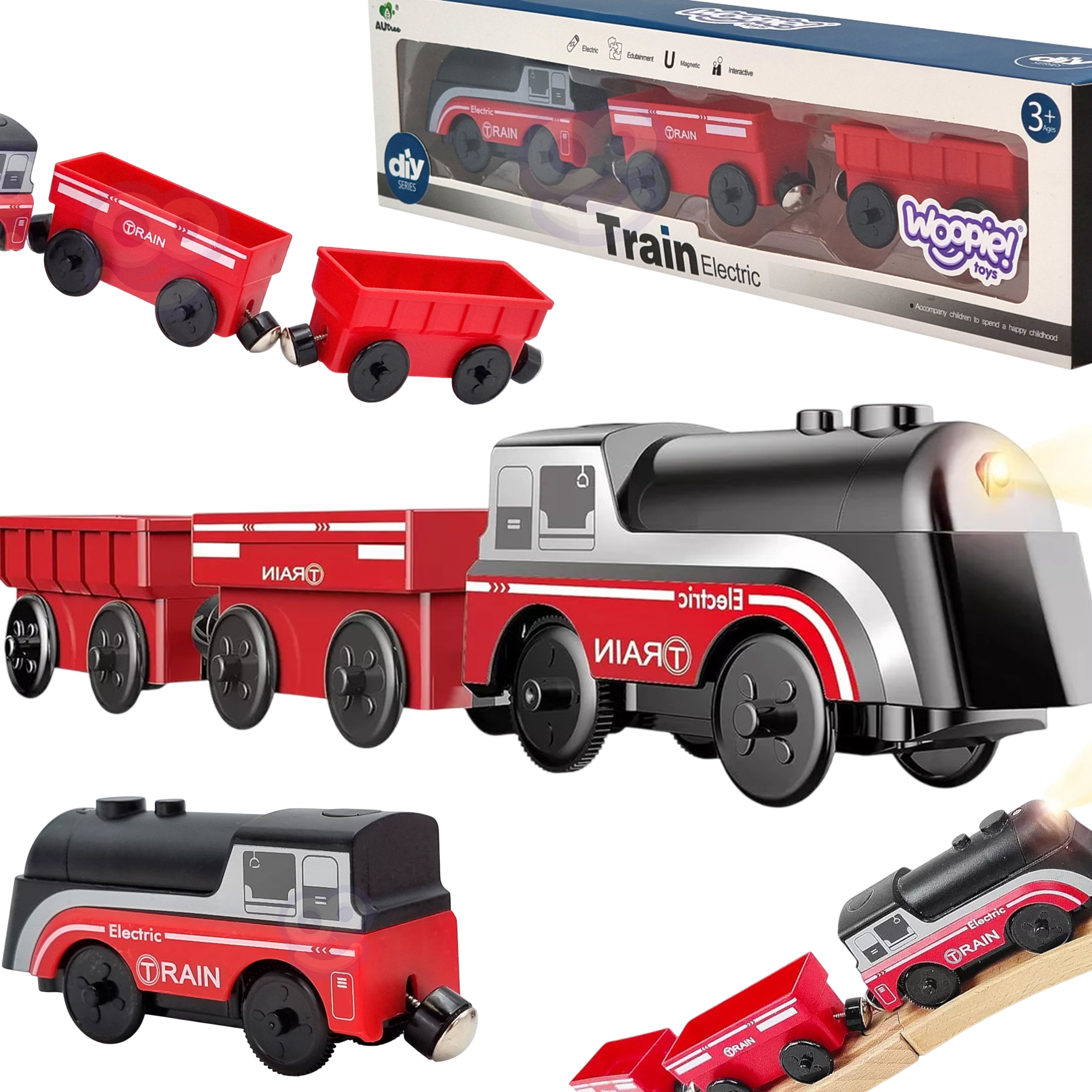 Viige oma laps põnevasse raudteemaailma tänu ainulaadsele Woopie kaubamärgi magnetvankritega elektriveduri komplektile. See värvikas ja dünaamiline rong pole mitte ainult rõõmuallikas, vaid ka mitmekülgne viis lapse arengu toetamiseks. Sõidukid on ühendatud magnetitega, mis muudab mängimise intuitiivseks ja turvaliseks ka kõige pisematele. Komplekt imiteerib suurepäraselt tõelise raudtee realistlikke elemente, mis arendab kujutlusvõimet ja julgustab loovalt aega veetma. Rööbastel liigub vedur iseseisvalt ning selle erksad värvid tõmbavad tähelepanu ja motiveerivad aktiivset mängimist. Tänu lihtsale disainile õpivad lapsed kiiresti seda kasutama ja saavad koostada rongile oma marsruudid. Komplektis on ka kaks vagunit, mis mõlemad on varustatud tahkete magnetpistikutega. Kogu asi on valmistatud vastupidavatest ja ohututest materjalidest, mis garanteerib kauakestva ja turvalise lõbu. Omadused: Mänguasi lastele alates 3. eluaastast Ohutu rong, ideaalne roomavatele lastele Rööbastele sõitev elektrivedur, akutoitel (1x AAA, ei kuulu komplekti) Vagunite magnetühendus tagab turvalise ja kerge lõbu ilma frustratsioonita Kvaliteetne töötlus – tugev plast, vastupidav löökidele ja kriimustustele, teravate servadeta, ilma teravate servadeta – erksad värvid ja trükised vajavad tõelist tööd – erksad värvid ja erksad värvid. täiskasvanute pidevaks abiks Veduri ja vagunite realistlikud detailid rõõmustavad iga väikest juhti Mitmekülgne – ideaalne kasutamiseks põrandal, vaibal või kõval pinnal Rong sobib enamikele tuntud tootjate puidust rööbastele, nt: Brico, IKEA, Little Steps, ELC, Woodyland, Tesco, Carousel, 5 cm laius, Eichhorn jne. sisaldab: Elektrivedur Kaks vagunit Värviline pakend, ideaalne kingituseks Mänguasi arendab: käelisi oskusi ja käe-silma koordinatsiooni loovust ja iseseisvat mõtlemist kujutlusvõimet Toote mõõdud: 30 x 3,5 x 5 (cm)