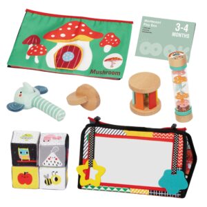 Tutvuge kaubamärgiga WOOPIE GREEN Box XXL Montessori Educational Box 6in1 – ideaalne sensoorne komplekt 3-4 kuu vanusele beebile. Karbis on 6 hoolikalt valitud mänguasja, mis toetavad lapse psühhomotoorset arengut ja ergutavad meeli: nägemist, puudutust ja kuulmist. Iga mänguasi on inspireeritud Montessori meetodist, mis paneb õppimise ja lõbu käima käsikäes. See on suurepärane kingitus, mis annab rõõmu, arengut ja kvaliteetselt veedetud aega. Omadused: – 3-4 kuu vanustele beebidele – Toetab meelte ja motoorsete oskuste arengut – 6 õpetavat mänguasja ühes komplektis – Looduslik materjal: puit – Montessori meetodist inspireeritud õppekomplekt Komplekti kuuluvad: – Pehmed aktiveerivad kuubikud (4 tk) koos kellukestega – Puidust “Montessori” pöörlev ketas haardumiseks ja peegeldusvõimega “M” sensoriga – kuni kõrge kontrastsusega puidust “M” rullumine värviline veeremiseks ja haaramiseks mõeldud kõrist – Pööramisel kukkuvate kuulidega vihmadušikõristi – Pehme elevandikujuline kõristi, mis rahustab ja ergutab meeli Mänguasi arendab: – psühhomotoorseid oskusi – mänguasjade manipuleerimise, veeremise ja püüdmise kaudu – nägemis-, puudutus- ja kuulmismeeleid – tänu koordinatsioonile ja liigutustele – värvidele, tekstuurile ja helidele. Loogiline mõtlemine ja objektide mõistmine – nt. jälgides liikumist pöörlemiskettal – Kannatlikkus ja keskendumine – mäng nõuab keskendumist ja tõmbab tähelepanu