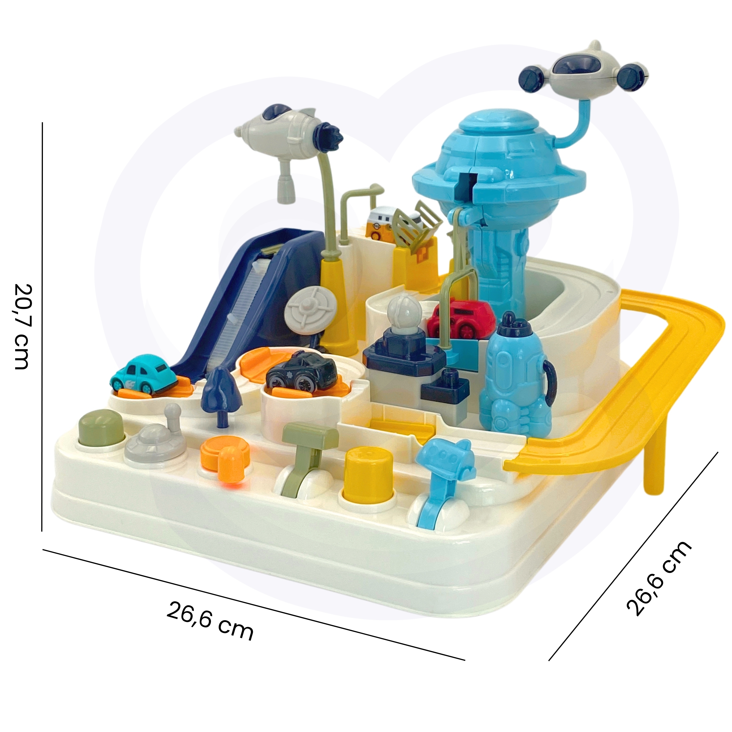 Toote mõõdud: Kokkupandud komplekt – 26 x 26 x 20 (cm) // Autode pikkus – 2 (cm)