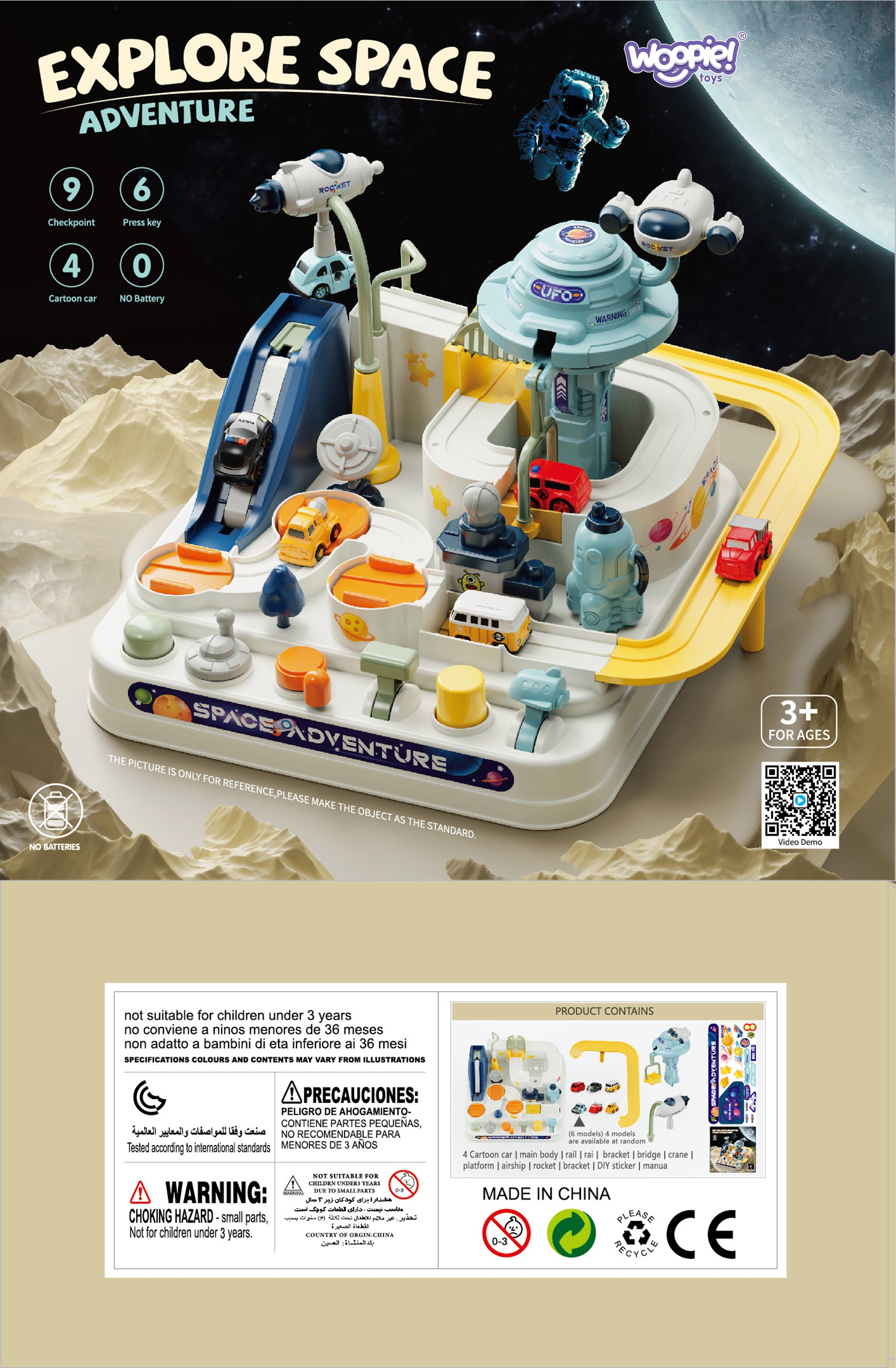 Interaktiivne autorada “Space Adventure” on erakordne mänguasi, mis viib lapsed põnevasse kosmosemaailma. Väikesed maadeavastajad saavad asuda kosmosebaasi uurivate tegelaste rolli, ületades samal ajal autorajal erinevaid takistusi. Mänguasi on varustatud mehaaniliste hoobade, kanderakettide ja interaktiivsete nuppudega, mida laps peab käsitsi juhtima, harjutades samal ajal osavust ja koordinatsiooni. See on ideaalne tööriist kujutlusvõime ja käeliste oskuste arendamiseks, pakkudes samas ka palju nalja. Kosmosealusena kujundatud rajal on palju elemente, mis panevad lapse tundma tõelise kosmoseuurijana. Kosmoselaevad või UFO-sõiduk lisavad komplektile hämmastava atmosfääri, muutes iga mängu mitmekesisemaks. Omadused: – Mänguasi lastele alates 3. eluaastast – Mehaanilised juhtelemendid – Patareisid pole vaja – Sisseehitatud raketiheitja – võimaldab sõidukeid kosmosesse saata – Liikuvad platvormid, luugid ja liftid – lisage lõbususse – Autod liiguvad õhus tänu magnetile – Värviline disain ja tähelepanu detailidele – Täiuslik õpetlik mänguasi, vastupidav konstruktsioon ja ohutu mõtlemine – arendab motoorseid oskusi ja ohutut mõtlemist komplekti kuuluvad: – Interaktiivne kosmosebaas koos roomikute süsteemiga – 4 juhuslikku autot – Mehhanismid: nupud, hoovad, kanderakett, karussellid – Liikuvad infrastruktuuri elemendid – Originaalpakend, sobib suurepäraselt kingituseks Mänguasi arendab: – Käe-silma koordinatsiooni – Käelisi oskusi – Loogilist mõtlemist – Ruumilist kujutlusvõimet – Huvi kosmoseteemade vastu Toote mõõdud: 27 x 2 3 paki mõõdud: 7 x 2 3 cm2. 24 x 13 (cm)