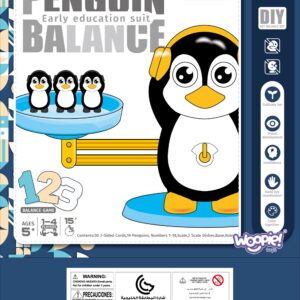 WOOPIE kaubamärgi Penguin Balance Scale arendab teie lapse kognitiivseid oskusi. Asetage skaala ühele küljele number ja teisele küljele vastav arv pingviine. Kui tulemus on õige, on kausid loodis. Komplekti kuuluvad ka kaardid erinevate matemaatiliste näidetega. Saate ise oma lapsele matemaatilisi tegevusi välja mõelda ja tema lõbusust mitmekesistada. Kaal on suurepärane ettekääne lapsega koos mängimiseks, mille käigus laps õpib koostööd ja tõhusat suhtlemist. Mänguasi muudab matemaatika õppimise tõeliseks naudinguks ja julgustab teie last edasi õppima. Mänguasi arendab kognitiivseid oskusi, sealhulgas suurust, käelisi oskusi ja ergutab kujutlusvõimet, julgustades loovat ja ebatavalist mõtlemist. Tunnused: – mänguasi vanuses 5 ja vanemad, – kaardid erinevate matemaatiliste näidetega, – interaktiivne lõbu, – nt. arv “5” kaalub sama palju kui 5 pingviini, – õppimine läbi mängu, – julgustab õppima matemaatikat, – laps seostab numbri suurust ja järjestust suurema kaaluga. Mänguasi arendab: – kognitiivseid oskusi, – käelisi oskusi, – loovust ja kujutlusvõimet. Komplekti kuulub: – 19x pingviine, – 10x numbreid, – 30x kaarte matemaatiliste tehtega.