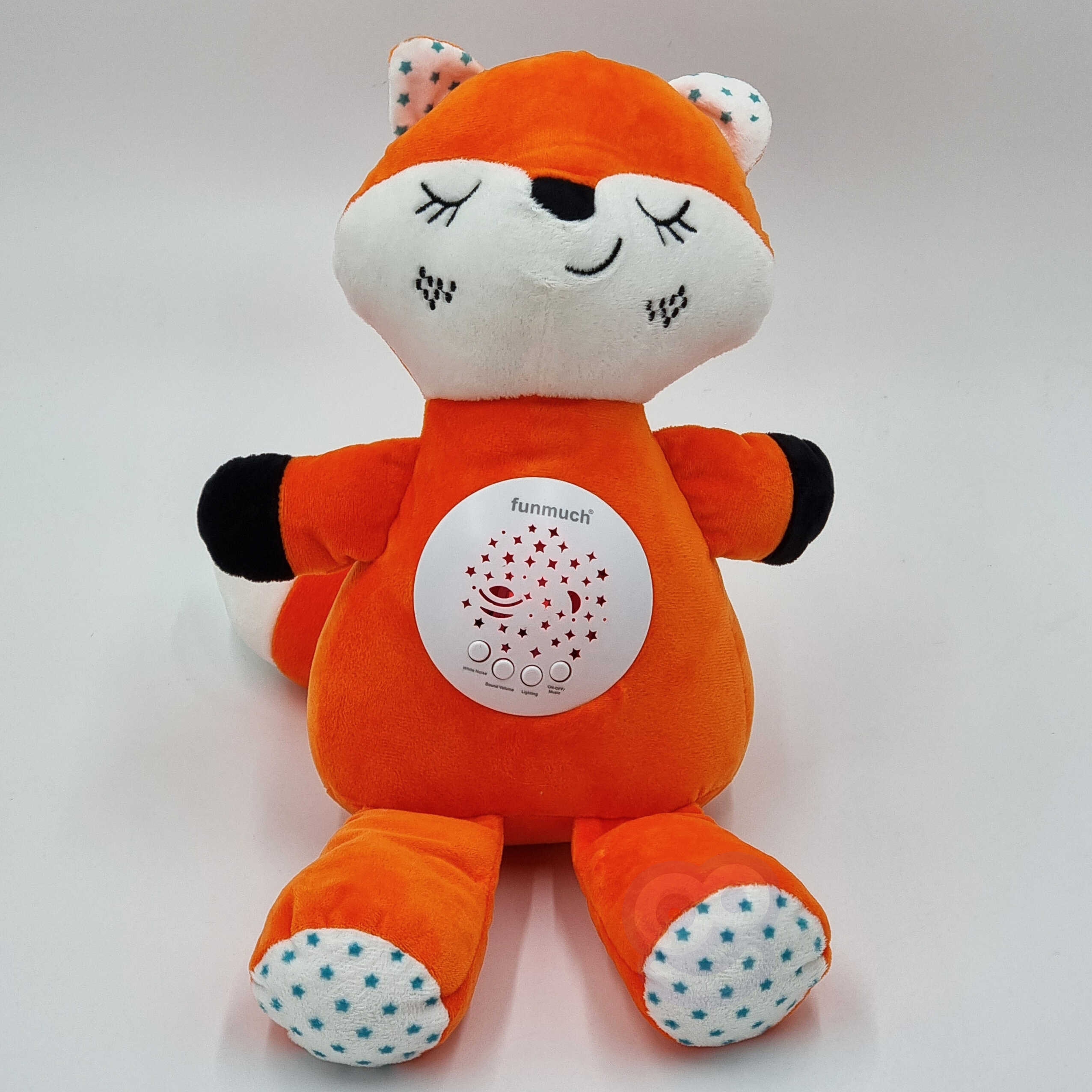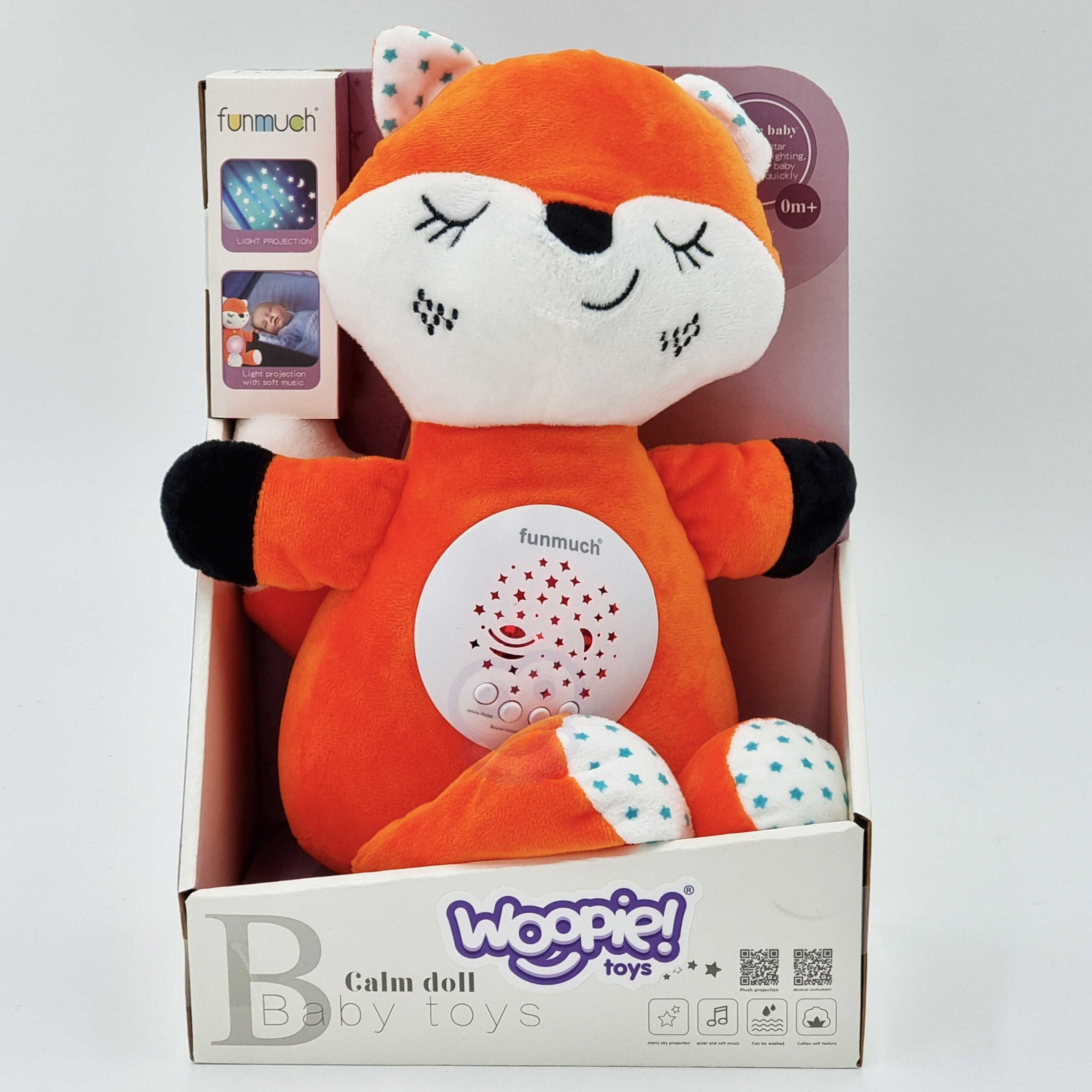 Brändi Woopie Plush Fox Sleeper on teie beebile võluv unekaaslane. Maskott sobib suurepäraselt beebidele ja suurematele lastele, kellele ei meeldi ise uinuda. Rebane on täiuslik sõber heade unenägude jaoks ja päästja kapis olevate koletiste eest. Kaisulisel on 4 funktsiooni. Selle sisse lülitades kuuleme imelisi meloodiaid ja kõht hakkab erinevatest värvidest virvendama. Pärast nupu “Valge nina” vajutamist kuulete erinevaid helisid ja südamelööke. Samuti on mänguasjal tervelt 10 erinevat hällilaulu ja võimalus seadistada 3 helitugevuse taset, et häälestada beebi eelistustele vastavaks ning tagada, et ta une ajal ei ärkaks. Mänguasi sobib beebidele, seega on täidetud pehme vatiga. Lisaks saab plüüsist mänguasja ohutult ja lihtsalt puhastada, eemaldades mehhanismi ja lihtsalt uuesti kokku pannes. See võimaldab vanemal lapsel mänguasja maskotina ilma mehhanismita kasutada. Iga laps armub rebasesse! Omadused: – beebidele mõeldud mänguasi, – sobib suurepäraselt plüüsiks uinumiseks, – õrnast materjalist ja vatiga täidetud, – valgus- ja heliefektid – uinumist aitavad meloodiad/hällilaulud + värvimuutev projektor, – tervelt 10 hällilaulu! – 3 helitugevuse taset, – sees olev mehhanism on lahti võetav plüüsi pesemiseks, – vajalikud patareid: 3 x AAA (ei kuulu komplekti). Mänguasi arendab: – meeli, – uudishimu ja avastamist, – keskendumist.