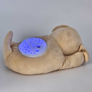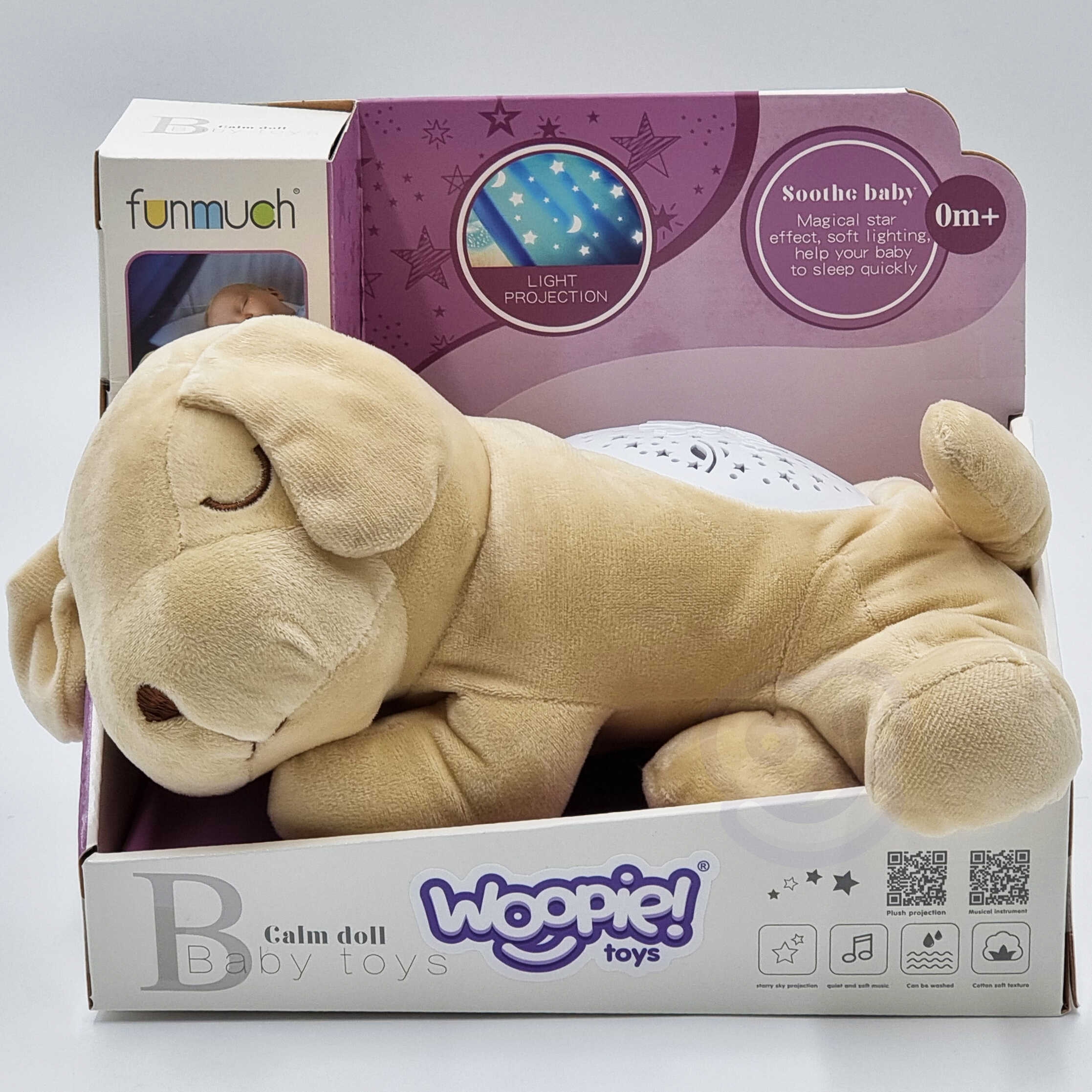 Brändi Woopie Plush Dog Sleeper on teie beebile maagiline unekaaslane. Maskott sobib suurepäraselt beebidele ja suurematele lastele, kellele ei meeldi ise uinuda. Koerast saab heade unenägude valvur ja koletiste tapja kapis. Kaisulisel on projektori funktsioonid, mis loovad une ajal rahuliku aura. Tuled muudavad värvi ja näitavad tähti, kuud ja planeete. Kogu asja saadab lõõgastav muusika, taustaks kostavad loodushääled. Mänguasjal on mitu erinevat hällilaulu. Muusikakast mängib hällilaule pidevalt ligi 20 minutit, nii et beebil on aega magama jääda, ilma et peaks hällilaule uuesti sisse lülitama ja lapse äratamisega riskimata. Kui beebi magama jääb, saab hällilaulud kõhul olevale nupule vajutades välja lülitada. Koeral on kaks helitugevuse taset, seega saab seda ideaalselt lapse vajadustele vastavaks kohandada. Mänguasi sobib beebidele, seega on täidetud pehme vatiga. Lisaks saab plüüsist mänguasja ohutult ja lihtsalt puhastada, eemaldades mehhanismi ja lihtsalt uuesti kokku pannes. Tänu sellele saab vanem laps mänguasja maskotina kasutada ka ilma mehhanismita. Kõik lapsed armastavad koeri! Omadused: – beebidele mõeldud mänguasi, – sobib suurepäraselt magama jäämiseks vajalikuks topis, – on valmistatud õrnast materjalist ja täidetud vatiga, – valgus- ja heliefektid – meloodiad/hällilaulud, mis aitavad uinuda + värvimuutev projektor, – hällilaulude mänguaeg on kuni 20 minutit! – sees olev mehhanism on lahti võetav plüüsi pesemiseks, – vajalikud patareid: 3 x AAA (ei kuulu komplekti). Mänguasi arendab: – meeli, – uudishimu ja avastamist, – keskendumist.