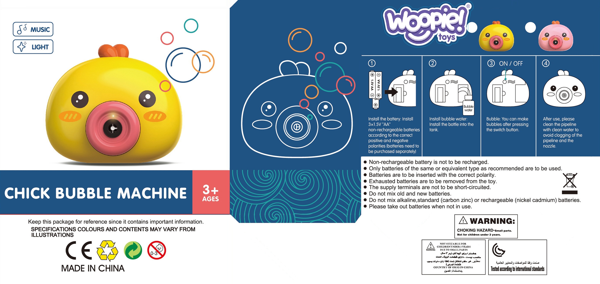 Woopie tibukujuline mullimasin on suurepärane mänguasi lastele. Samal ajal kui kana mullid puhub, mängib ta mõnusat meloodiat, mis teeb melu veelgi nauditavamaks. Vabanenud mullid ei tulistata mitte ainult kõrgel sagedusel, vaid täiendavalt paigaldatud ventilaator puhub neid veelgi kaugemale. Samuti on olemas anum vedeliku jaoks mullide jaoks ja kaelapael mänguasja kaela riputamiseks. Omadused: – mänguasi vanuses 3 eluaastat, – mängib meloodiat, puhub palju mulli ja puhub neid ventilaatoriga, – valgusefekt – mänguasjal on mullide puhumisel vilkuvad tuled, – sellel on sisse- ja väljalülitusnupp mänguasja automaatseks sisse- ja väljalülitamiseks, – pakend sobib kingituseks, – vajalik komplekt sisaldab: 3 vedelikku, AA 1,5 V (ei kuulu komplekti). komplekt). Komplekti kuulub: – Kanamulli masin – Rihm – Anum vedeliku jaoks Mänguasi arendab: – Loovust – Kujutlusvõimet – Iseseisvust