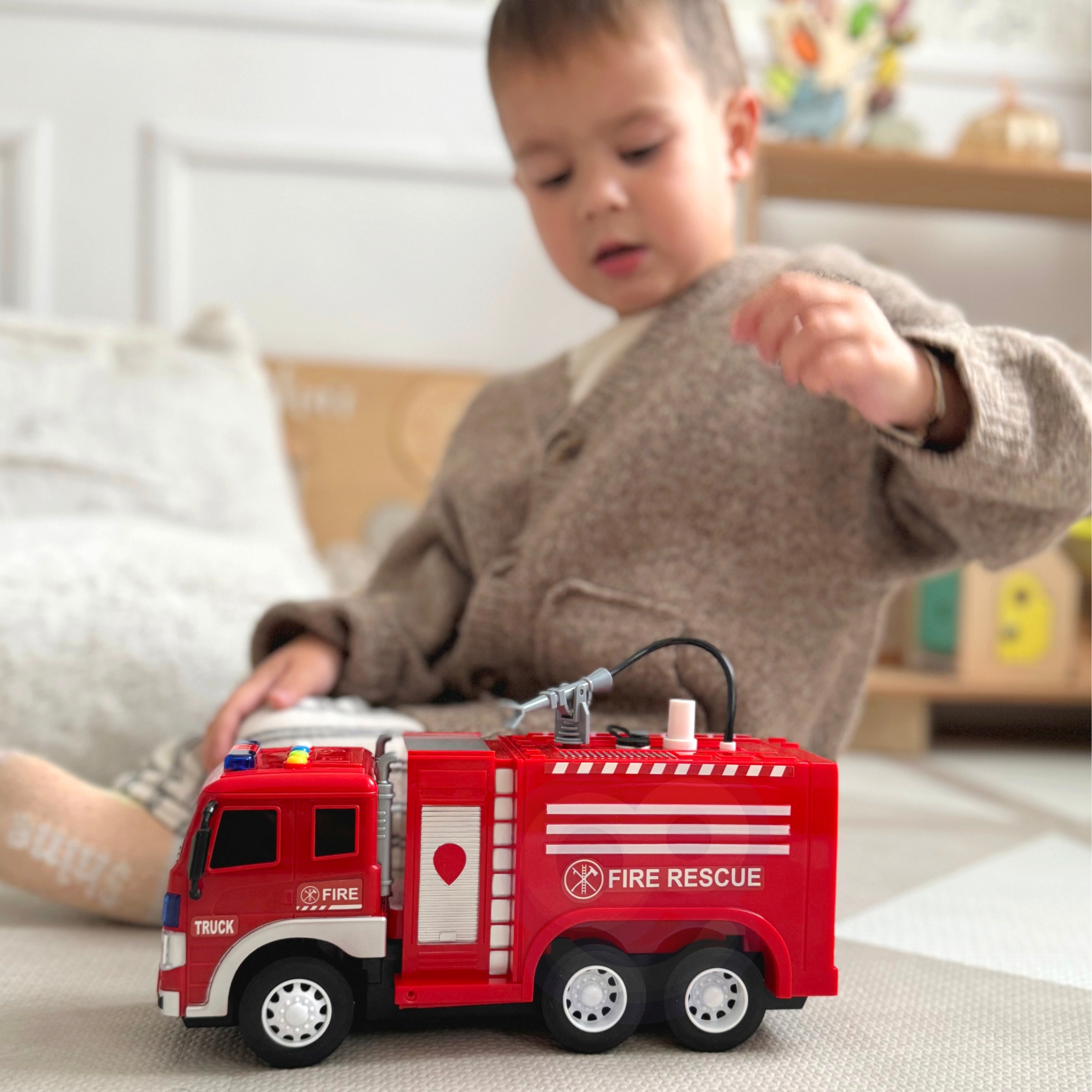 WOOPIE kaubamärgi kaugjuhitav tuletõrjeauto on ideaalne mänguasi igale noorele tuletõrjeauto entusiastile, kes unistab julge kangelase rollist. Ainulaadne disain ja realistlikud funktsioonid muudavad selle mänguasja mängides lõbusaks, arendades samal ajal lapse kujutlusvõimet. See mänguasi pole mitte ainult lõputu lõbu allikas, vaid ka suurepärane õppevahend, mis aitab lastel mõista, kuidas päästeautod töötavad ja mis on tuletõrjuja töö. Tänu veevalamise funktsioonile muutub melu veelgi põnevamaks ja kaasahaaravamaks, mistõttu tunneb iga laps end tõelise tuletõrjujana. Omadused: – Mänguasi lastele alates 3. eluaastast – Realistlikud funktsioonid – varustatud autentsete valgus-, heli- ja veeefektidega, mis imiteerivad sireene, vilkuvaid tulesid ja muid tuletõrjeautodele iseloomulikke helisid – Vee valamisfunktsioon – tänu spetsiaalsele paagile, kuhu saab vett valada, võimaldab auto “tulekahju kustutada” – pump, kui seda vajutada, võimaldab käivitada mängu reaalse voolu, mis käivitab mängu. – R/C kaugjuhtimispuldi funktsioon – Komplekti kuulub kaugjuhtimispult, mis võimaldab sõidukit täielikult juhtida. Laps saab hõlpsasti autoga edasi-tagasi, vasakule ja paremale sõita ning autol olevate nuppude abil helisignaale sisse lülitada. – Mõõtkava 1:14, seega on auto modelleeritud täpselt tuletõrjeauto järgi. – Vastupidavus ja ohutus Mänguasi arendab: – motoorset koordinatsiooni – kujutlusvõimet – käelisi oskusi Toote mõõdud: 27,5 x 10,5 x 13,5 (cm) Pakendi mõõdud: 40,5 x 13 x 21,5 (cm)