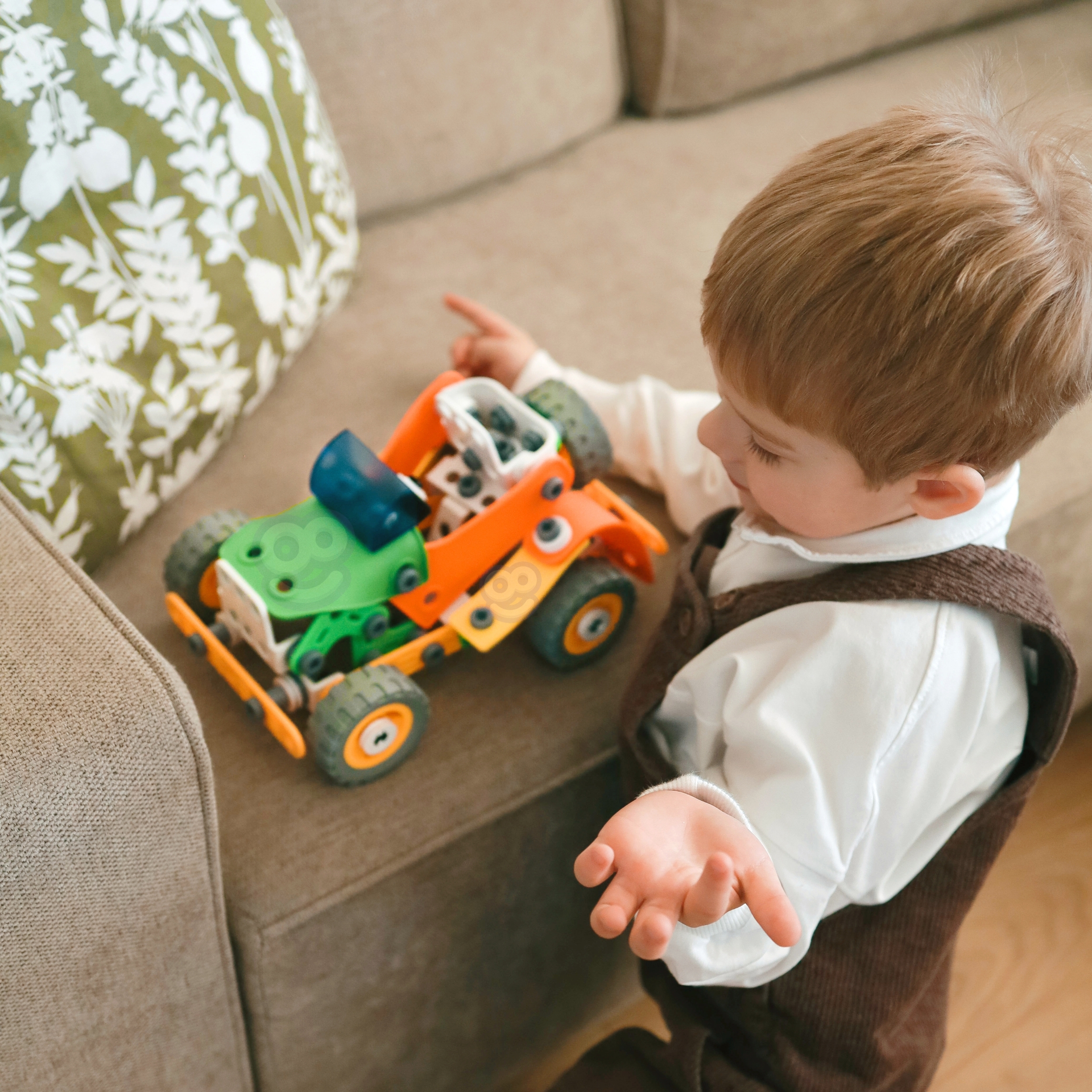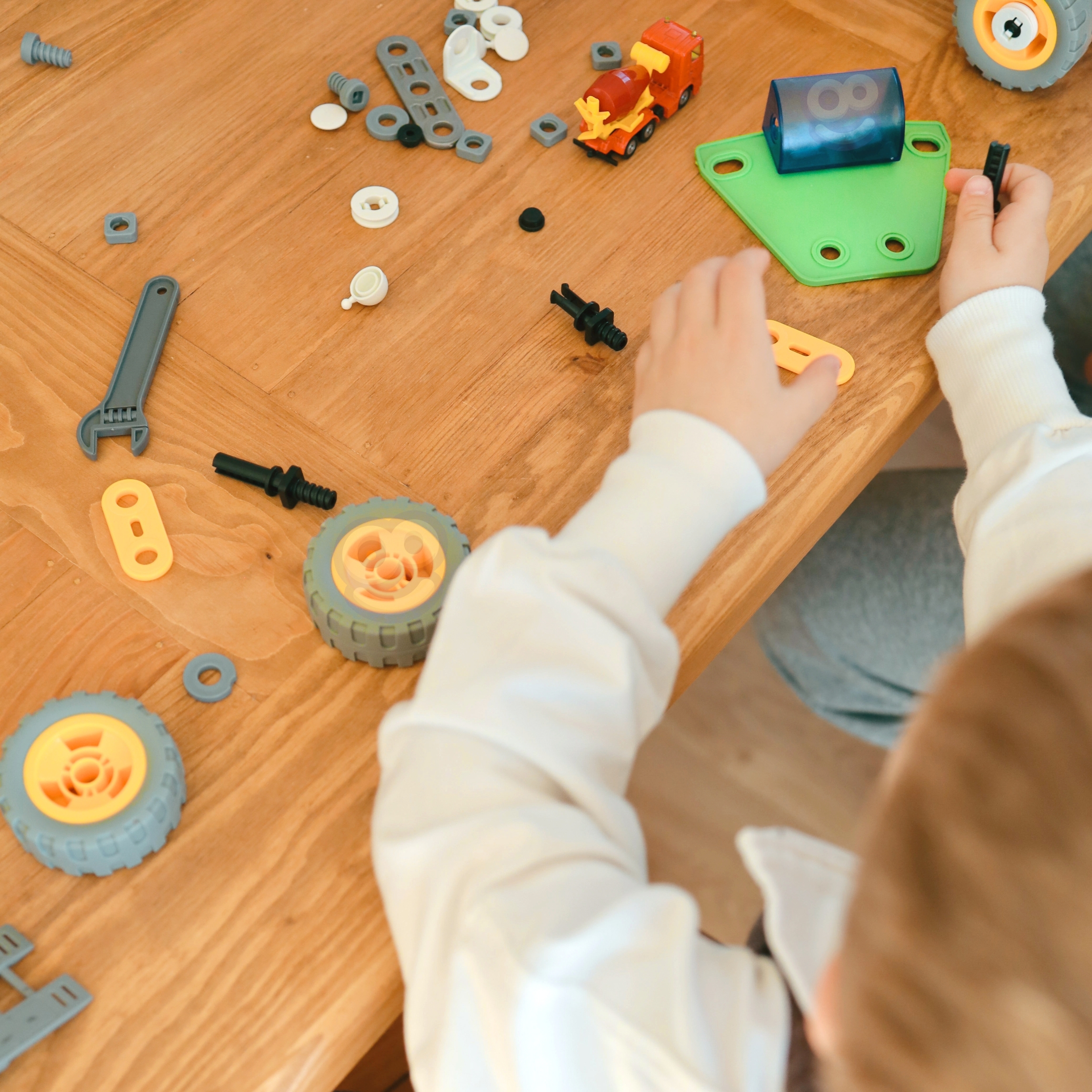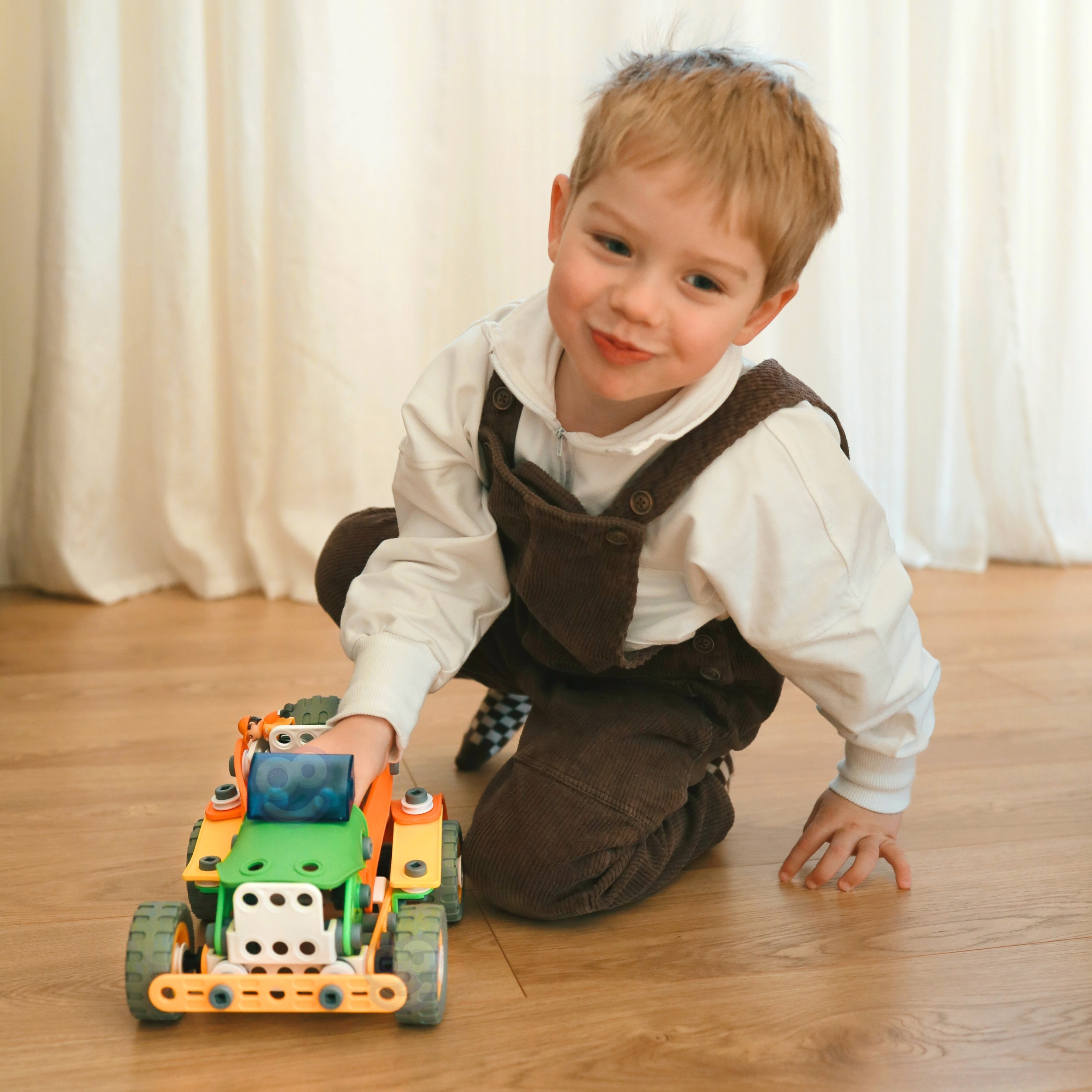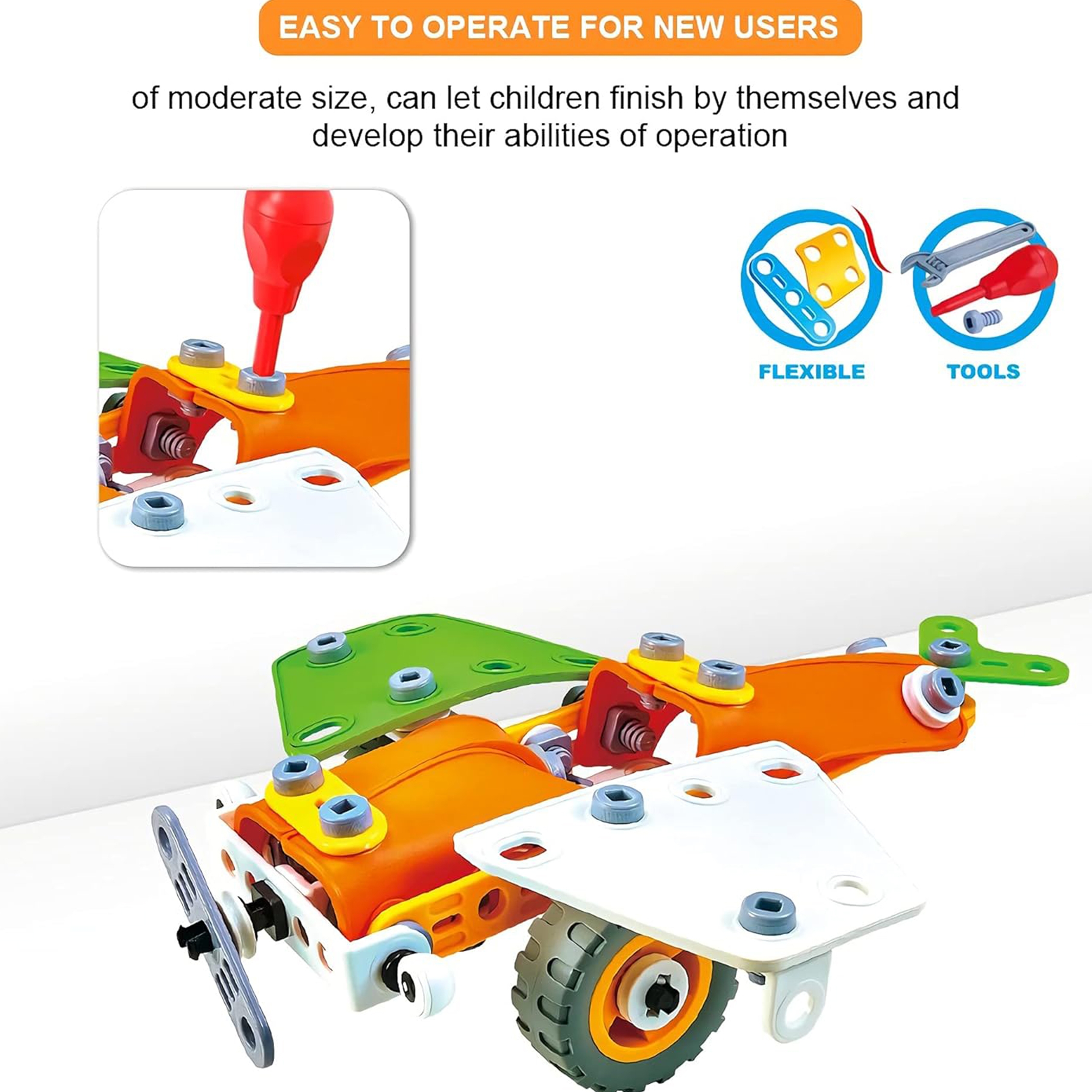 Ehitustelliste komplekt 164 El. 5in1 kaubamärgilt WOOPIE on ideaalne valik igale lapsele, kellele meeldivad ehituslikud väljakutsed ja kes soovib arendada oma käelisi oskusi. Selle komplektiga mängimine võib olla ka suurepärane viis õdede-vendade või sõpradega koos aega veeta, koostööd õppida ja ideid jagada. 164 painduvast elemendist saavad lapsed luua koguni 5 erinevat mudelit sõidukitest ja masinatest: auto, quad, helikopter, lennuk ja robot. Tänu uuenduslikele paindlikele osadele võimaldab komplekt mitte ainult ehitada, vaid ka konstruktsiooni lihtsalt lahti võtta ja kokku panna, mis võimaldab luua palju erinevaid kombinatsioone. Komplekt on ideaalne kingitus lastele, kes hakkavad lõbusalt avastama ehitus-, inseneri- ja mehaanikamaailma! Omadused: – Mänguasi vanusele 5 ja vanematele – 164 painduvat elementi – Võimalus luua liikuvaid osi (nt liikuva kopaga ekskavaator) – Kvaliteetsed materjalid, ohutu lastele – Ideede puudumisel sisaldab komplekt üksikasjalikke juhiseid, mis aitavad sõidukit ehitada – Ideaalne kingitus jõuludeks või sünnipäevaks! – Komplekt võimaldab ehitada 5 erinevat sõidukit: robot, lennuk, quad, džiip ja helikopter. Komplekt arendab: – loovust ja kujutlusvõimet, – loogilist mõtlemist, – käelisi oskusi ning motoorset ja sensoorset koordinatsiooni, sh kujundite valimise ja värvide eristamise oskust, – ruumilist mõtlemist. Komplekti kuuluvad: – Erineva kujuga klotsid, – Kruvikeeraja ja otsmutrivõti, – Mutritega kinnituskruvid, Rattad, – Piltjuhised 5 erineva sõiduki ehitamiseks ehitusplatsilt,