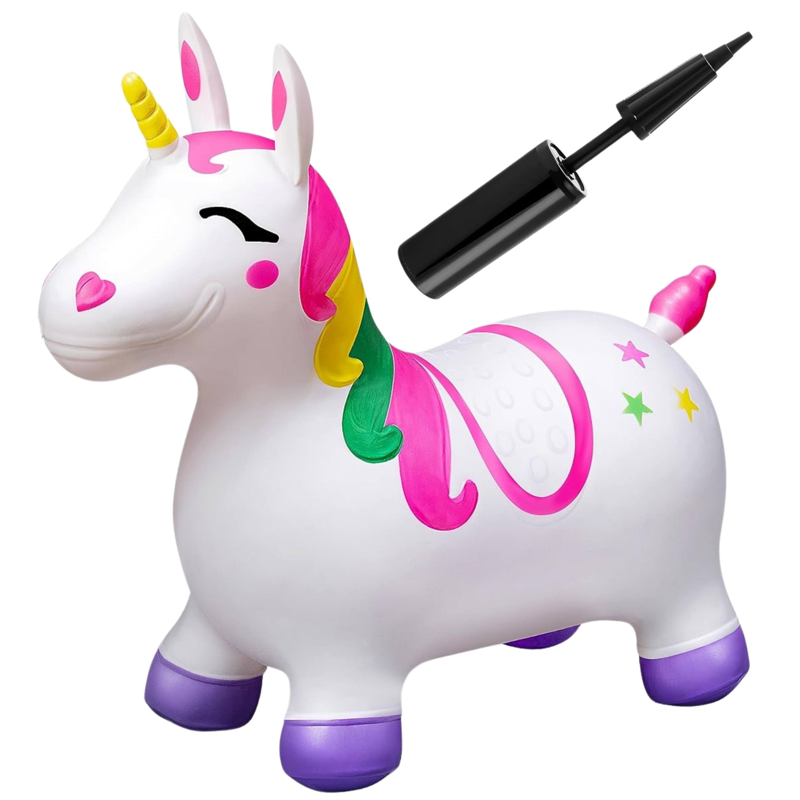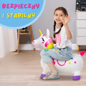 Vii oma laps võluva täispuhutava hüppava ükssarvikuga kaubamärgilt Woopie võluvasse fantaasiamaailma! See imeline mängukaaslane on ideaalne viis ühendada rõõmus hullumeelsus oma pisikese füüsilise arenguga. Valmistatud ohututest, vastupidavatest materjalidest ja varustatud mugavate käepidemetega, pakub see tunde unustamatuid elamusi nii kodus kui väljas. Olge valmis naeratama kõrvast kõrvani ja treenige palju tervislikult! Omadused: – Lastele vanuses 12 m+ – Maksimaalne koormus kuni 45 kg – Rõhk, millega džemprid tuleb täis pumbata, on 0,3-0,4 baari – Unikaalne disain – Valmistatud kvaliteetsest vastupidavast kummist, vastupidav intensiivsele mängule – Lai alus neljal libisemiskindlal jalal tagab stabiilsuse ja ohutuse väikese käepideme jaoks mugavaks hüppamisel – Quick Ern mänguks valmistumiseks Komplekti kuulub: – 1x Täispuhutav Unicorn hüppamiseks – 1x Pump kergeks täispuhumiseks Mänguasi arendab: – Jämemotoorikat – Tasakaalu – Ruumiorienteerumist – Enesekindlust – Loomingut ja kujutlusvõimet – Füüsilist aktiivsust Toote mõõdud: – Pikkus 60 cm – Maksimaalne laius 28 cm Kõrgus (kõrgus 9 cm) 41 cm – Istme kõrgus 26 cm – Istme laius 23 cm