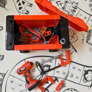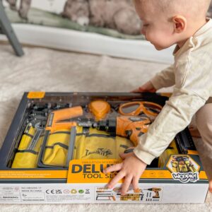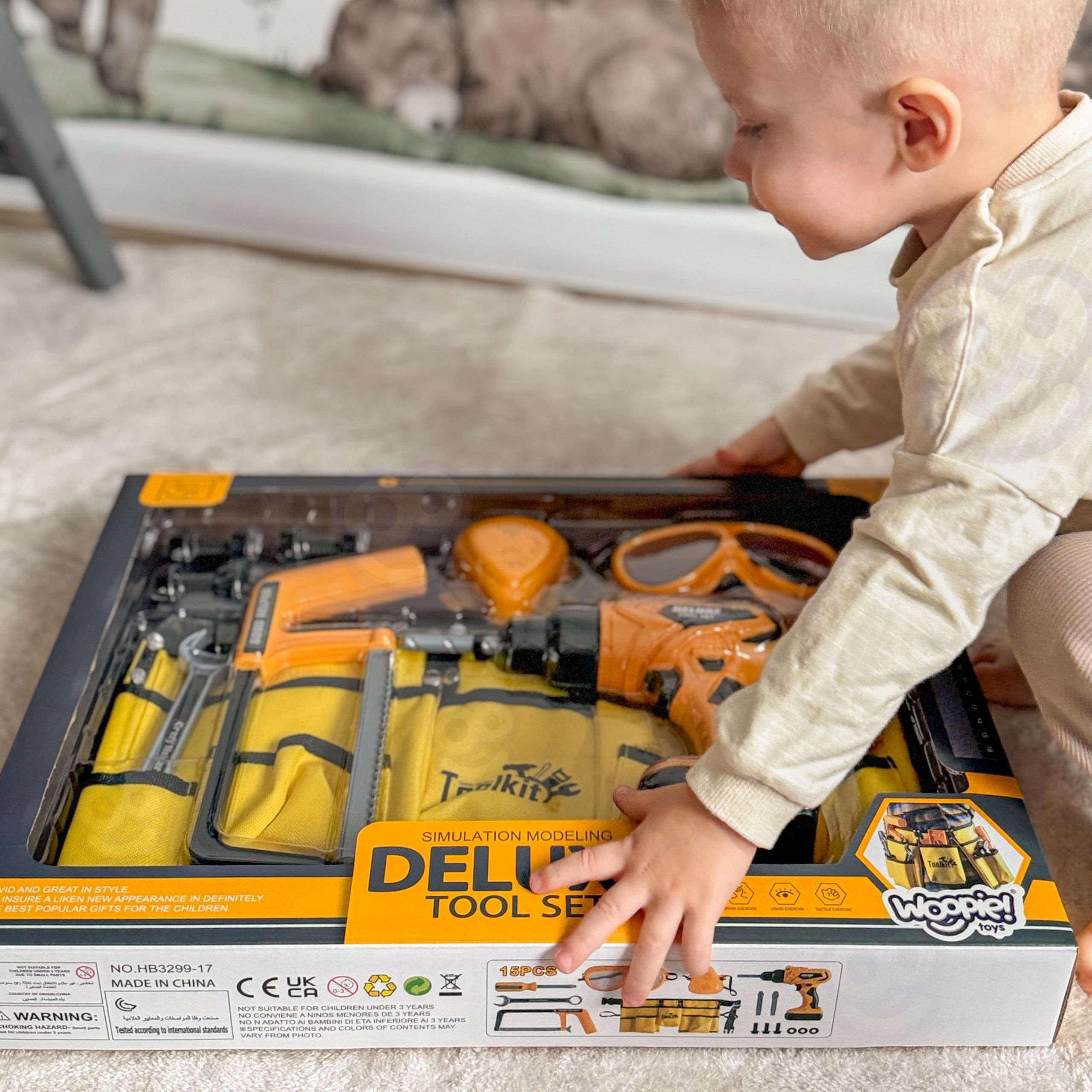 WOOPIE Little DIY tööriistakomplekt on täielik tööriistade komplekt lõbusaks ehitamiseks: kaitseprillid, tööriistarihm, akutoitega kruvikeeraja ning tööriistad ja ehituselemendid, mis ergutavad kujutlusvõimet ja julgustavad loomingulist isetegemist. Mänguasjade realistlikud efektid ja kindel konstruktsioon lisavad autentsust ja pakuvad tundide kaupa lõbu. Omadused: – Lastele alates 3 eluaastast – Valmistatud kvaliteetsetest materjalidest. – Tõelisest tööriistast inspireeritud realistlik liikumine ja heliefektid tagavad mängu realistlikkuse ja süvenemise. – Prillid ja mask õpetavad ehitust mängides põhilisi tervise- ja ohutusharjumusi. – Vastupidavad materjalid: siledast ABS-plastikust elemendid, mis on loodud intensiivseks mängimiseks ja väikeste käte mugavaks haardeks. – Tööriistarihma kogupikkus – 85 cm – Toide: 2x AA 1,5 V patareid (ei kuulu komplekti) Komplekti kuulub: – Kruvikeeraja – Tööriistarihm – Kaitseprillid – Mask – Lehtsilmusvõti – Kruvikeeraja – 3 Kruvi – 3 Mutrit – Saag – 3 Kruvikeeraja otsikud Loogilisust arendab -: – Mänguasi – Loogilisust