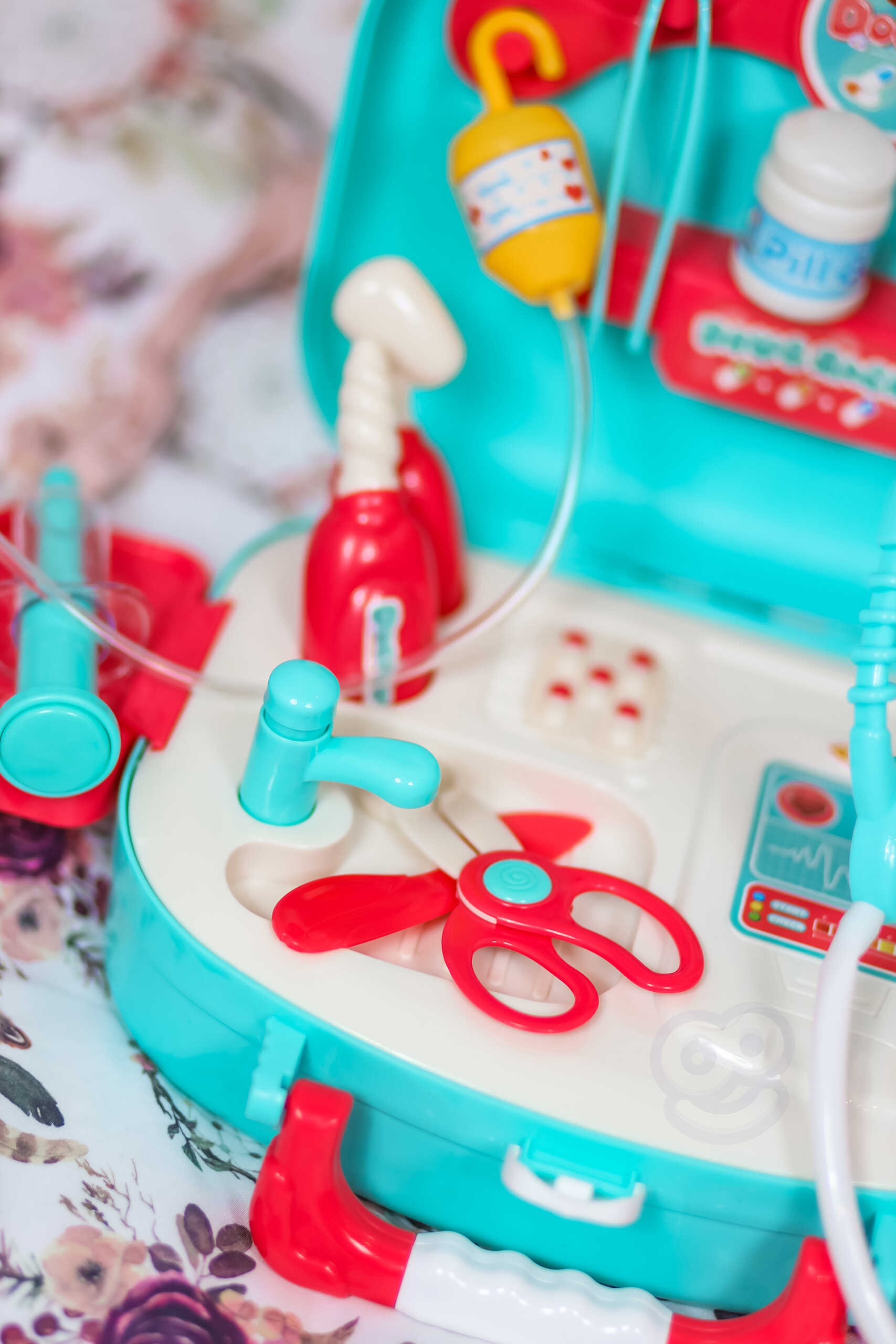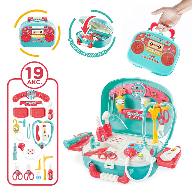 Woopie Little Doctor Set on iga väikese lapse unistus, sest kes ei tahtnud väikese inimesena saada arstiks ja ravida kõiki oma topitud sõpru ja perekonda? Komplektis on palju raviseadmeid, sh stetoskoop, tilguti, termomeeter ja palju muud. Kõik see on paigutatud kohvrisse, mis ühendab CTG-seadmete funktsiooni. Laps saab täita arsti või patsiendi rolli ning rühmas teistega koos mängides arendada sotsiaalseid ja lõimumisoskusi. Kogu komplekt on pakitud kaunisse kohvrisse, mis võimaldab komplekti erinevatesse kohtadesse tassida ja teiste lastega teadmisi jagada. Omadused: – “arsti” mängimine – rollimäng, – mugav käepide, mis teeb kaasaskandmise lihtsaks, – kohvri funktsioon – kõiki tarvikuid saab mugavalt ära peita, – ilusad türkiissinised ja punased värvid, – valmistatud kvaliteetsetest ja lastele ohututest materjalidest. Komplekti kuulub: – stetoskoop, – sihverplaadiga termomeeter sobiva temperatuuri kuvamiseks, – süstal, – käärid x 2, – kirurgiline nuga, – pintsetid, – tilguti, – ravimikarp, – värvilised kleebised, – kohver. Woopie kaubamärgi mänguasjadel on üks eesmärk – teha lastele rõõmu! Rikkalikust sortimendist leiab Woopie muuhulgas karnevalikostüüme ja kostüüme lastele, aga ka rippkiikesid, vahtplastist mänguasju, erinevat tüüpi aiamänguasju ja palju muud! Laske end lõbusalt kaasa haarata – laske end Woopil kaasa haarata!