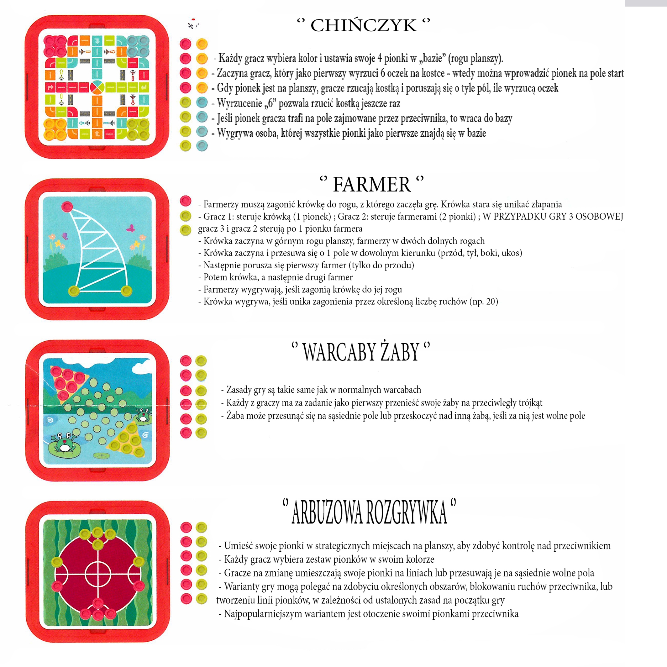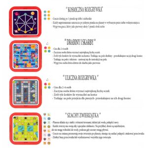 10-in-1 mängukomplekt WOOPIE kaubamärgilt on äärmiselt mitmekülgne õppekomplekt, mis ühendab endas lõbu loogilise mõtlemise arendamisega. Mäng pakub laia valikut väljakutseid, mis toetavad analüüsioskust, keskendumisvõimet ja kannatlikkust. Tänu erinevatele ülesannetele ja mõistatustele saavad lapsed lõbusalt arendada motoorset, strateegilist ja loogilist mõtlemist. Omadused: – Mänguasi vanuses 3 ja vanemad – 10 in 1 – komplekt koosneb erinevatest miniloogilistest mängudest, nagu ruumilised pusled, labürindid, klassikalised lauamängud või mustrite sobitamise ülesanded. Igaüks neist esitab mängijale erineva väljakutse, mis tagab pikad tunnid lõbu ja õppimist. – Loogiliste ja analüütiliste oskuste arendamine – Lõbu kogu perele – Lihtne hoida ja kaasas kanda – Mäng õpetab loogilist mõtlemist ja arendab loovust 10-ühes mängukomplekt: – Hiina keel – Sarvmäng – Kabe – Arbuusimale – Planeedi kolme male kiirmäng – Ruutmale – Tic-tac-toe – Piraatide aardejaht – Loogiline mõtlemine – Loogiline mõtlemine Sotsiaalsed oskused – Tajutavus – Kannatlikkus ja keskendumisvõime