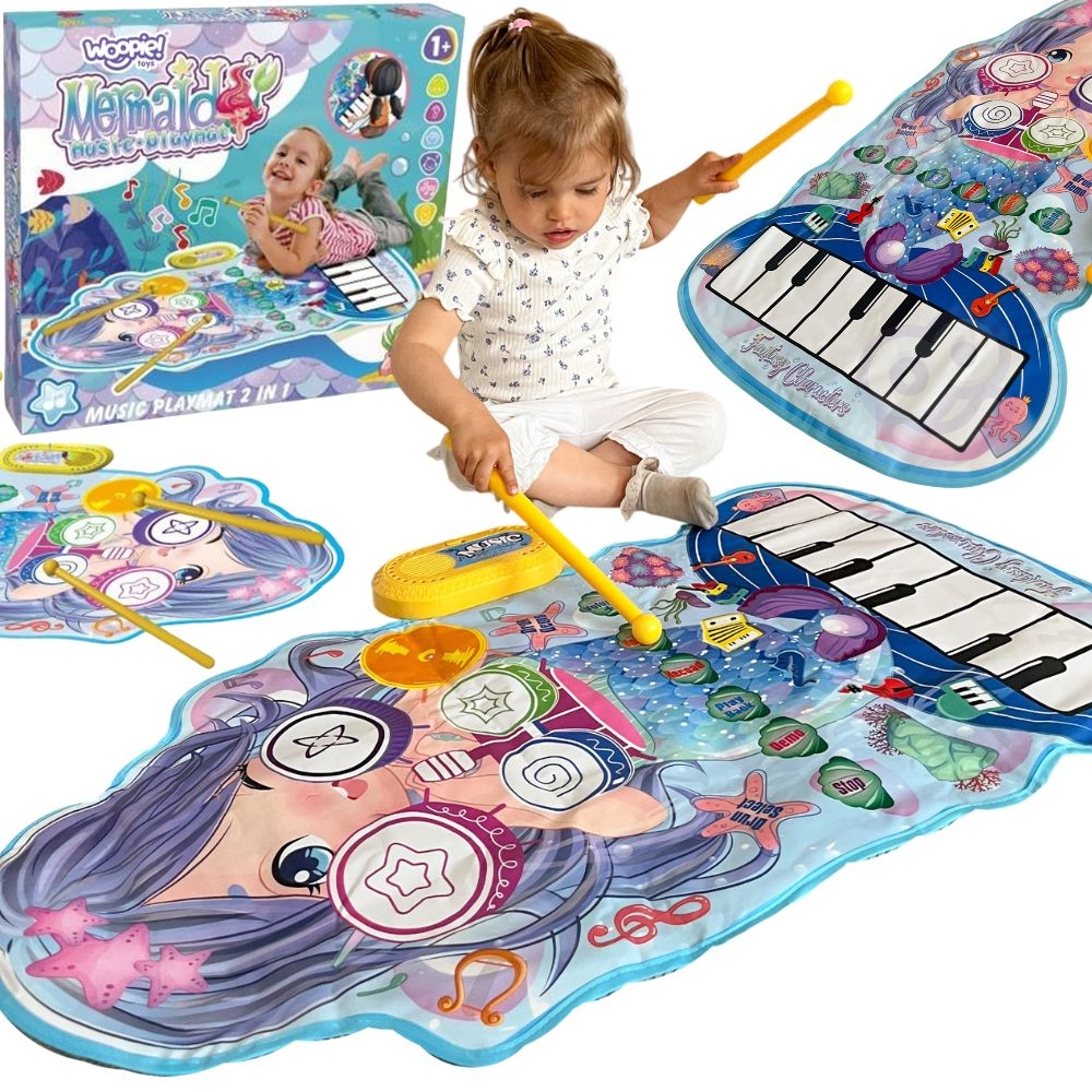 Avastage muusika ja kujutlusvõime maagiline maailm Woopie merineitsi motiiviga 2-in-1 muusikamatiga! Matt ühendab ühes interaktiivses vormis klaveri, trummide ja sensoorse mängu funktsioonid. See on täiuslik kombinatsioon lõbusast, liikumisest ja õppimisest. See rõõmustab iga last, kes armastab muusikat ja värvilist veealuste seikluste maailma. See rõõmustab merineitsi motiivi, hulga helide ja funktsioonidega, mis arendavad lapse meeli ja võimeid juba varakult. Vajutage lihtsalt sobivat elementi, et kuulda pillide helisid, meloodiaid ja rütme! Tänu pillide komplektile, trummipadjanditele ja klaveriklaviatuurile saab mudilasest saada väike muusik, ise rütme koostada ning samal ajal parandada motoorseid oskusi, kuulmist ja loovust. See on ideaalne mänguasi lastele alates esimesest eluaastast – turvaline, hariv ja lõbus! Omadused: – Mänguasi lastele alates 1. eluaastast – 2-in-1 muusikamatt – trummide ja klaveri kombinatsioon ühel pinnal – Merineitsi motiiv – ilus, muinasjutuline graafika köidab tähelepanu ja ergutab kujutlusvõimet – Interaktiivsed helifunktsioonid – erinevad nupud koos efektidega (trummid, demo jne) ja 8-klahviline klaviatuur – Kaasasolevate trummide arenduspulgad toetavad helitugevuse regulaatoriga valjuhääldi – kohandage heli vastavalt oma vajadustele ja keskkonnale – Režiimid: demo, rütmid, salvestamine, taasesitus – Pehme ja vastupidav matt – mugav kasutada, lihtne kokku voltida ja hoiustada – Akutoitel (3x AA, ei kuulu komplekti) – juhtmeteta ega piiranguteta, sobib igal pool mängimiseks Komplekt sisaldab: – Merineitsi motiiviga manuaalne muusikamatt – Funktsiooniga Toominupud – Kahe trumli pulgaga paneel: Muusikalised oskused – Käe-silma koordinatsioon – Kujutlusvõime – Käelised oskused – Rütmitaju – Enesekindlus