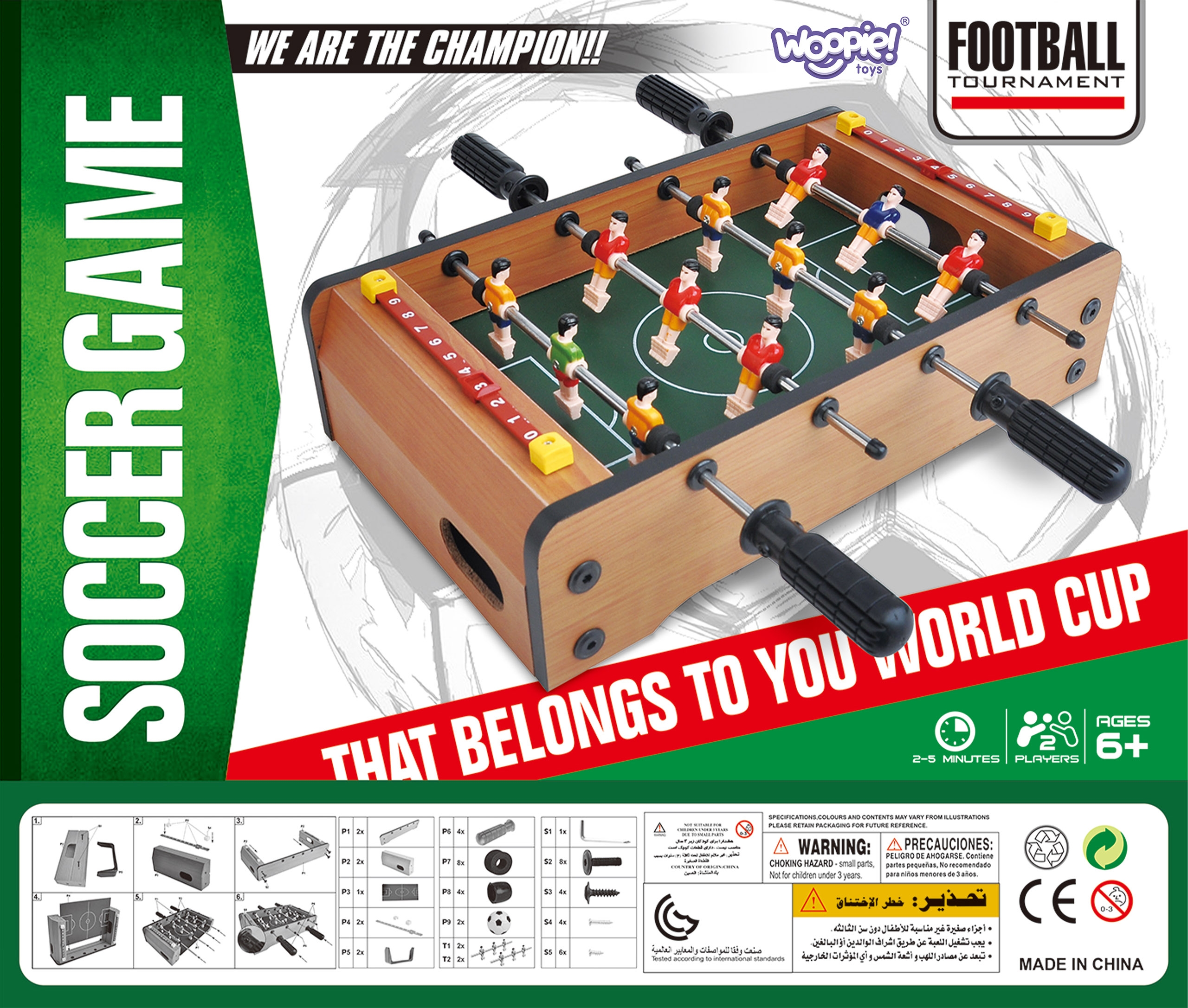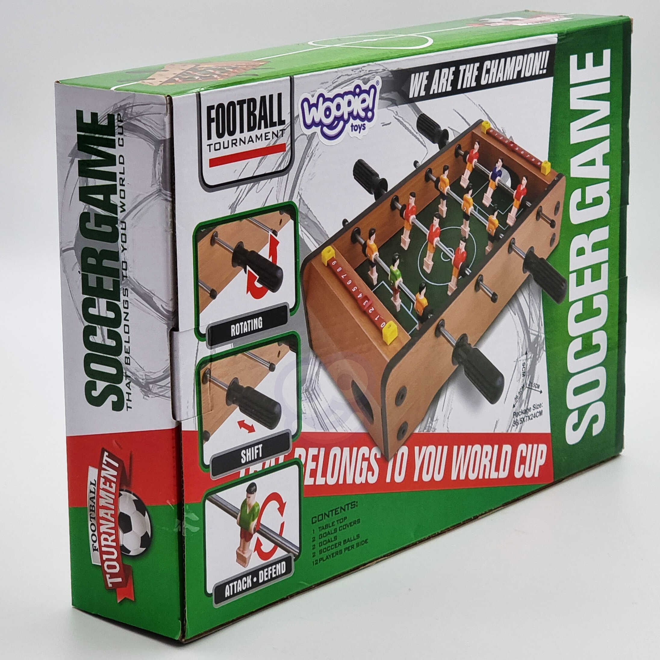 Jalgpallilaud Woopie hoiab teie pisikest tundideks hõivatud. Mäng kahele inimesele. Meil on igal juhendil 3 mängijat, kes mängivad väljakul vapralt. Kõik on pakitud väga ilusasse ja korralikku pakendisse. Mugav käepide võimaldab kasti koos sisuga mugavalt kaasas kanda. Tervik on mõeldud lastele alates 6. eluaastast. Omadused: – Lastele alates 6. eluaastast – Kvaliteetsetest materjalidest – 12 jalgpallurit on paigutatud neljale mugavate käepidemetega juhikule – 6 igast võistkonnast – Punktiloendurid mõlemale mängijale – Kompaktne suurus – Mängus saab osaleda korraga 2 Mängijat Komplekti kuulub: – Mängulaud – 2 palli Mänguasi arendab: – Osavust – Loogilisi oskusi – Multitasku