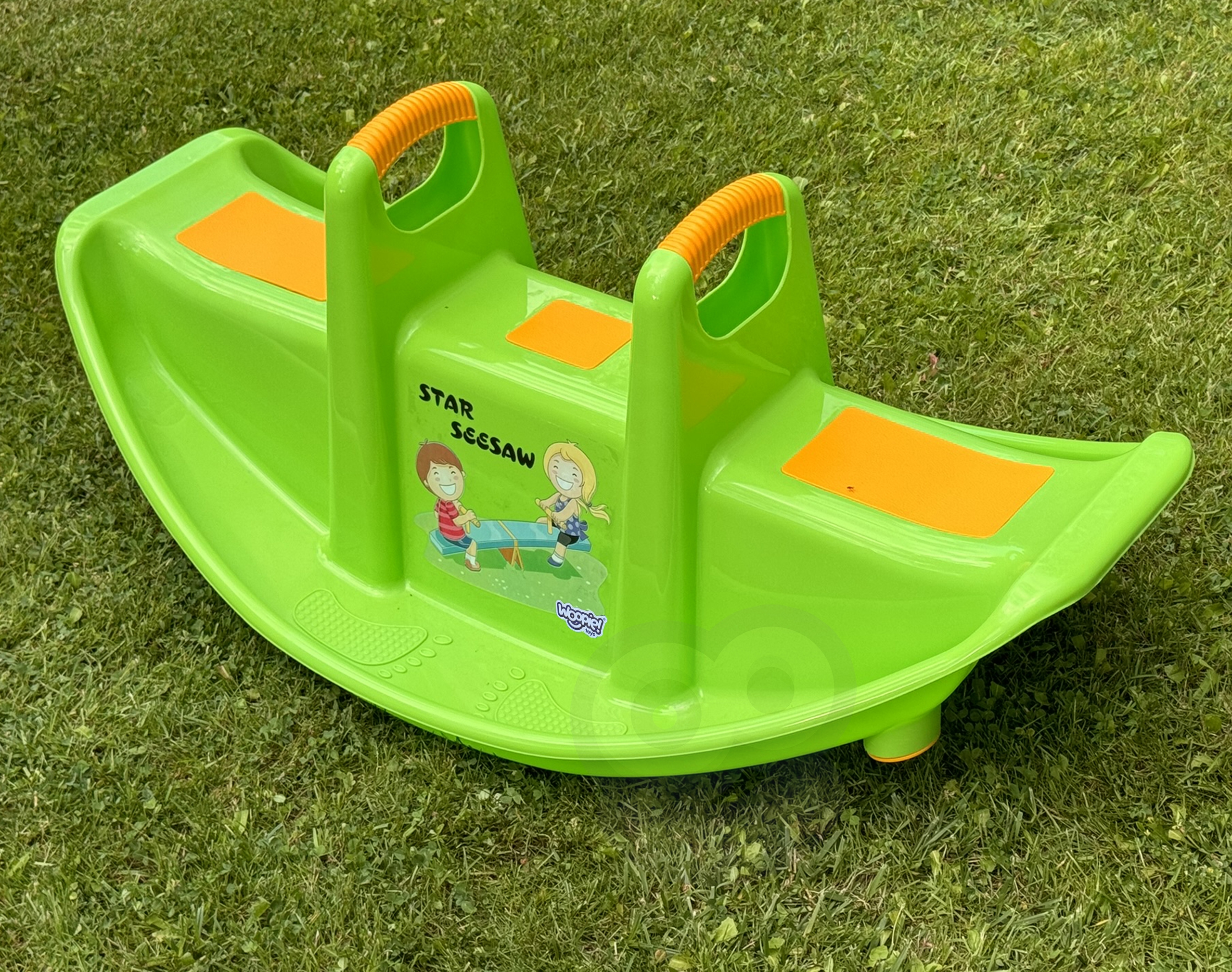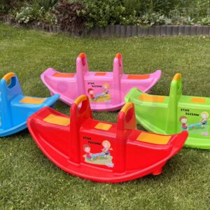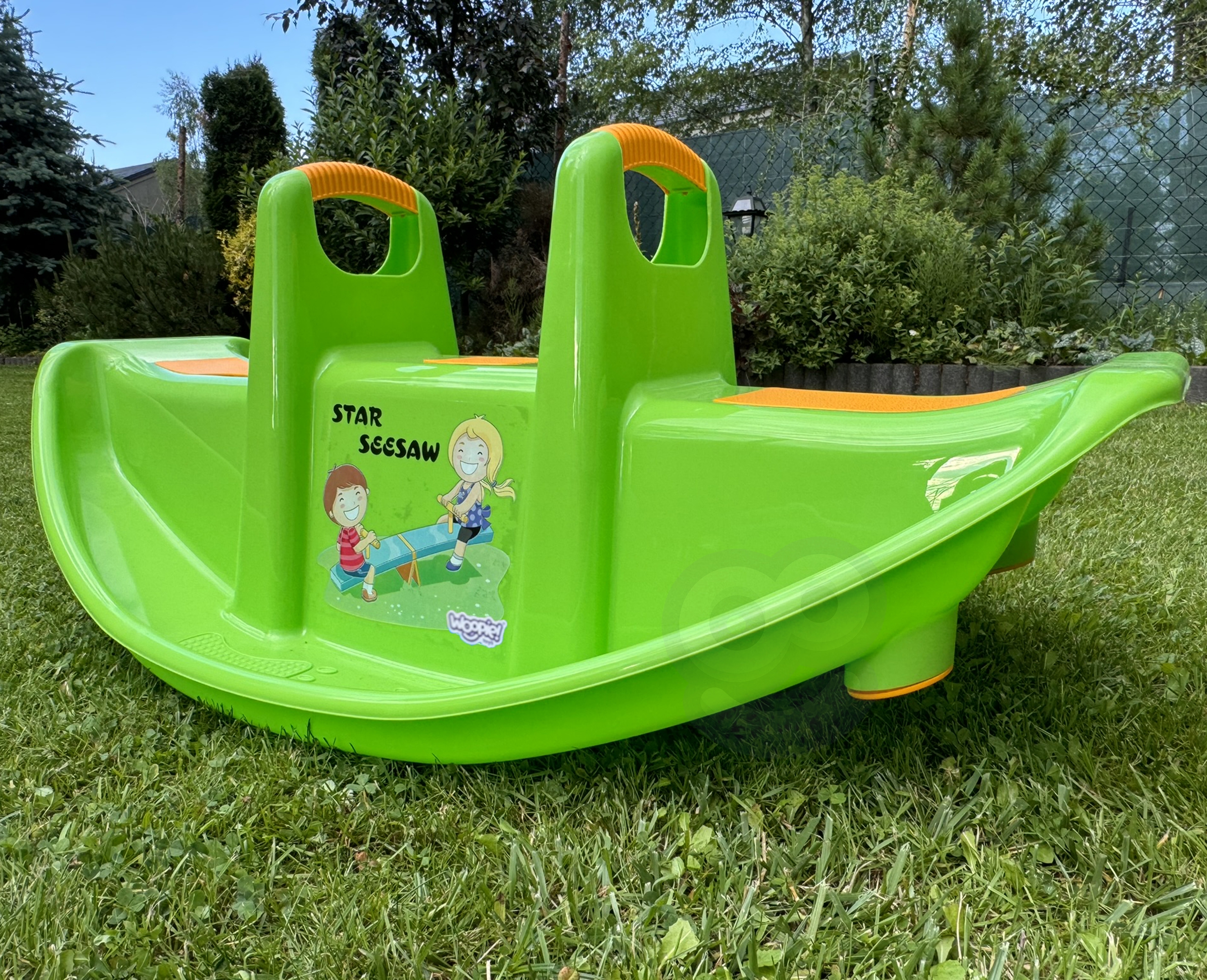 Kahekohaline Woopie roheline jalas ei paku mitte ainult palju nalja, vaid toetab ka laste füüsilist arengut. Mõeldud 1-2 lapsele, sobib suurepäraselt nii koju kui aeda. Selle ergonoomiline kuju, mugavad istmed ja käepidemed tagavad turvalise ja mugava mängimise pikka aega. Toode on valmistatud vastupidavast, ilmastikukindlast materjalist, mis talub intensiivset kasutamist. See on suurepärane alternatiiv klassikalistele kiikedele ja jalas – laps saab mängida üksi või kahekesi, õppides koostööd ja tasakaalu. Kerge disain võimaldab teil toodet hõlpsasti kõikjale kaasas kanda. Intensiivne roheline värv koos kollaste aktsentidega ja rõõmsa trükiga esiküljel köidavad laste tähelepanu ja julgustavad aktiivselt mängima! Sellel kiigel kiikumine pole mitte ainult suurepärane meelelahutus, vaid ka loomuliku võimlemise vorm, millel on positiivne mõju jämedate motoorsete oskuste, tasakaalu ja motoorsete koordinatsioonide arengule. Omadused: – Kaheistmeline jalas – korraga 1 või 2 lapsele – Turvalised käepidemed paremaks haardumiseks ja stabiliseerimiseks – Libisemiskindlad istmed maksimaalse mugavuse tagamiseks – Vastupidav ja kerge konstruktsioon ilmastikukindlast materjalist – Ümarad servad – Ei mingeid teravaid elemente – Ideaalne koju ja aeda – Universaalne kasutus – Värviline disain koos lapsesõbraliku trükiga – Stabiilne tiibade koordineerimine – Tasakaalustamine ja tiiva alus: Jämemotoorika – Koostöö ja suhtlemine teise lapsega – Ruumitunnetus ja keha stabiliseerimine – Enesekindlus liikumises ja iseseisvas mängus Toote mõõdud: 108 x 60 x 45 (cm)