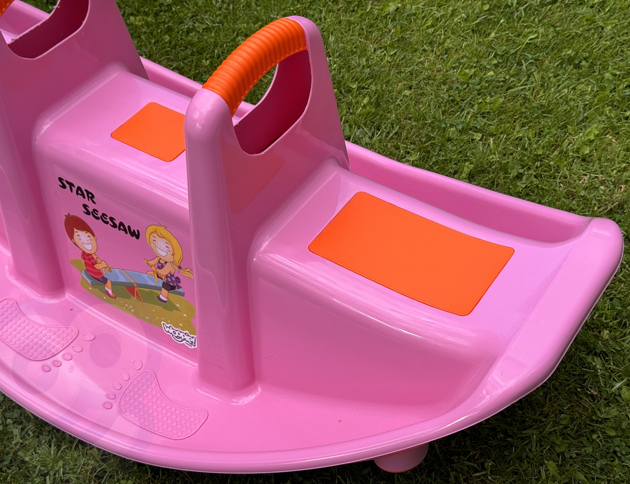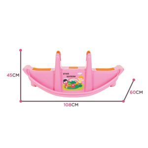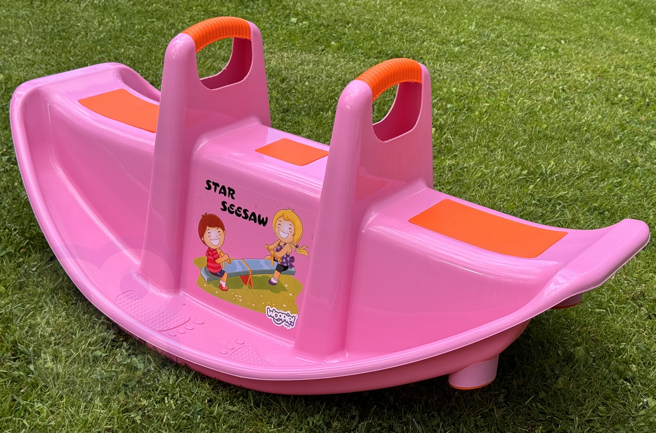 Kahekohaline Woopie roosa jalas ei paku mitte ainult palju nalja, vaid toetab ka laste füüsilist arengut. Mõeldud 1-2 lapsele, sobib suurepäraselt nii koju kui aeda. Selle ergonoomiline kuju, mugavad istmed ja käepidemed tagavad turvalise ja mugava mängimise pikka aega. Toode on valmistatud vastupidavast, ilmastikukindlast materjalist, mis talub intensiivset kasutamist. See on suurepärane alternatiiv klassikalistele kiikedele ja jalas – laps saab mängida üksi või kahekesi, õppides koostööd ja tasakaalu. Kerge disain võimaldab teil toodet hõlpsasti kõikjale kaasas kanda. Intensiivne roosa värv koos oranžide aktsentidega ja rõõmsa trükiga esiküljel köidavad laste tähelepanu ja julgustavad aktiivselt mängima! Sellel kiigel kiikumine pole mitte ainult suurepärane meelelahutus, vaid ka loomuliku võimlemise vorm, millel on positiivne mõju jämedate motoorsete oskuste, tasakaalu ja motoorsete koordinatsioonide arengule. Omadused: – Kaheistmeline jalas – korraga 1 või 2 lapsele – Turvalised käepidemed paremaks haardumiseks ja stabiliseerimiseks – Libisemiskindlad istmed maksimaalse mugavuse tagamiseks – Vastupidav ja kerge konstruktsioon ilmastikukindlast materjalist – Ümarad servad – Ei mingeid teravaid elemente – Ideaalne koju ja aeda – Universaalne kasutus – Värviline disain koos lapsesõbraliku trükiga – Stabiilne tiibade koordineerimine – Tasakaalustamine ja tiiva alus: Jämemotoorika – Koostöö ja suhtlemine teise lapsega – Ruumitunnetus ja keha stabiliseerimine – Enesekindlus liikumises ja iseseisvas mängus Toote mõõdud: 108 x 60 x 45 (cm)