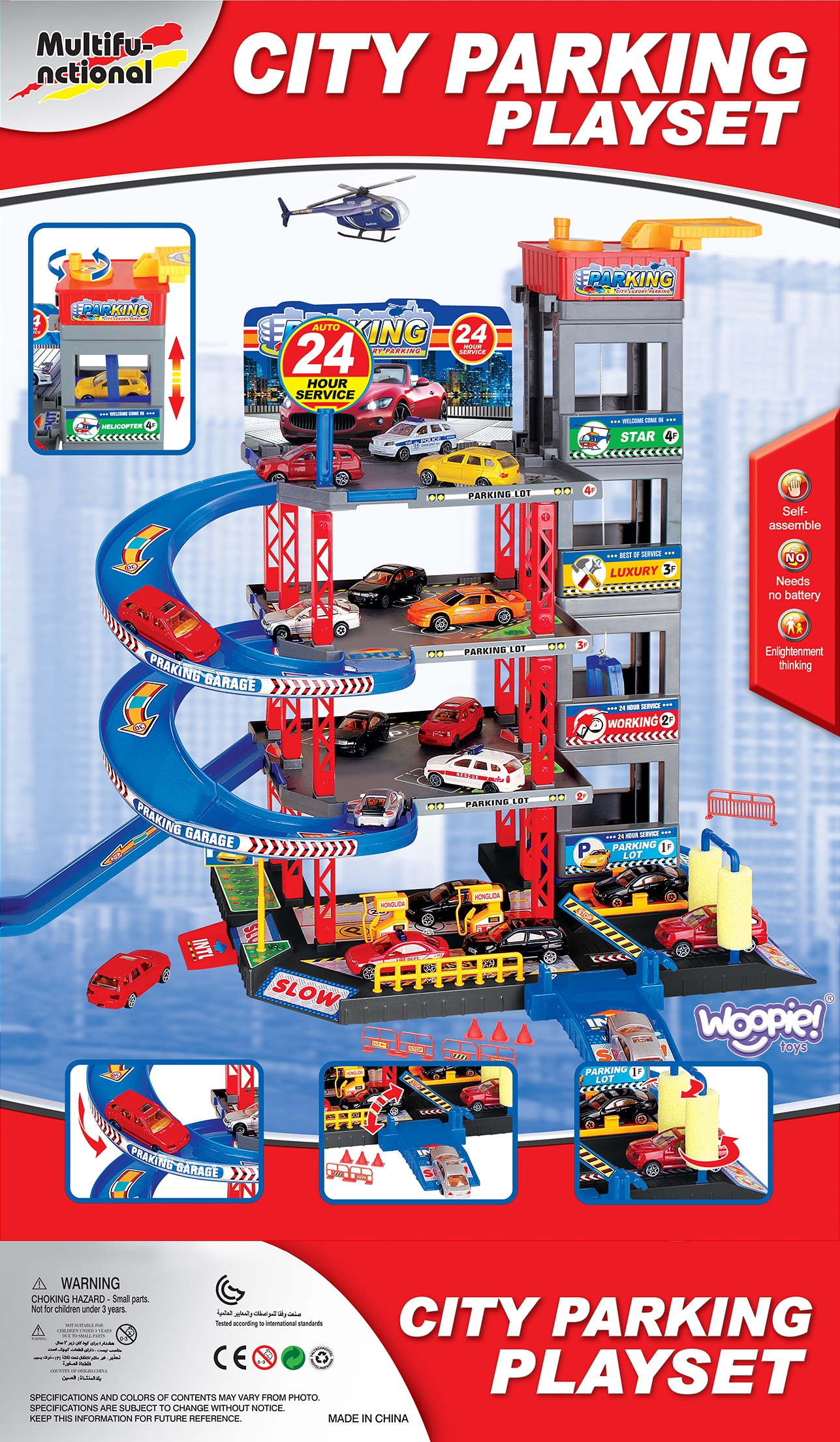 Tee teoks oma lapse unistused oma parklast! WOOPIE kaubamärgi sensatsiooniline mitmekorruseline parkla tankla, lifti, lifti, autopesula, autoremonditöökoja ja helikopteri maandumisplatsiga äratab kujutlusvõime igas kiirete autode ja autosõidu fännis. Parkla pakub täielikku interaktiivsust! Autosid saab tõsta käsiajamiga liftiga, vabastada mähise liumäega, tankida tankla pumpades, hooldada või pesta autopesulas. Komplekti kuulub neli autot, kuid garaaži mahub palju rohkem. Ülemisel tasandil on ka helikopteri maandumisplats – valmis igaks autotööstuslikuks missiooniks. Kõik, mis on loodud tõelise linnaparkla realistlikuks reprodutseerimiseks. Üksikasjad ja funktsionaalsus panevad igale lapsele parklas mängimist armastama! See on tõeline laste autoalaste väljakutsete keskus. Tänu rikkalikule funktsionaalsusele, liigutatavatele elementidele ja hoolikalt meisterdatud detailidele pakub mänguasi mitu tundi põnevat arendavat meelelahutust teie kodus mugavalt. Omadused: – Mänguasi lastele alates 3. eluaastast – 4-korruseline parkimiskohtadega garaaž – Parklast väljapääsuna toimiv looklev lai liumägi – Parklasse sisenemist võimaldav manuaalne lift – Tankla, autopesula, teeninduspunktid – Helikopteri maandumisplats garaaži katusel – Komplektis 4 värvilist kopterit, teetõkked, komplektis helikopterid ja elemendid Komplekti kuuluvad: – Garaaži konstruktsioonielemendid (põrandad, liftid, liumäed, sambad jne) – 4 erinevas värvitoonis metallautot – 1 helikopter – Tõstemehhanism – Kleebiste komplekt ja montaažijuhend Mänguasi arendab: – Motoorikat koordinatsiooni – Ruumilist kujutlusvõimet – Loogilist mõtlemist – Loomingulisust ja rollimängimist – Loogilist mõtlemist – Loomingulisust ja rollimängud 4 x Vananemine3 (3cm) 4 mõõtmed:3cm4. 57,5 x 39 x 9 (cm)