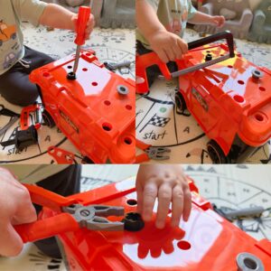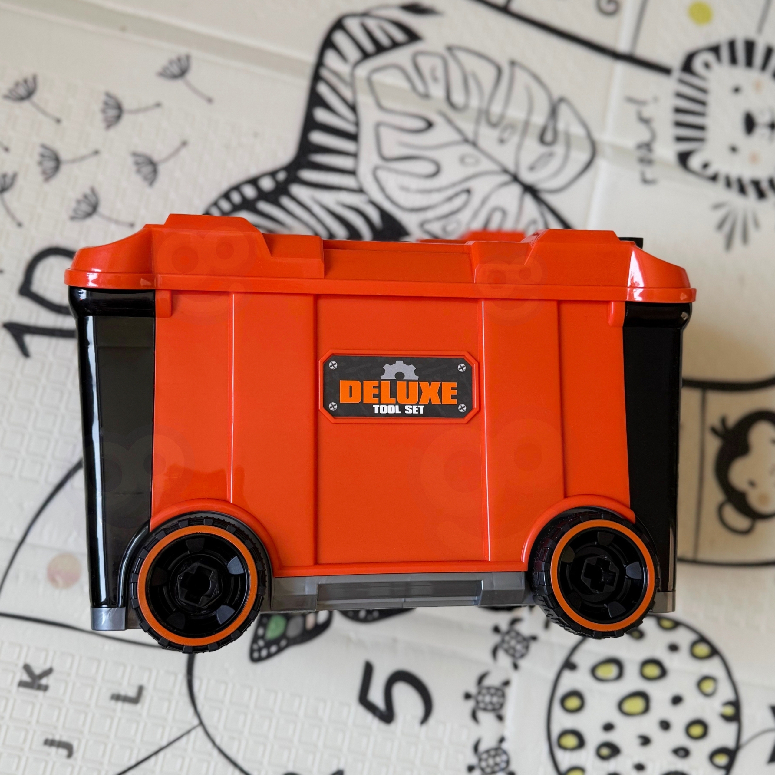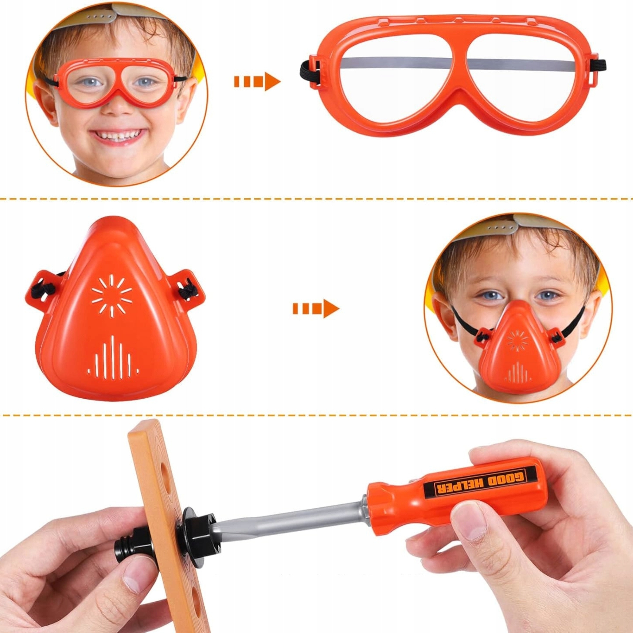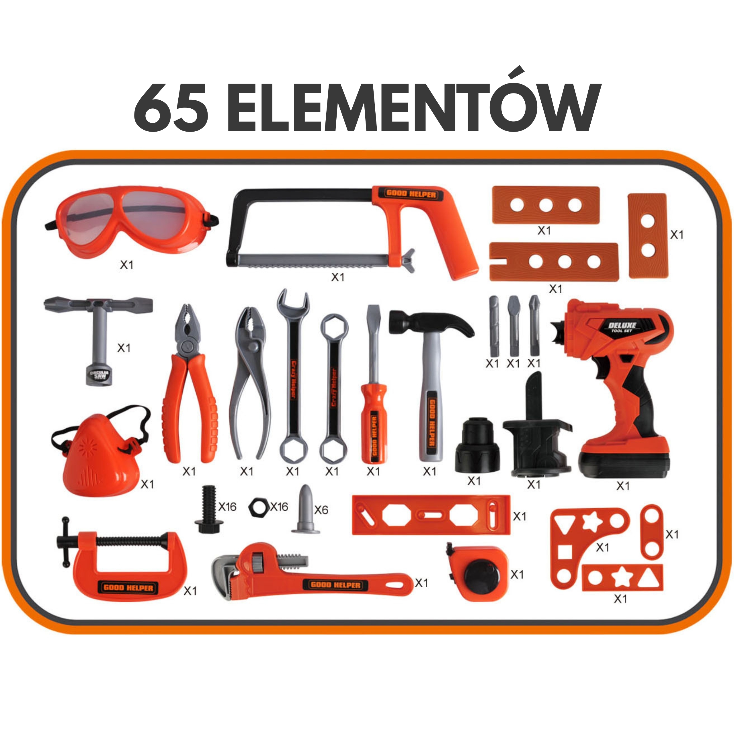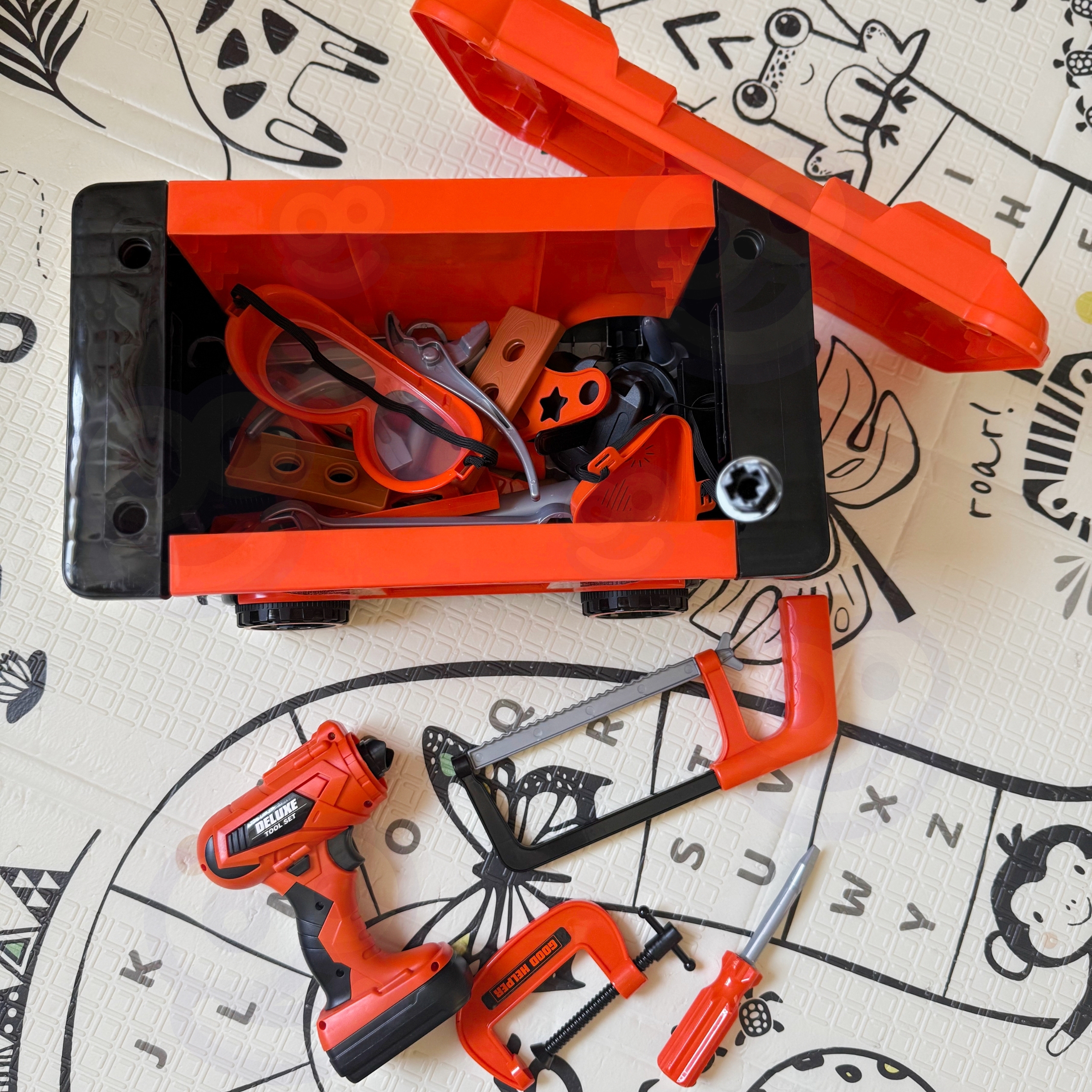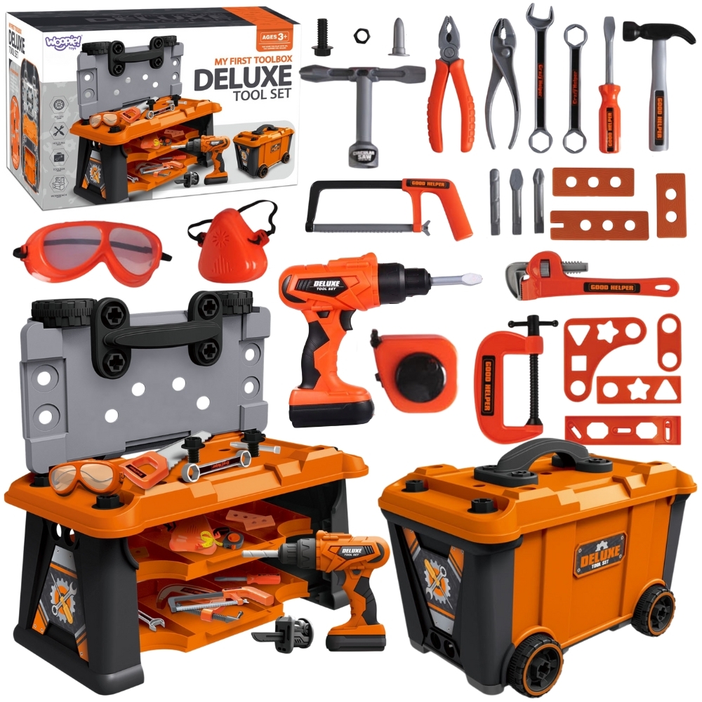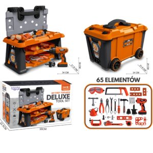 Mobiilne tööriistakast 2in1 töötuba Valmistatud tugevast plastikust oranžide, mustade ja hallide elementidega, võimaldab lastel lihtsalt ja turvaliselt mängida tõelise spetsialisti rolli. See funktsionaalne 2-in-1 komplekt pole mitte ainult töötuba, vaid ka ratastel kohver, millest saab teie lemmikmängukaaslane. See praktiline komplekt toetab loomingulist rollimängu ja võimaldab lastel mängu kaudu käelisi oskusi arendada. ✅ Omadused: ✔️ Valmistatud tugevast plastikust ✔️ Muutub töökojast käepäraseks käepidemega ratastega kohvriks ✔️ Lai valik tööriistu ✔️ Komplektis on 65 plastikelementi ✔️ Realistlik akutoitega multitööriist (2xAA – EI OLE KAASAS) ✔️ Ohutuskomplekt sisaldab:✔️Tervise- ja ohutusvarustust Käsisaag◾ 3 puuritud lauda (plastist)◾ T-tüüpi mutrivõti◾ Lehtsilmusvõti◾ Tangid◾ Lehtsilmusvõti◾ Kruvikeeraja◾ Haamer◾ 3 otsikut multitööriista jaoks – puur, lamepeaga kruvikeeraja ◾ multifunktsionaalne kruvikeeraja multitööriist – kruvikeeraja ja tikksaag◾ Kaitsemask◾ Puusepaklamber◾ Reguleeritav mutrivõti◾ Vesiloodi◾ Mõõdulint◾ 16 kruvi◾ 16 mutrit◾ 6 kruvi◾ 3 ehitusšabloon ✅ Mänguasi arendab: ✅Loogiline mõtlemine✔️ Loomingulisus✔️ Käelised oskused✔️ Motoorne koordinatsioon