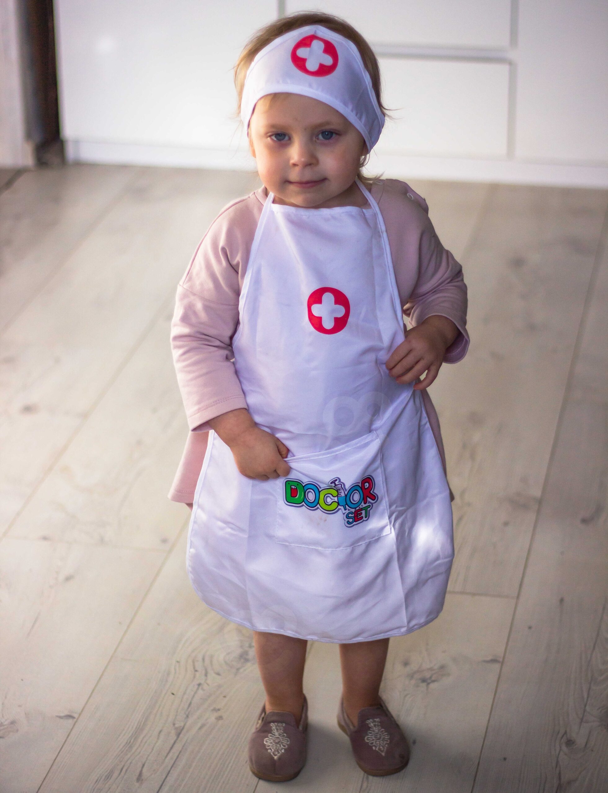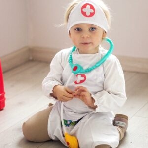 Usaldusväärse kaubamärgi Woopie lastele mõeldud Nurse kostüüm arendab teie lapses kirge teisi aidata. Paljud lapsed unistavad saada arstiks või õeks ning tänu riietusele saavad nad tunda end arsti või õena. Rollimäng ergutab teie lapse kujutlusvõimet ja loovust! Õe kostüüm on ideaalne kostüüm lastele, kellele meeldib teisi aidata, meeldib mängida erinevaid haigete ravimisega seotud mänge ja unistavad tulevikus õeks saada. Omadused: – Mõeldud lastele kuni u. 5 aastat vana – Täiuslikult reprodutseeritud õe vormiriietus – Mahukad taskud – Mõeldud lastele kuni u. 120 cm pikk – Põlle pikkus ilma sidemeteta: 51 cm – Õe müts takjakinnitusega, pea ümbermõõt. u. 46-48 cm Komplekti kuulub: – Imetamismüts – Põll