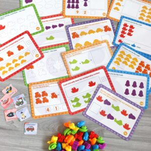 WOOPIE kaubamärgi Vehicles Educational Set on lihtne, kuid tõhus abivahend õppimiseks ja lõbutsemiseks. Mäng hõlmab matemaatilise harjutuse sooritamist kaardil lausetega, kasutades kujundeid ja markerit. Näidisülesanne on: mustri leidmine ja sellele sobiva sõiduki asetamine, joonistatud sõidukite loendamine ja kirjutamine selleks ettenähtud kohta jne. Lisaks on mänguasjal palju harivaid võimalusi. Lisaks loendamise õpetamisele saab figuure kasutada ka värvide õppimiseks. Mänguasi kasvab koos lapsega, sest seda saab kasutada keele õppimiseks hilisematel noorukiea aastatel. Komplekt on suurepärane alternatiiv tavapärasele õpetamisviisile – õppimisele läbi mängu! Tunnused: – mänguasi vanuses 3 aastat, – komplekt sisaldab 83 elementi, – mõeldud värvide ja numbrite ning inglise keele õppimiseks, – mäng hõlmab matemaatika harjutuse sooritamist kaardil lausetega, kasutades kujukesi ja markerit, – kujukesed on kummist ja lastele ohutud, – mängu kaudu õppimine, – mänguasi inglise keeles – kasvab koos lapsega kasutatav keel (noorukieas) kasvab koos lapsega. Komplekti kuulub: – 16 ülesandekaarti, – 10 punast kosmoselaeva, – 10 kollast laeva, – 10 lillat rongi, – 10 rohelist autot, – 10 sinist stingray’t, – 10 oranži allveelaeva, – 6 kaarti sõidukite kirjeldustega (inglise keeles). – markerpliiats, Kaardiülesande maht: – mudilase ülesandeks on paigutada sobiv arv figuure ja need kokku lugeda, – loendada joonistatud sõidukid ja kirjutada need selleks ettenähtud kohta, – leida muster ja asetada sellele sobiv sõiduk, – võrrelda ja loendada. Kontrollige, millised on vähem – liitmine ja lahutamine.