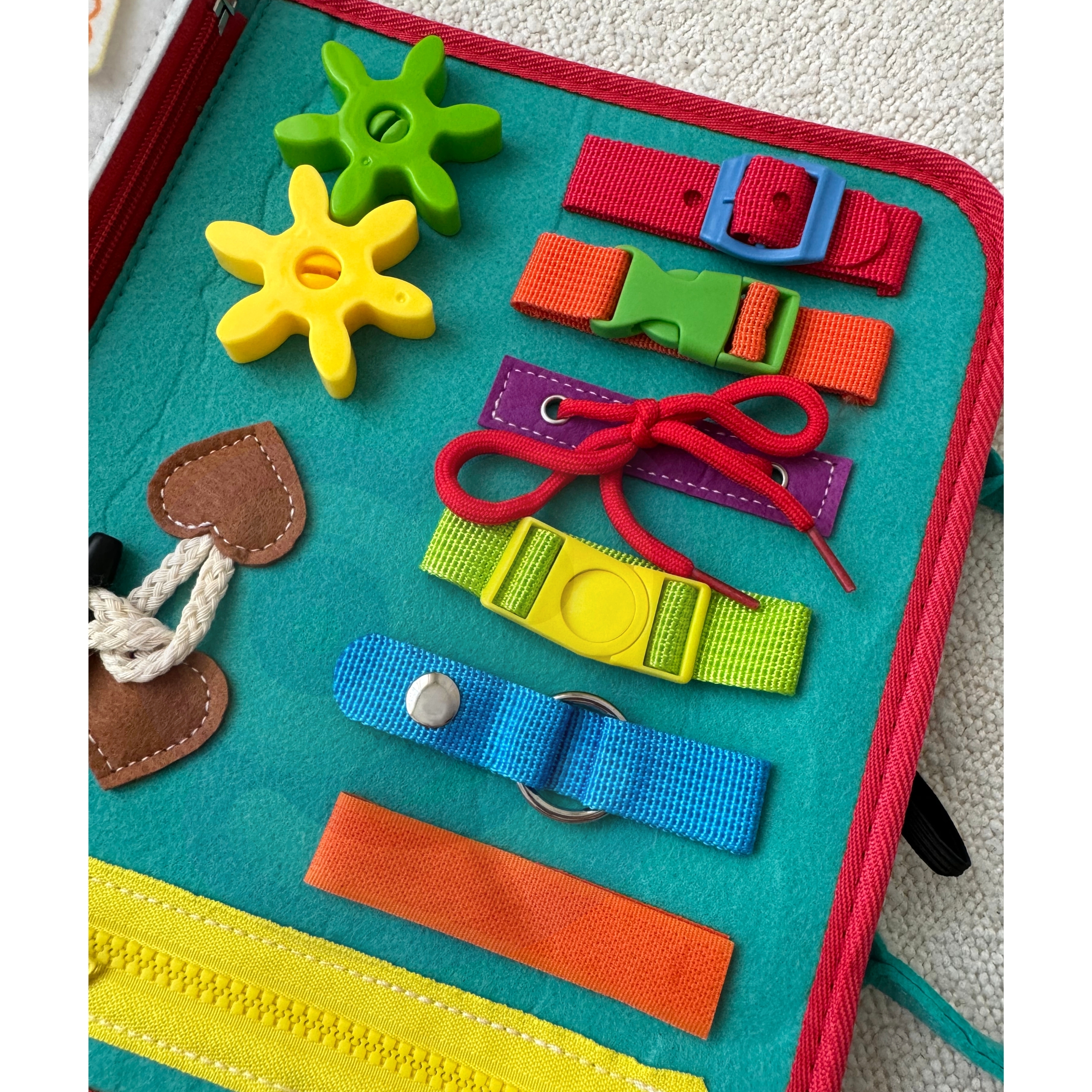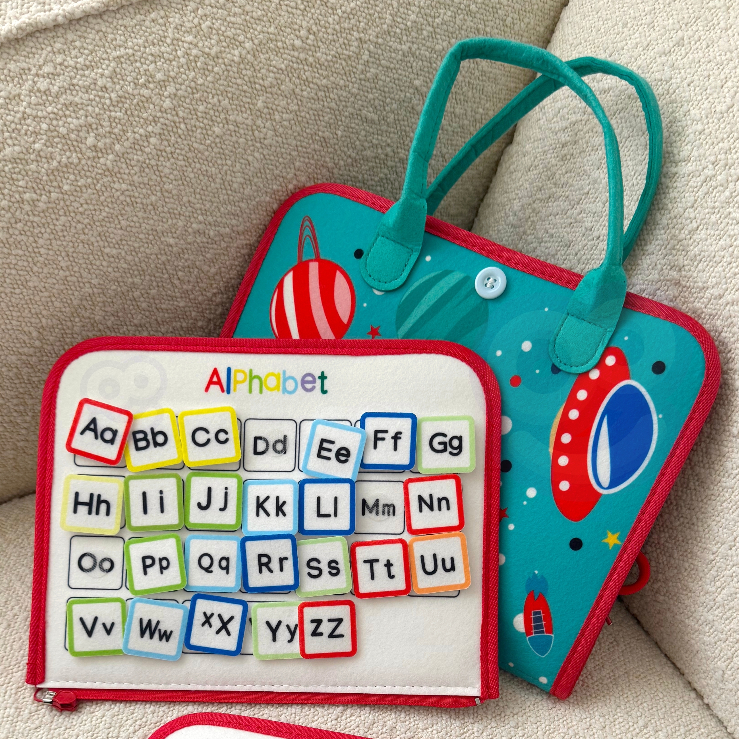 Tutvustage oma lapsele õppimise ja arengu põnevat maailma ainulaadse hariva raamatuga kaubamärgilt Woopie. Kõige väiksematele mõeldes loodud mänguasi on tõeline tööriist, mis toetab võtmeoskuste arendamist juba varases eas. Sangadega kohvri kujul olev raamat peidab endas kaheksa kihti täis erinevaid tegevusi, mis mitte ainult ei lõbusta, vaid ka õpetavad. Tänu sellele saavad lapsed õppida värve, numbreid, kujundeid, tähestikku, samuti arendada käelisi oskusi ja loogilist mõtlemist. Tänu sellele mänguasjale õpivad lapsed mängu kaudu, parandades samal ajal peenmotoorikat, käe-silma koordinatsiooni ja kognitiivseid oskusi. See on ideaalne valik lapsevanemale, kes soovib toetada oma lapse terviklikku arengut, hoolitsedes oma hariduse ja loovuse arendamise eest igas kasvuetapis. Tänu käepärasele disainile on mänguasja lihtne kaasas kanda, mistõttu on see ideaalne nii väikestele kui ka suurtele reisidele. Omadused: – Igas vanuses lastele sobiv mänguasi, mis pakub ülesandeid lihtsast värvituvastusest kuni loendamiseni, tundide õppimise ja kingapaelte sidumiseni. – Sisaldab 8 kihti, mis on täis erinevaid tegevusi, millest igaüks pakub ainulaadseid harivaid ülesandeid, näiteks: värvide, numbrite, tähestiku, geomeetriliste kujundite, tundide, nädalapäevade õppimine ja käelised harjutused, nagu kingapaelte või -kinnituste sidumine. – Eemaldatavad Montessori kihid. Tahvli kihid on tänu tõmblukule kergesti eemaldatavad, mis võimaldab igaühega eraldi mängida. – Kõik elemendid on kirjeldatud, mis muudab lastel värvide, kujundite ja nädalapäevade äratundmise lihtsamaks, toetades nende autonoomiat ja iseseisvust õppimises. – Valmistatud pehmest vildist, ilma väikeste osade või liimijälgedeta, mistõttu on see väikestele lastele ohutu valik. – Praktiline ja käepärane disain. Mänguasi arendab: Oskuste ja kognitiivsete võimete arendamist peenmotoorikat Loogilist mõtlemist Sensoorsed oskused Käe-silma koordinatsiooni