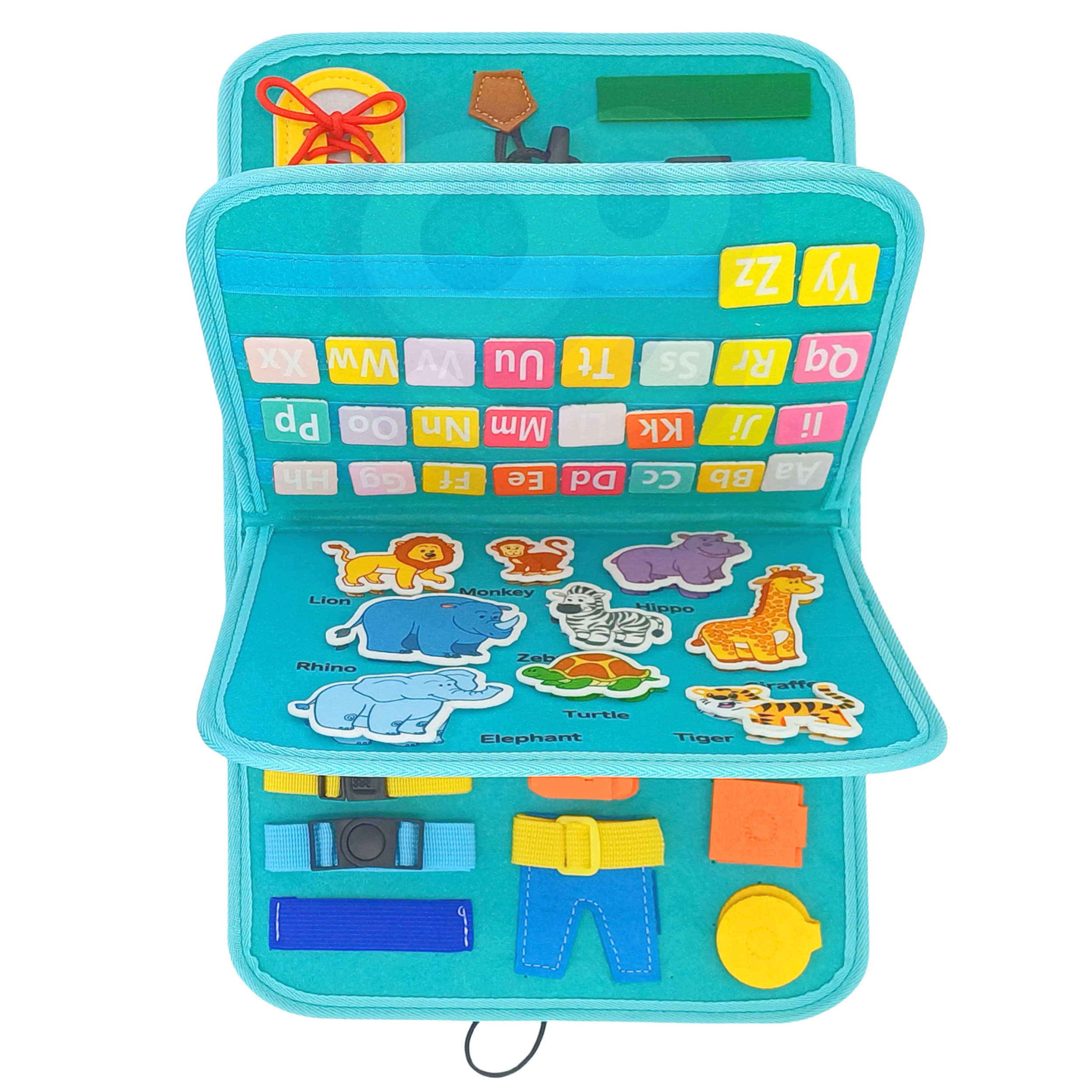 Tutvustage oma lapsele põnevat teadusmaailma tänu Woopie kaubamärgi harivale raamatule. See oli mõeldud spetsiaalselt kõige pisematele – ebatavaline mänguasi, mis meenutab sangadega kohvrit, on ideaalne kaaslane õppeprotsessis, pakkudes kaheksat kihti täis erinevaid tegevusi. Lapsed saavad mängu kaudu avastada ja arendada oma oskusi, õppides põhimõisteid, nagu värvid, numbrid, kujundid ja tähestik. Tänu käepärasele disainile on mänguasja lihtne kaasas kanda, mis muudab selle ideaalseks autosõitudeks ja muudab teel veedetud aja veelgi nauditavamaks. See on ainulaadne kingitus, mis mitte ainult ei lõbusta, vaid ka õpetab ja toetab väikeste avastajate arengut. Omadused: – Mänguasi, mis sobib igas vanuses lastele – Erinevate tegevustega kihid. Iga kiht pakub ainulaadseid tegevusi, nagu värvide, numbrite, tähestiku, geomeetriliste kujundite, kellaaegade, nädalapäevade, aga ka lugude ja kinnitusdetailide õppimine. – Mugav rihm, et mänguasja alati nagu kotti kaasas kanda. – Eemaldatavad Montessori kihid. Tahvli kesksed kihid on tänu tõmblukule hõlpsasti lahti keeratavad, mis võimaldab igaühega eraldi mängida. – Kõik elemendid on kirjeldatud, mis muudab lastel värvide, kujundite ja nädalapäevade äratundmise lihtsamaks, toetades nende autonoomiat ja iseseisvust õppimises. – Mänguasi sobib igas vanuses lastele, pakkudes ülesandeid lihtsast värvituvastusest loendamise, tundide õppimise ja kingapaelte sidumiseni. – Valmistatud pehmest vildist, ilma väikeste osade või liimijälgedeta, mistõttu on see väikestele lastele ohutu valik. – Praktiline ja käepärane disain. Käepidemete ja takjakinnitusega kohvriformaat muudab mänguasja hõlpsasti organiseeritavaks ja reisile kaasa võtmiseks. Mänguasi arendab: Oskuste ja kognitiivsete võimete arendamist peenmotoorikat Loogilist mõtlemist Sensoorsed oskused Käe-silma koordinatsiooni